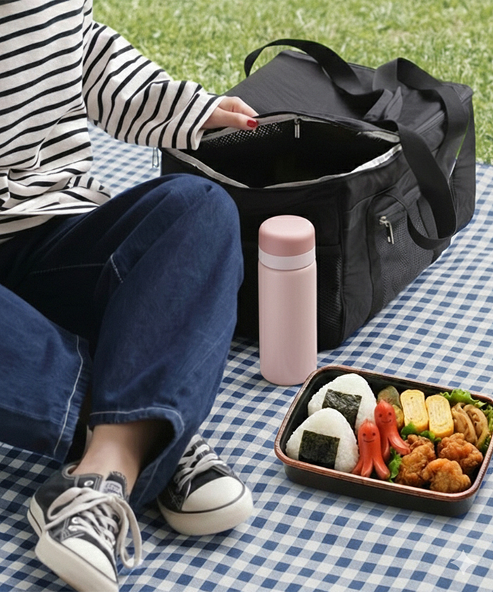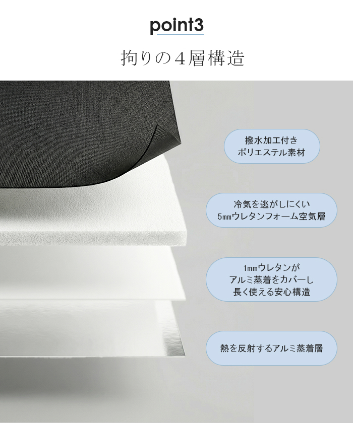 裏地:アルミ上蒸着フィルム(内部:アルミ蒸着+ウレタン(保温/保冷材))