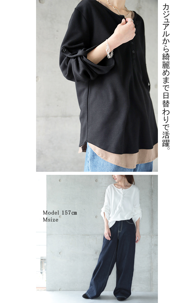 カットソー以上トレーナー未満の良いトコどりトップスです。