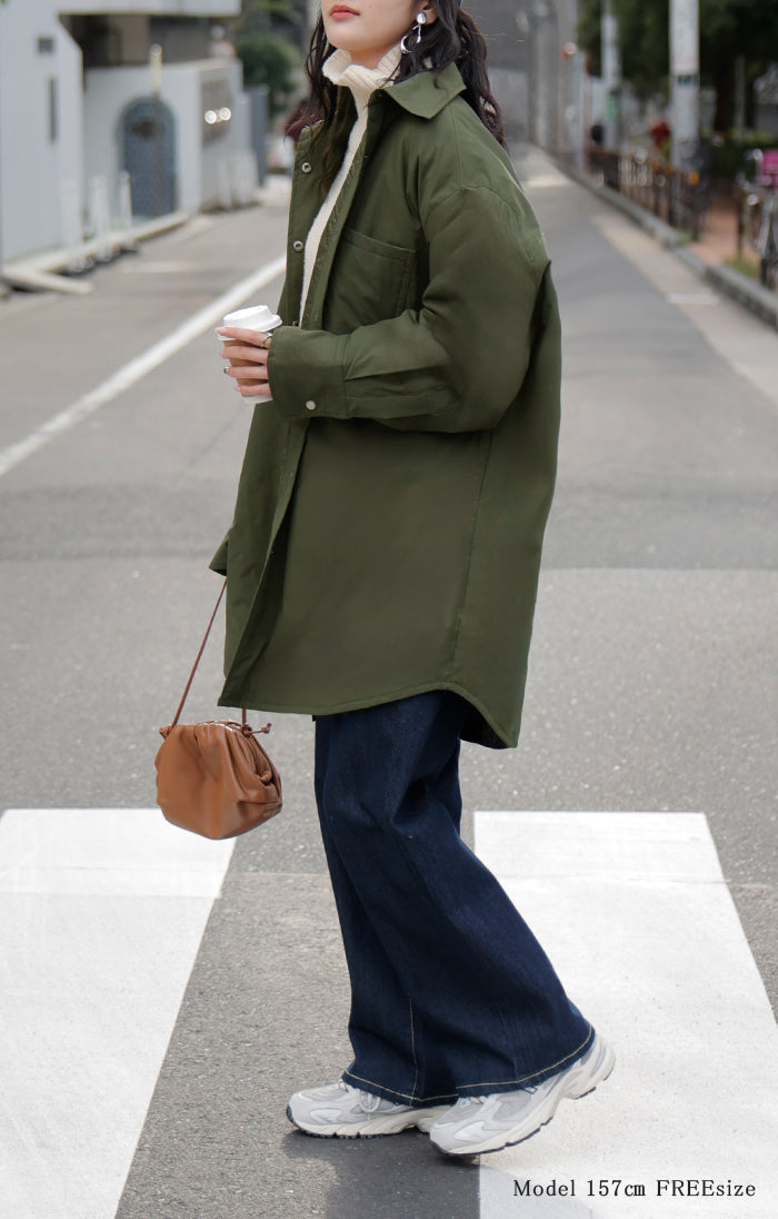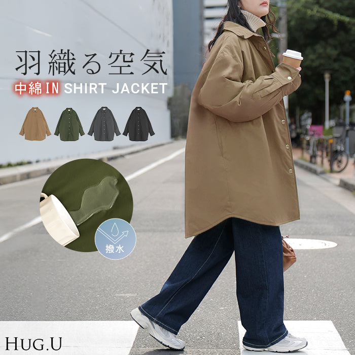 2025AW新作 アウター ジャケット 中綿 撥水 レディース トップス シャツジャケット コート ブルゾン オーバー ミリタリー あったか あったかアウター 軽量 羽織 保温 レイヤード オーバーサイズ 大きいサイズ 体型カバー 暖かい お尻が隠れる 黒 グレー 秋 冬 HUG.U