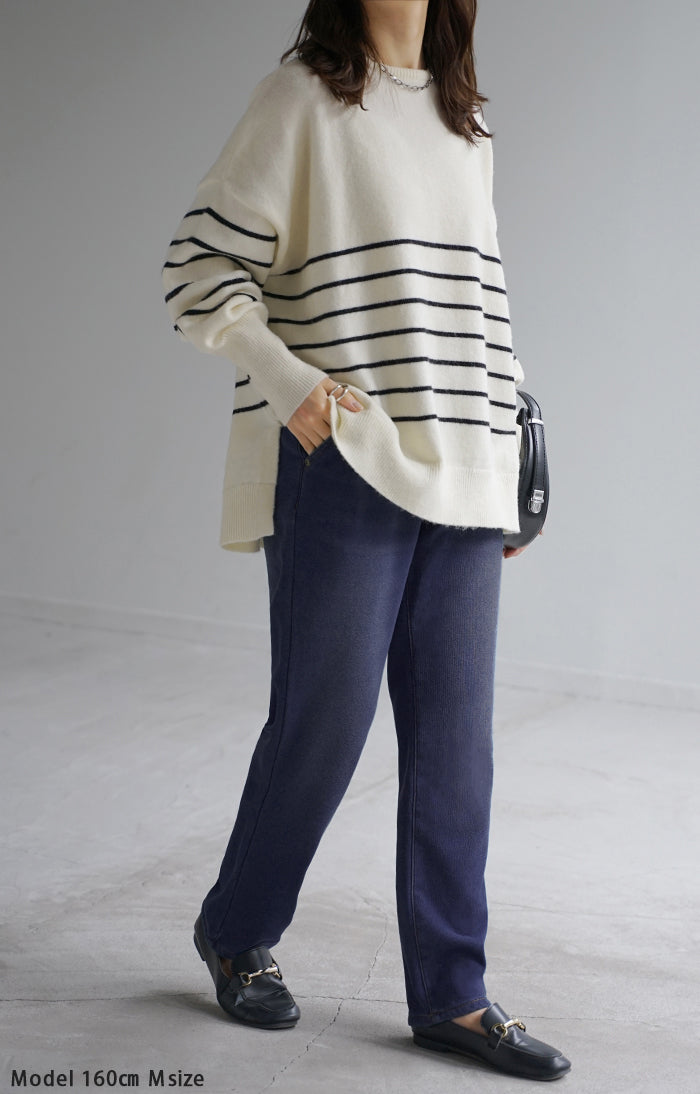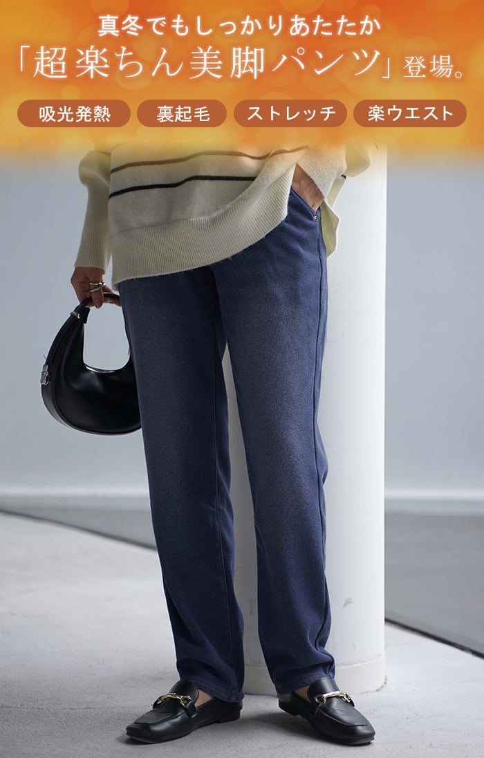 とてもゆったり履けてますが、色もいいし、見た目はすっきり見えます。もっとカラーバリエーションがあればなおよしです!