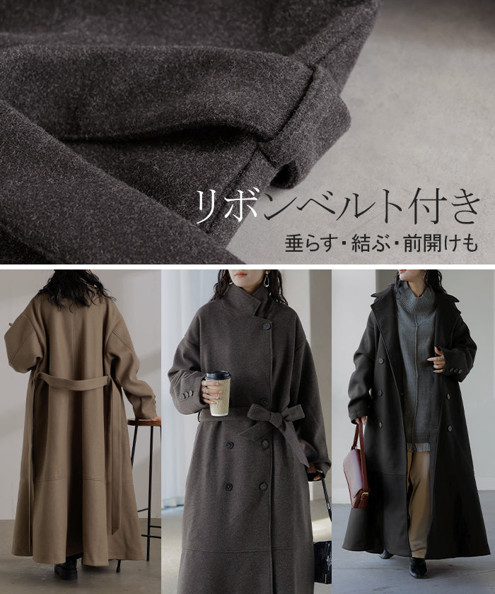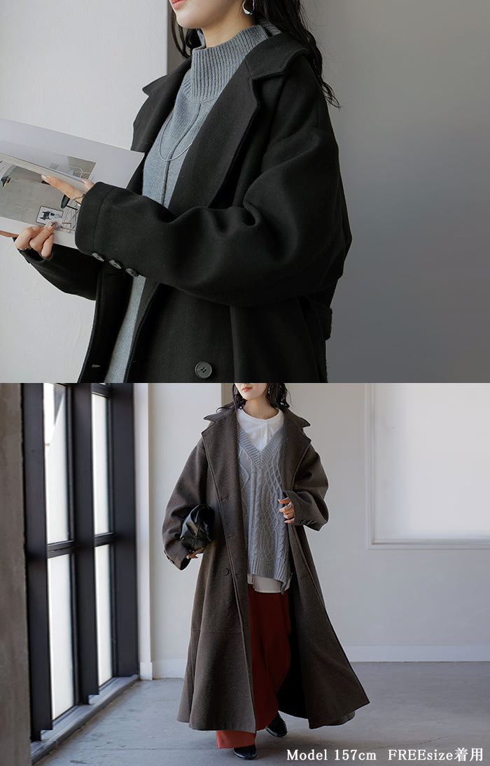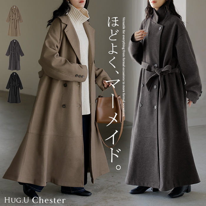 2025AW新作 コート チェスターコート ■1月中旬入荷 フレア アウター チェスター レディース ロング ロングコート トレンチ トレンチコート オーバー Vネック ゆったり 羽織 きれいめ オーバーサイズ 大きいサイズ 体型カバー あったか 通勤 お尻が隠れる 黒 ベージュ 秋 冬 HUG.U