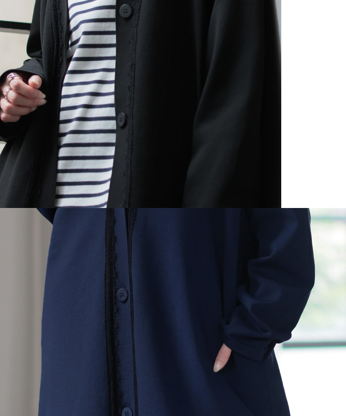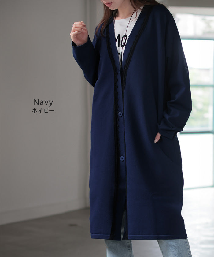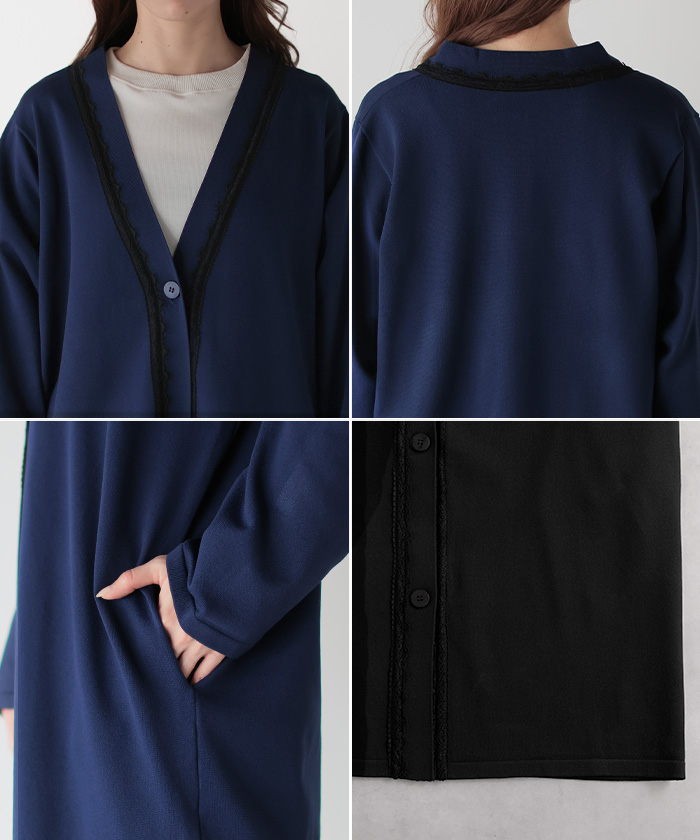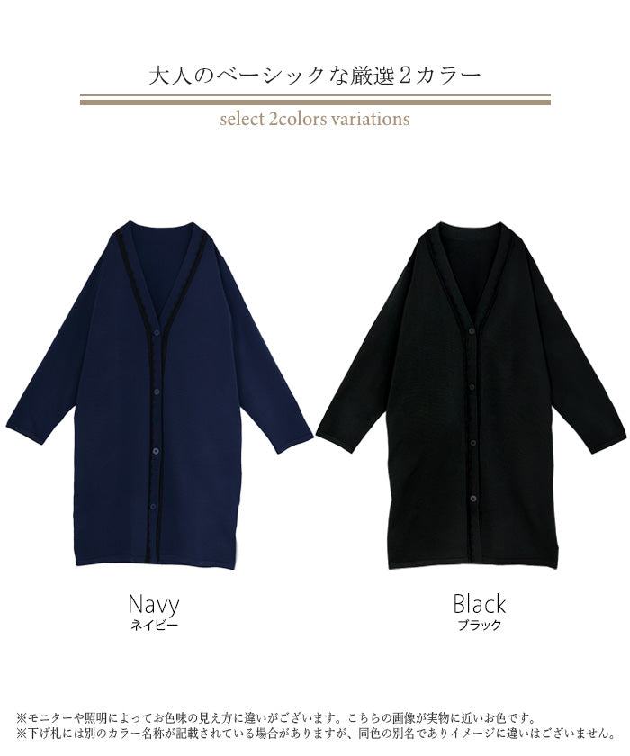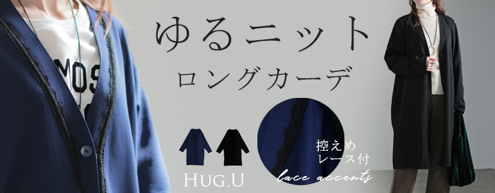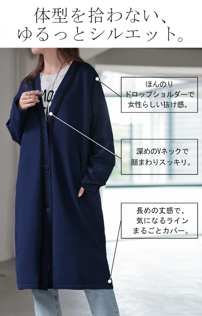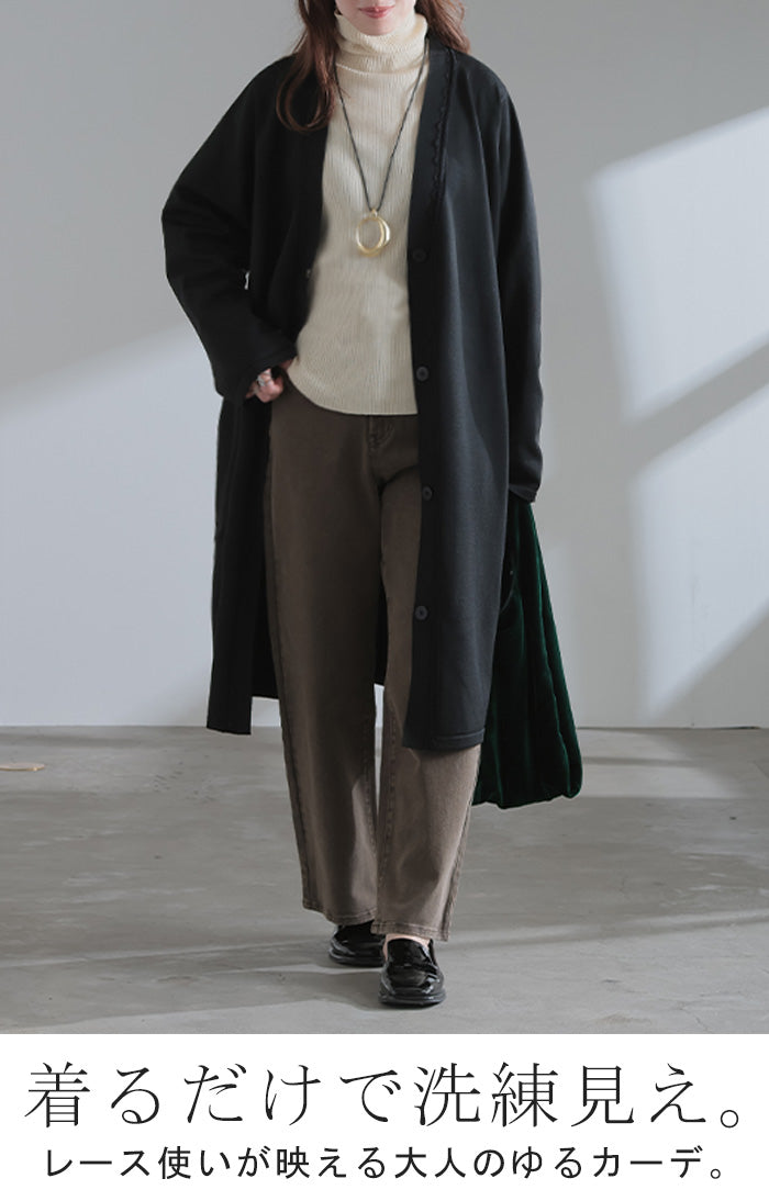 カーディガン ロング レース レディース 長袖 ニット 羽織 ロングカーディガン レイヤード 重ね着 チュニック 無地 お尻が隠れる ストレッチ ライトアウター 大きいサイズ 体型カバー 40代 50代 ミセス 大人 きれいめ 上品 黒 ネイビー 秋 冬 HUG.U