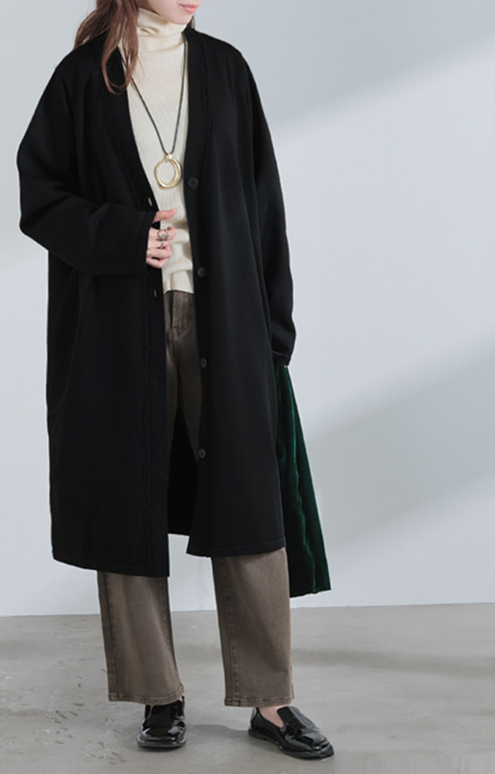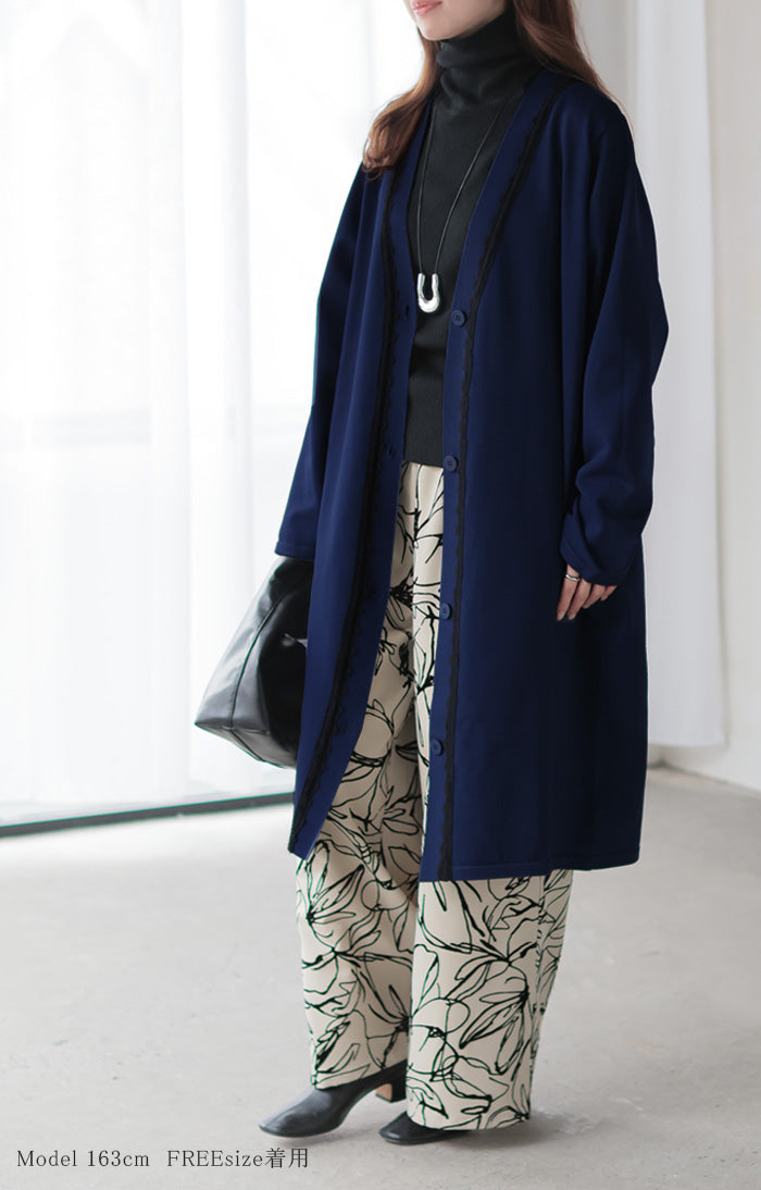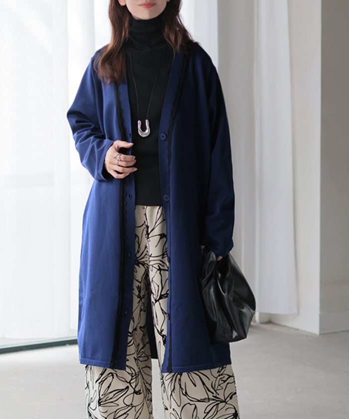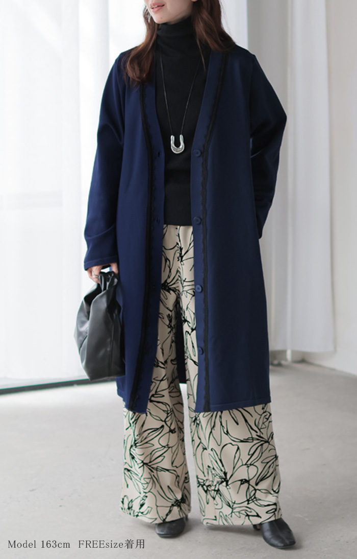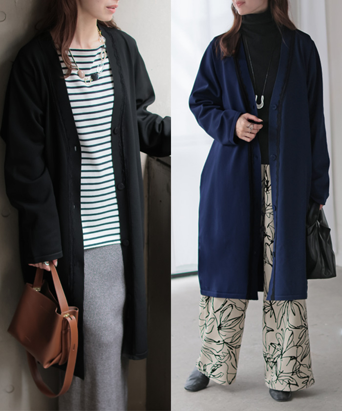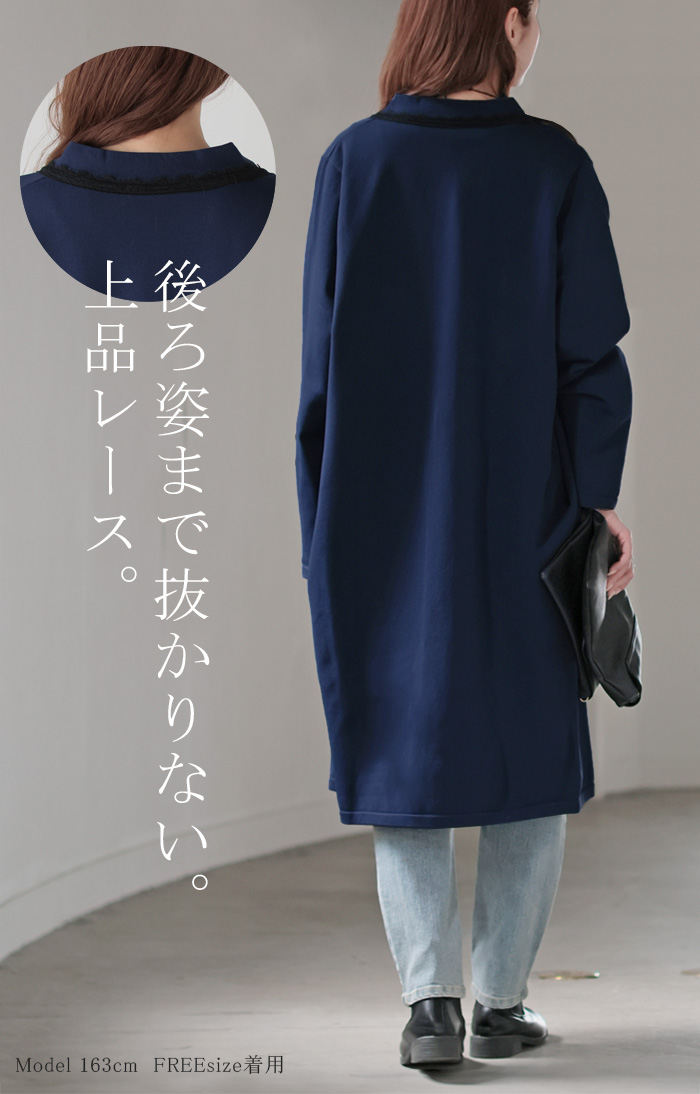 カーディガン ロング レース レディース 長袖 ニット 羽織 ロングカーディガン レイヤード 重ね着 チュニック 無地 お尻が隠れる ストレッチ ライトアウター 大きいサイズ 体型カバー 40代 50代 ミセス 大人 きれいめ 上品 黒 ネイビー 秋 冬 HUG.U