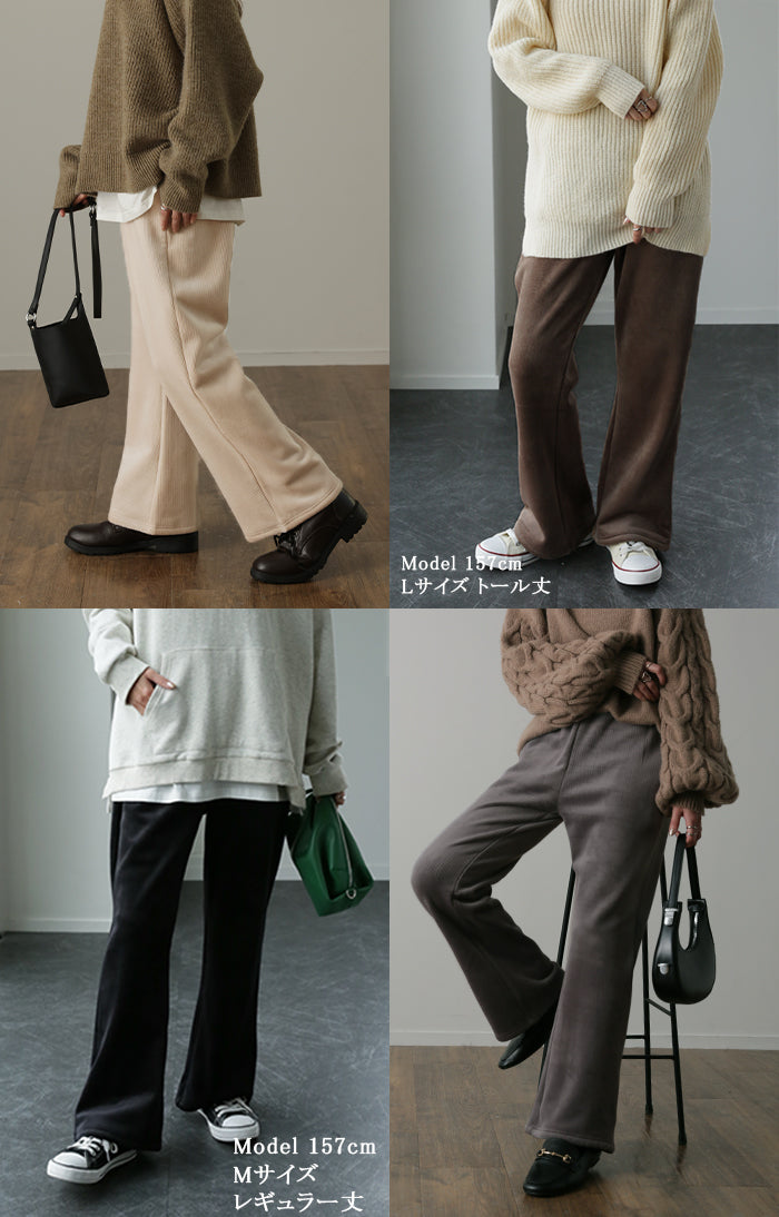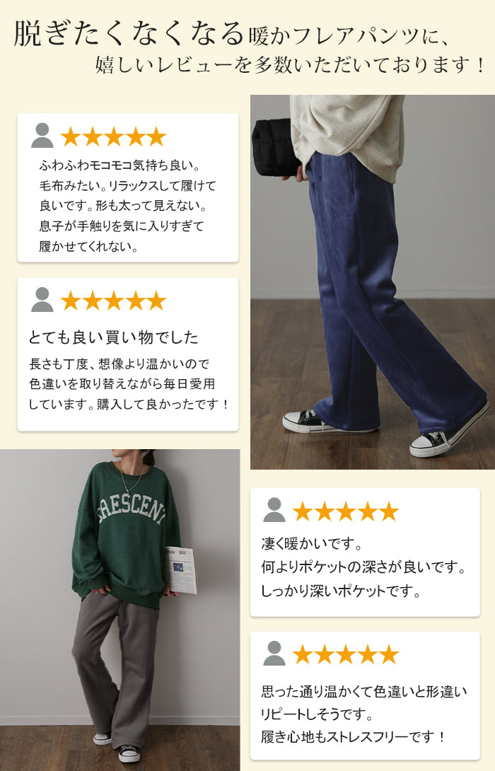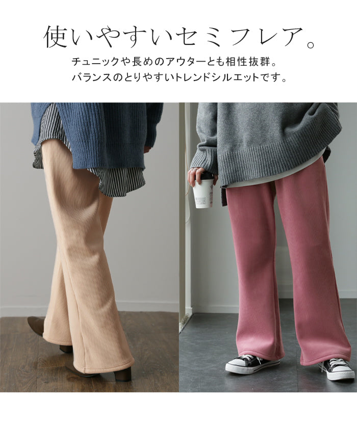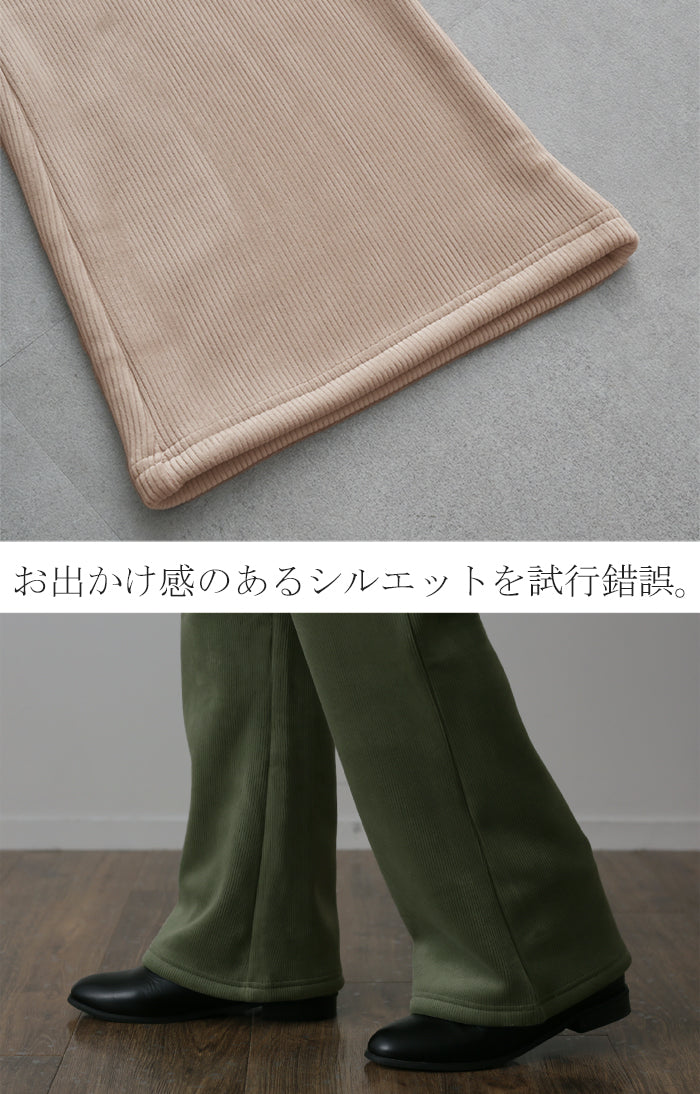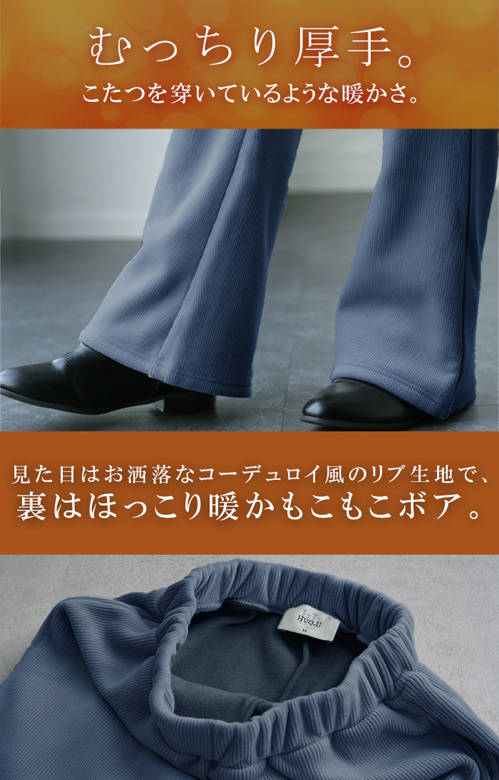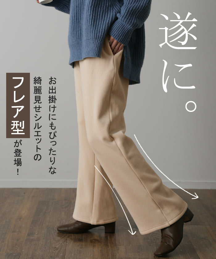 脱ぎたくない…“温かフレア出ました!” 裏起毛 パンツ リブ リブパンツ ボトムス レディース フレアパンツ フレア ロング ボア ゴム コーデュロイ スリット 裏ボア 暖か 極暖 厚手 ゆったり 大きいサイズ 黒 グレー ブラック カーキ 春 夏 HUG.U