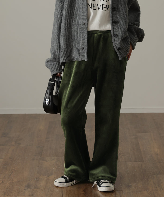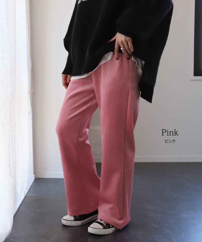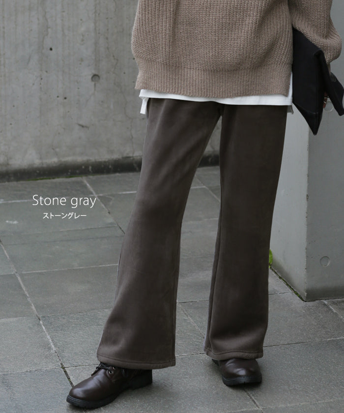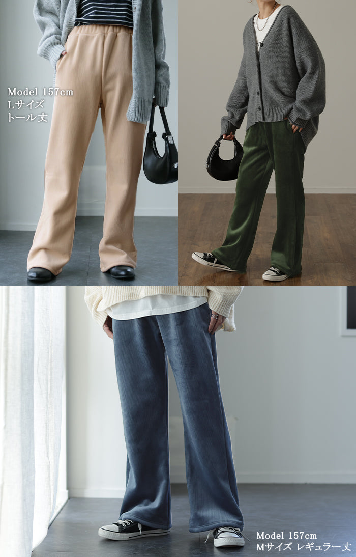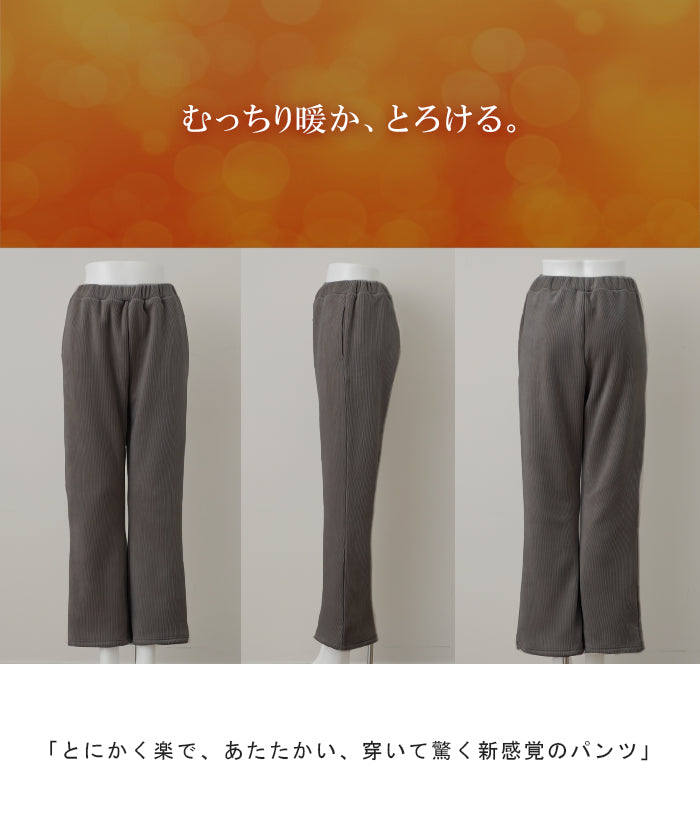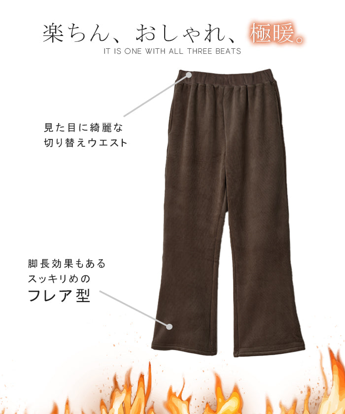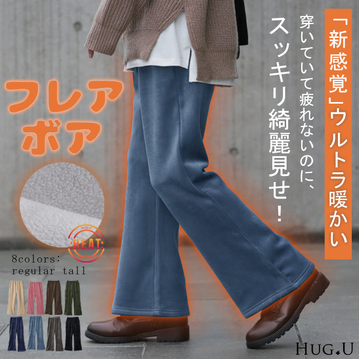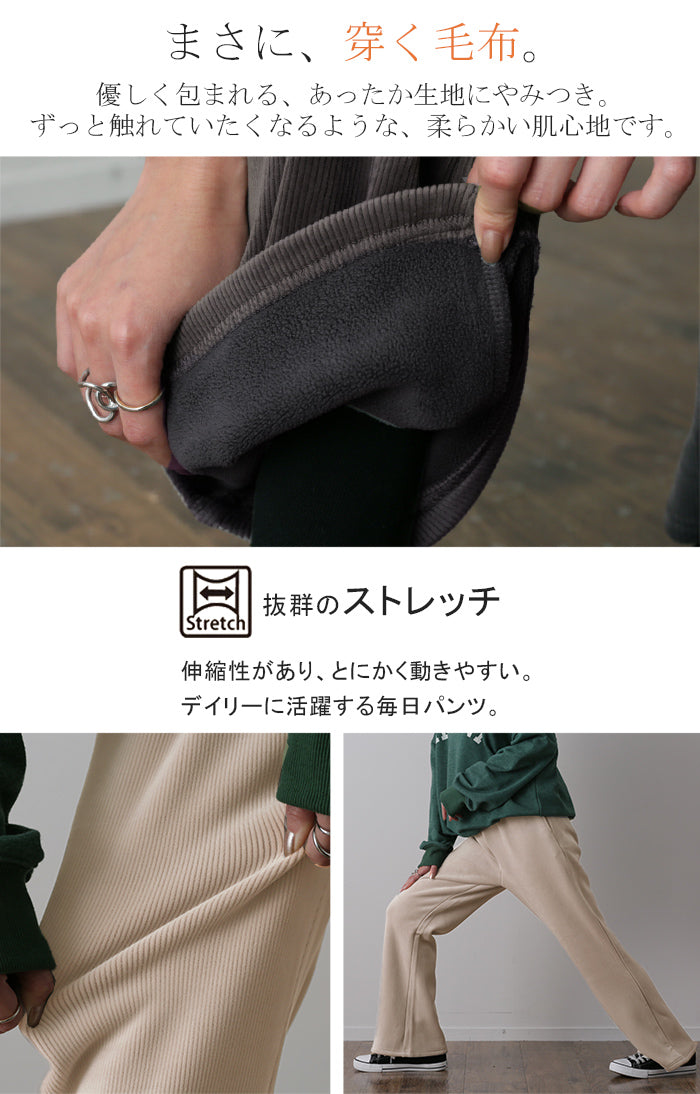 脱ぎたくない…“温かフレア出ました!” 裏起毛 パンツ リブ リブパンツ ボトムス レディース フレアパンツ フレア ロング ボア ゴム コーデュロイ スリット 裏ボア 暖か 極暖 厚手 ゆったり 大きいサイズ 黒 グレー ブラック カーキ 春 夏 HUG.U