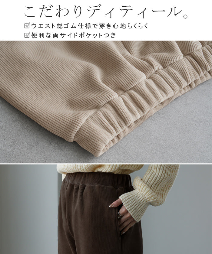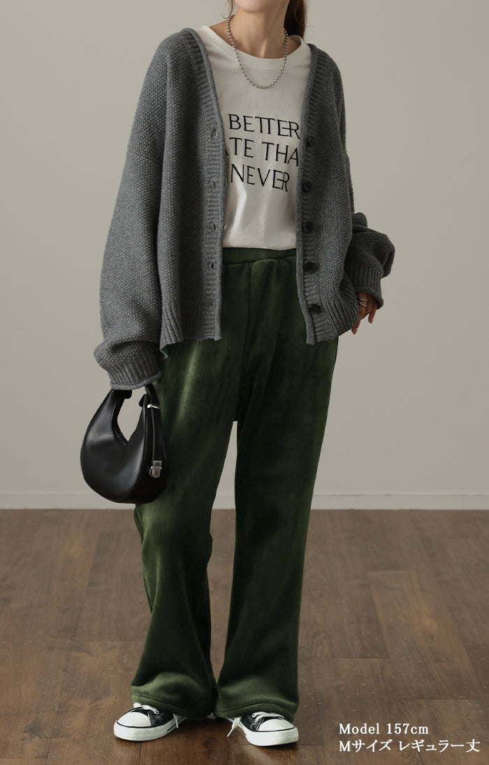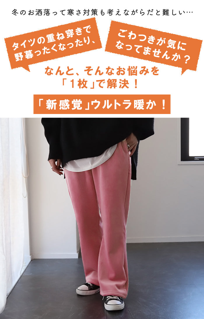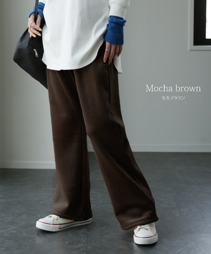 きめ細やかな裏ボアで暖か大人イージーパンツです。ストレスフリーな穿き心地でおうち時間にもオススメ。細すぎず太過ぎずのシルエットで色々なトップスとも楽ちんに着映えします。