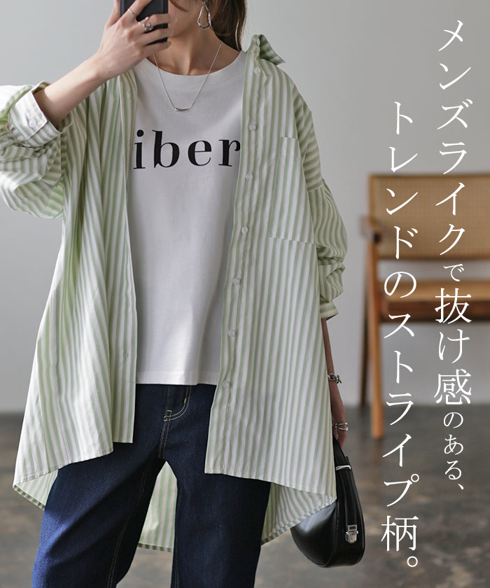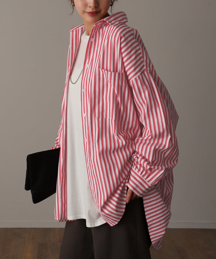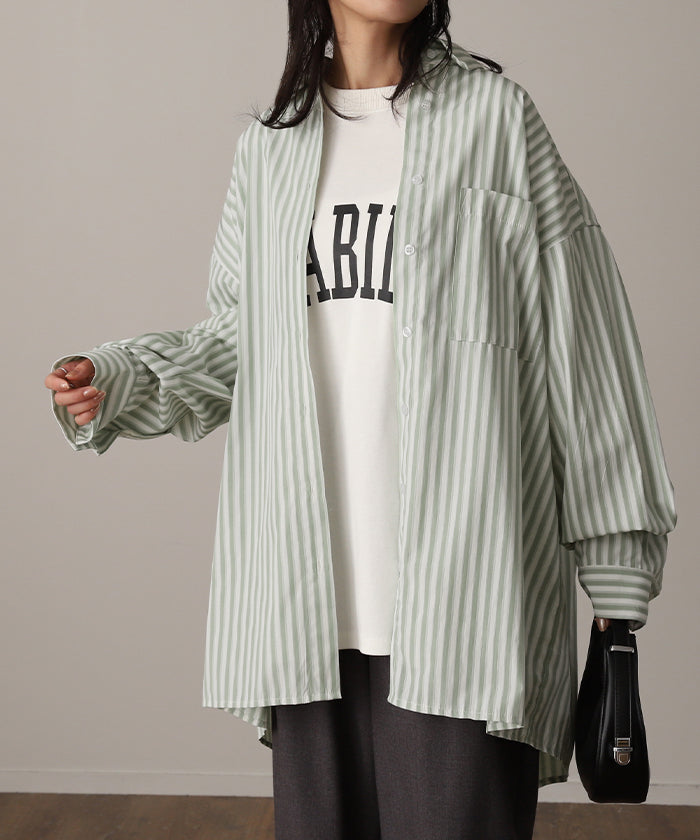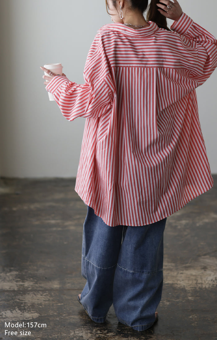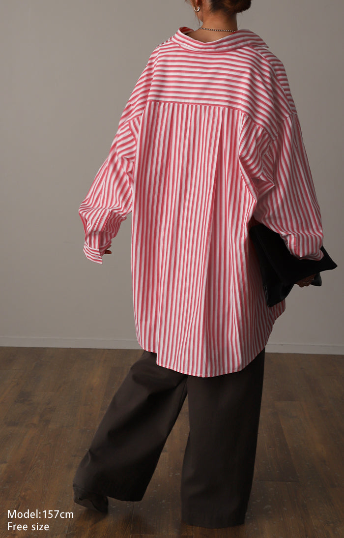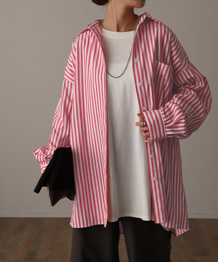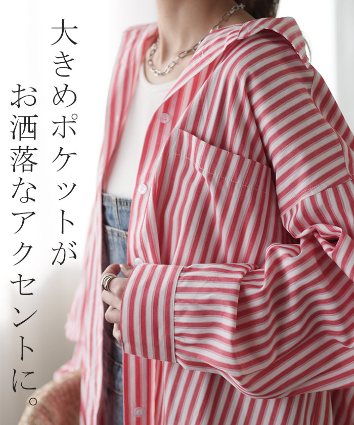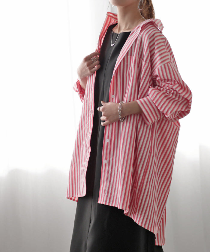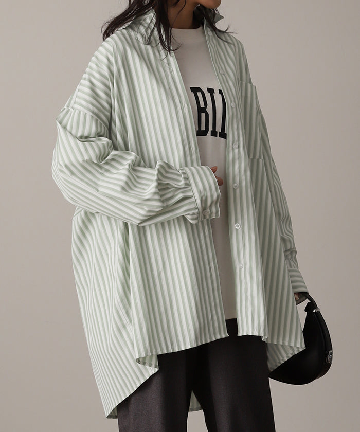 取り入れるだけでトレンド感もアップするオーバーサイズストライプシャツです。着るだけで自然と立体感が出てこなれた雰囲気に仕上げてくれる一着です。レイヤードでも一枚着でも着映えるので様々なシーンで活躍してくれるアイテムです。