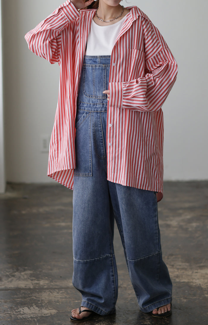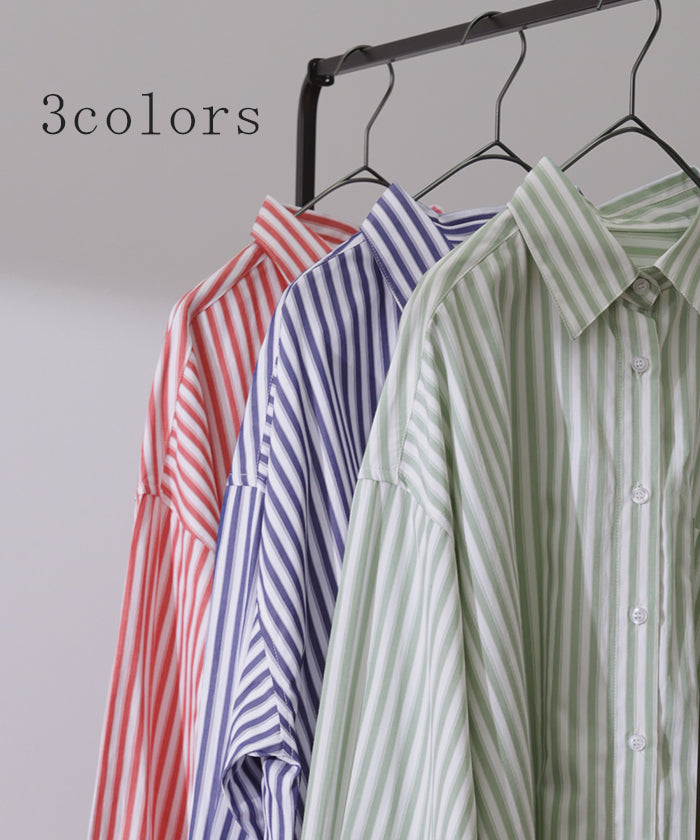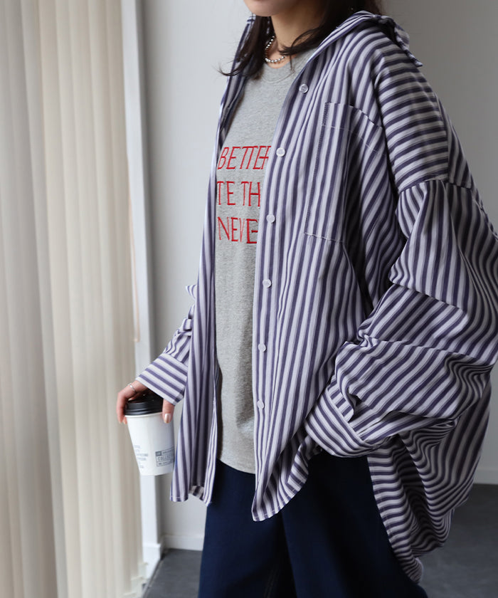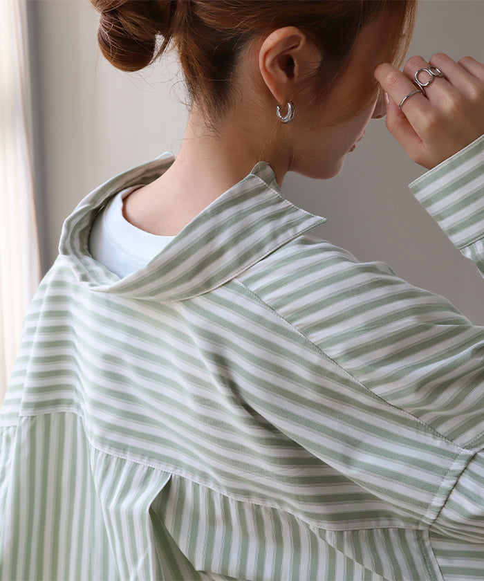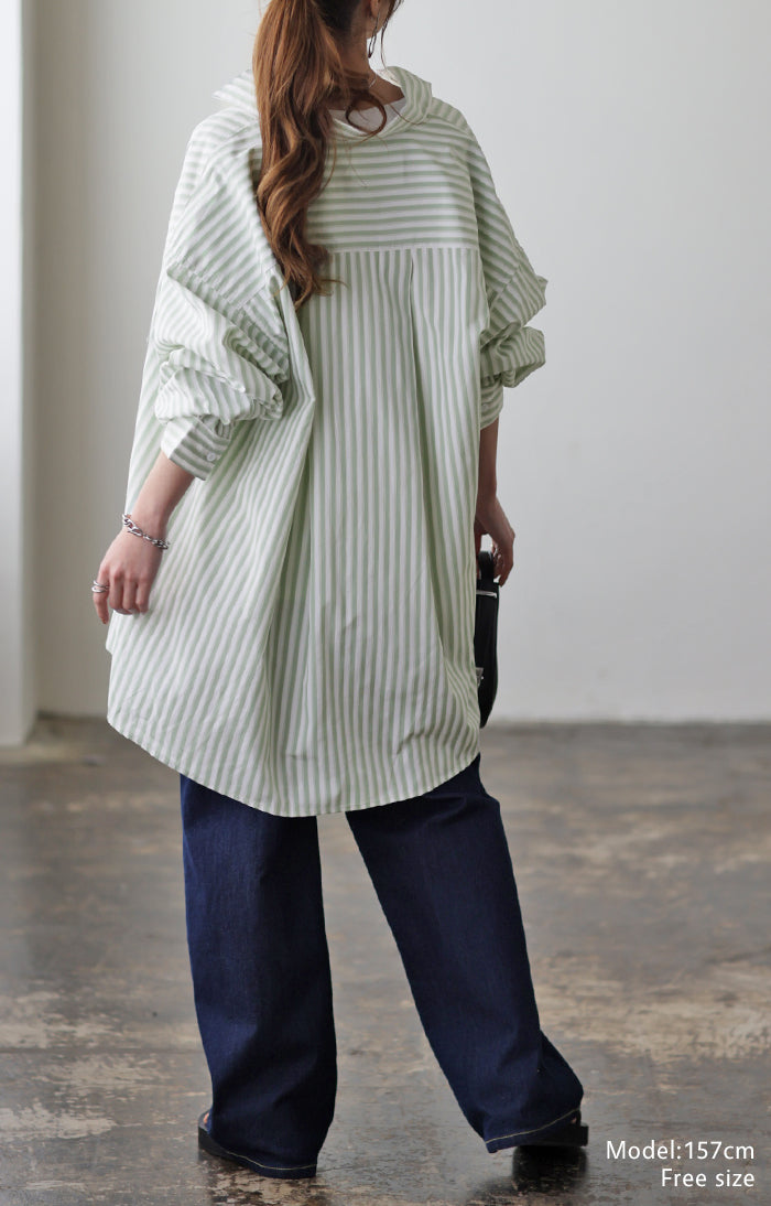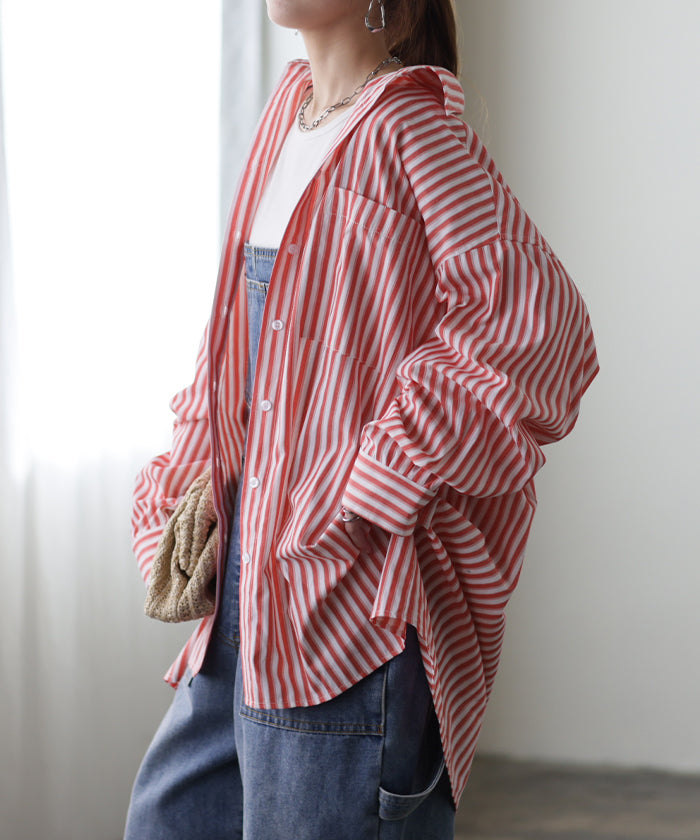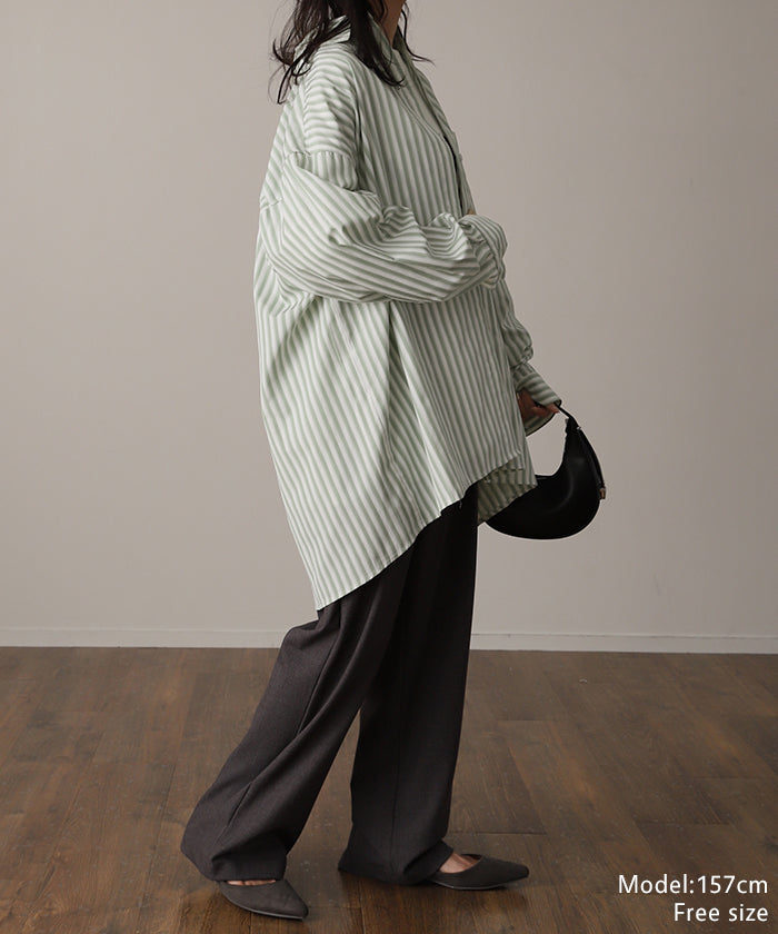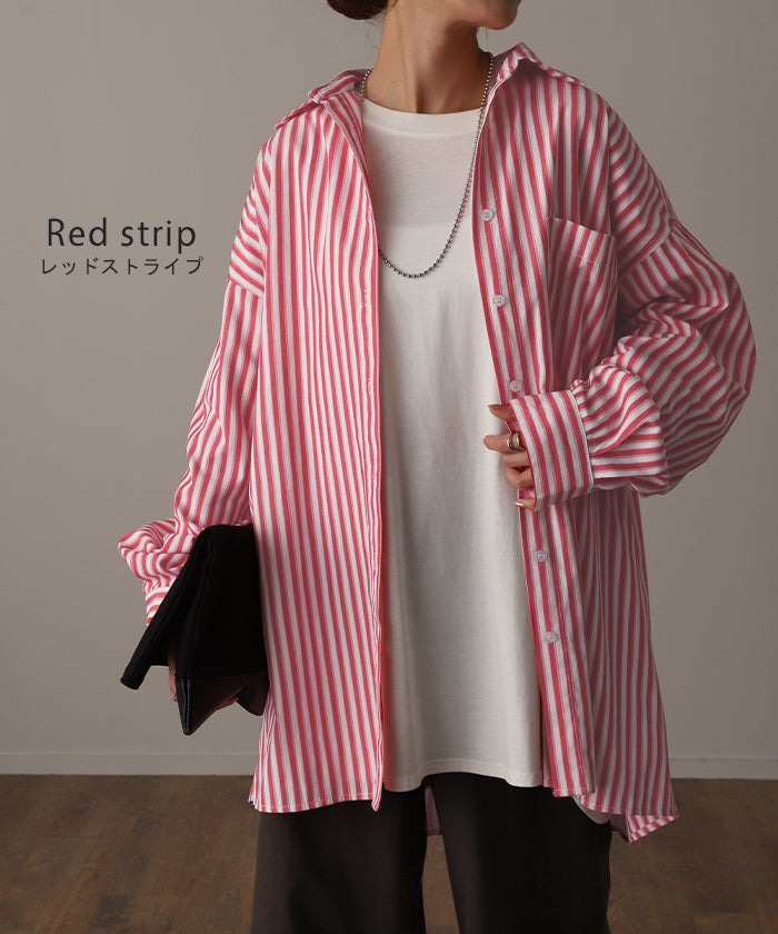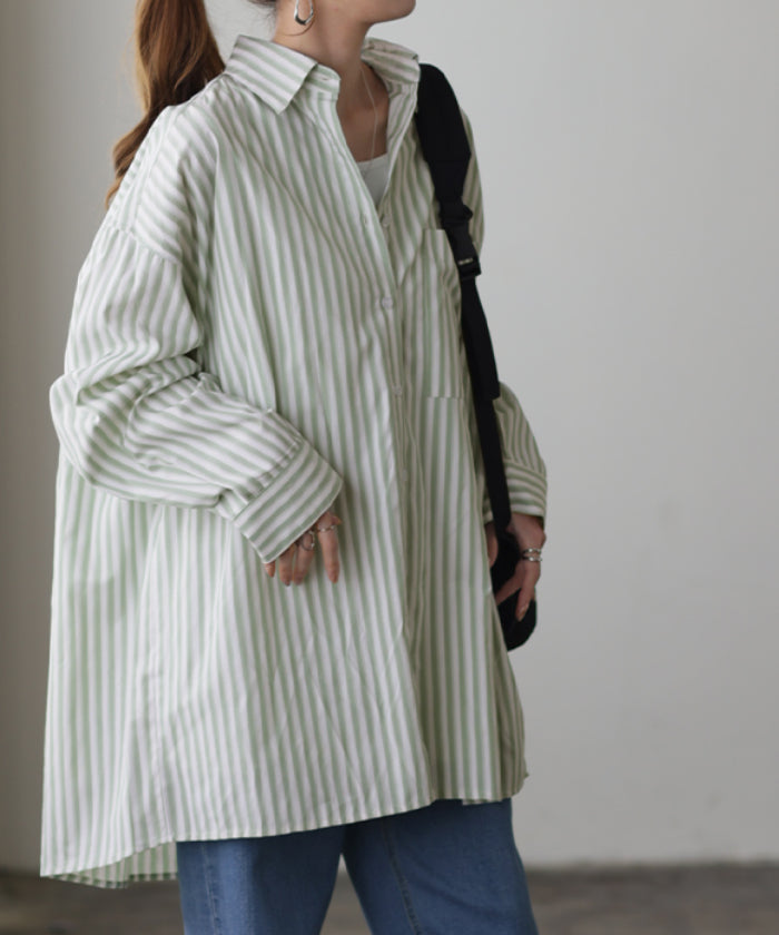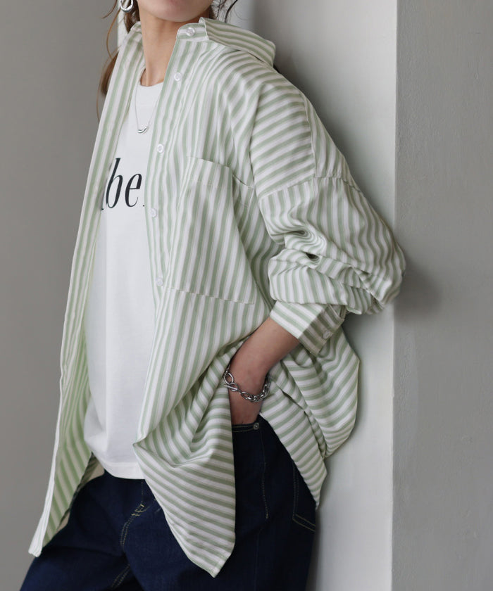 取り入れるだけでトレンド感もアップするオーバーサイズストライプシャツです。着るだけで自然と立体感が出てこなれた雰囲気に仕上げてくれる一着です。レイヤードでも一枚着でも着映えるので様々なシーンで活躍してくれるアイテムです。