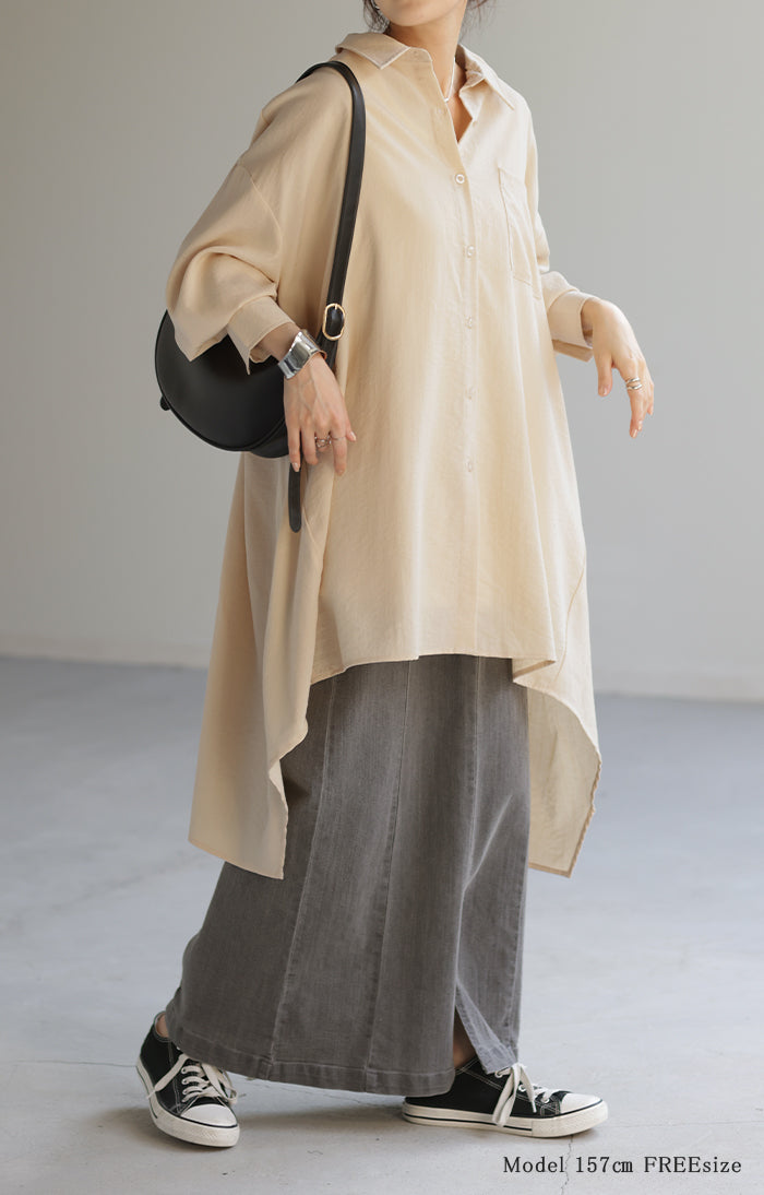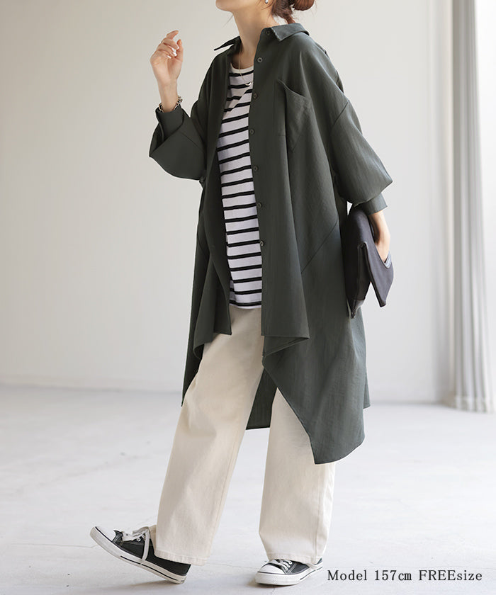 体型カバーとあるように体型カバーは出来たけど、袖口のボタンがギリギリ。細い人なら余裕ある感じでしょうがギリギリだった。首周りも小さかったけど開ければ問題無い。