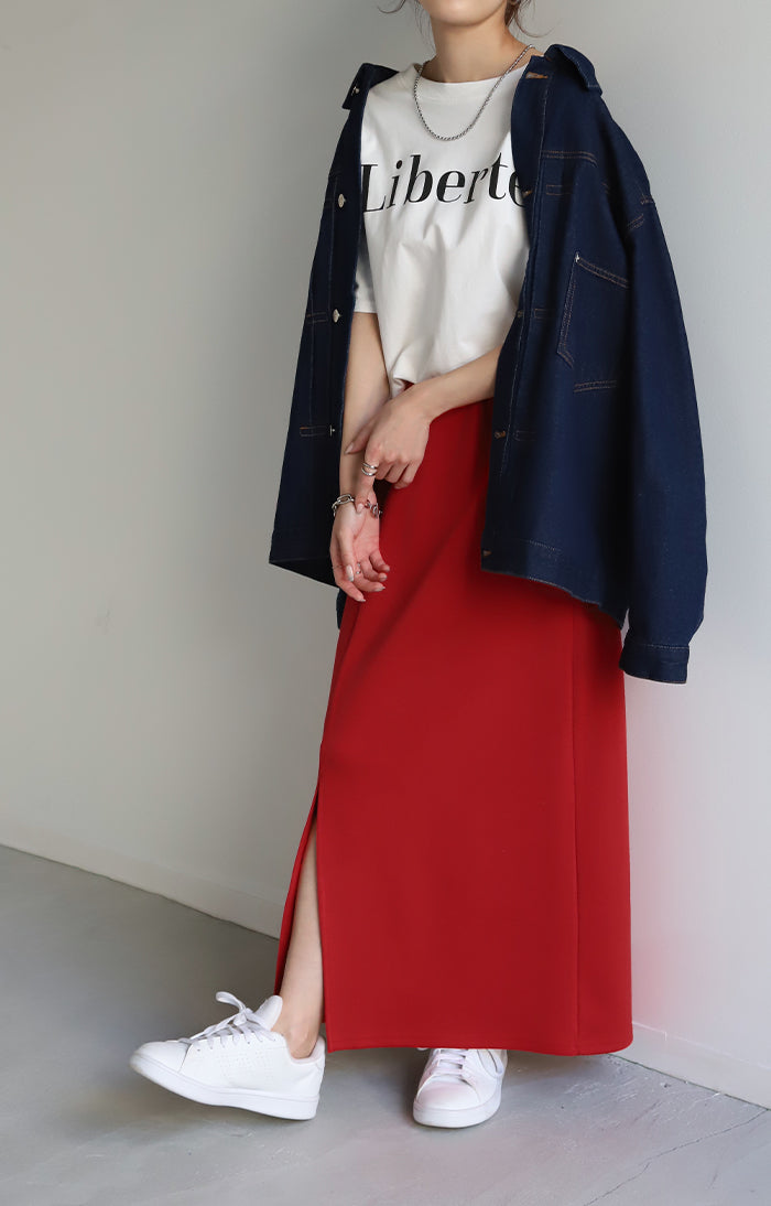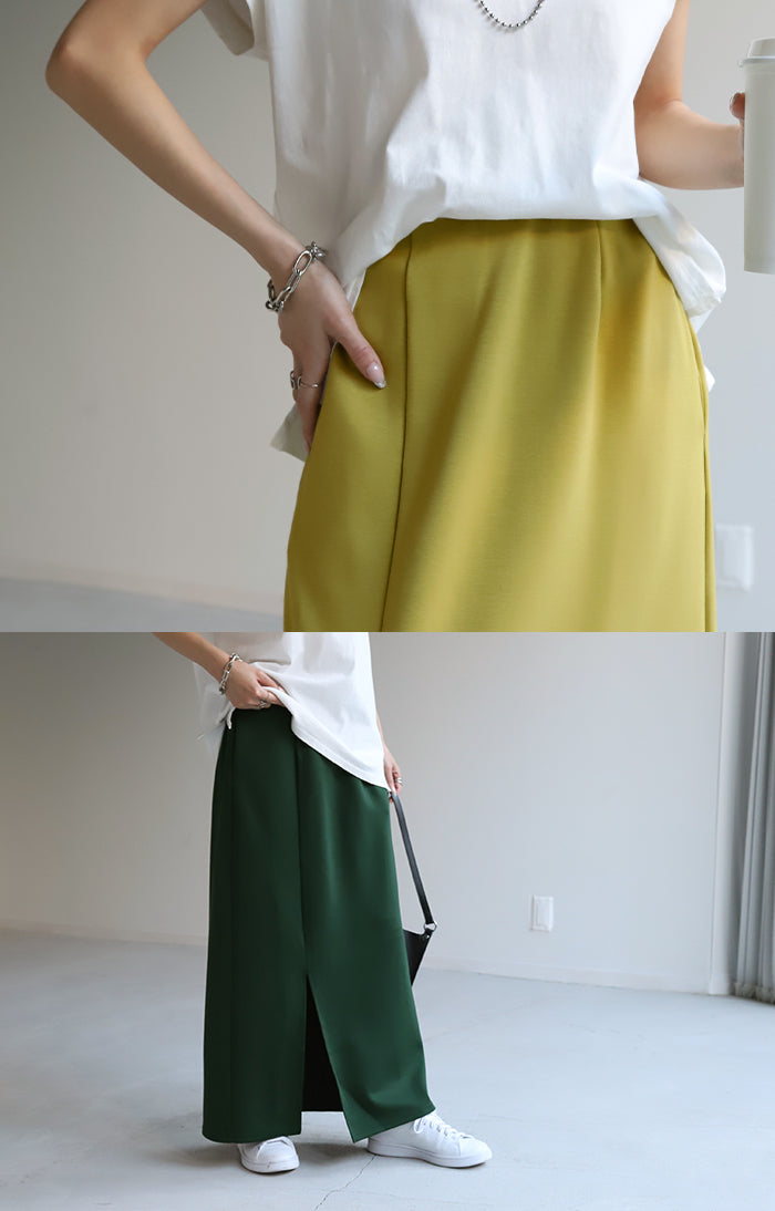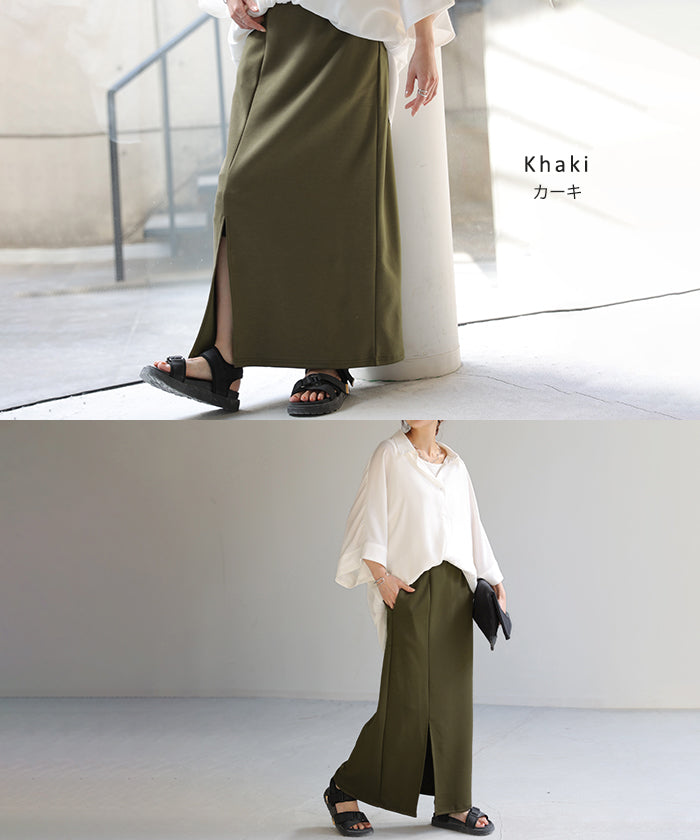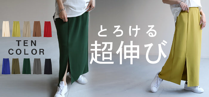 レビューをご投稿いただきありがとうございます。 伸縮性があり履きやすいとのこと、大変ありがたく拝見いたしました。 スリット入りで歩きやすさを感じていただけて何よりです。 ブルーのお色味も気に入っていただけたとのこと、嬉しく存じます。 ぜひさまざまなコーディネートでご活用いただけますと幸いです。