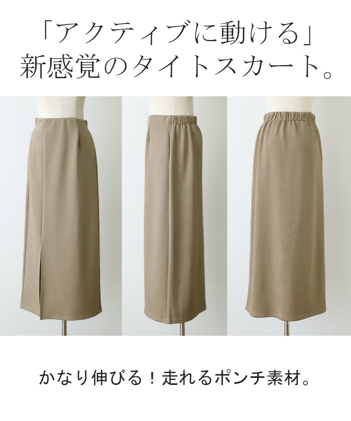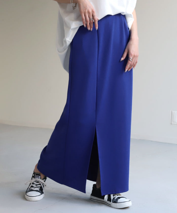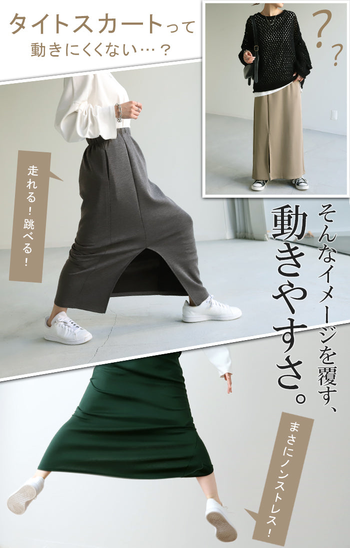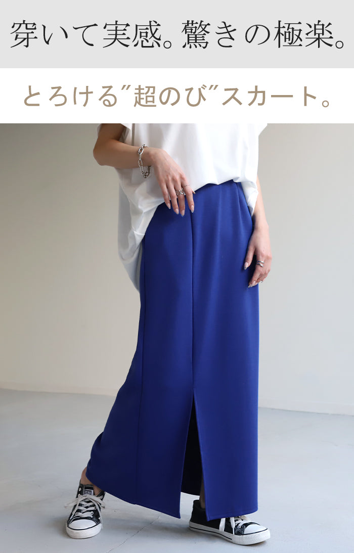 生地がすごく伸縮性があって履きやすいです。 タイトロングでもスリットが入っているので歩きやすいです。色もきれいなブルー!