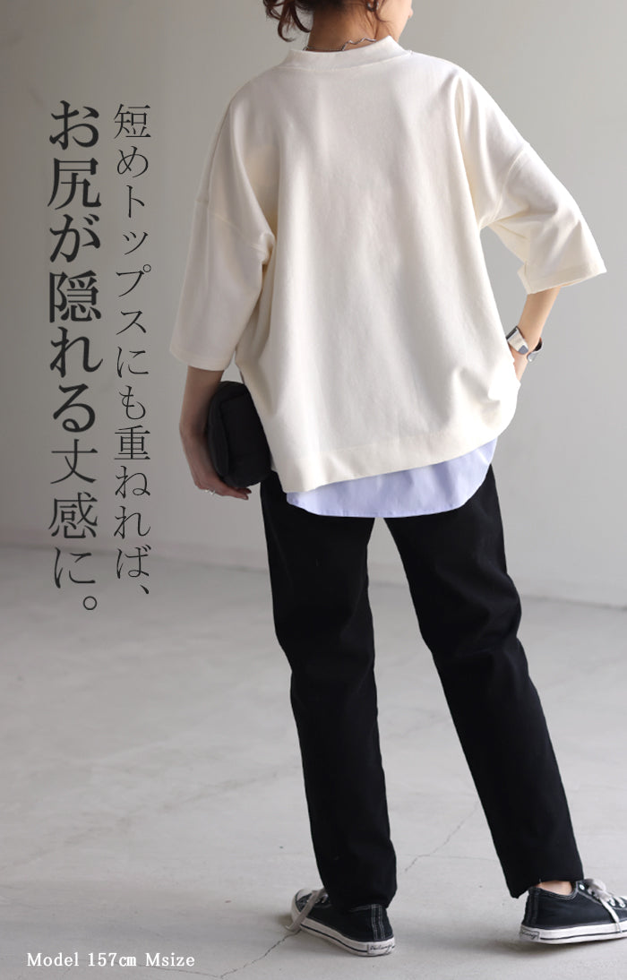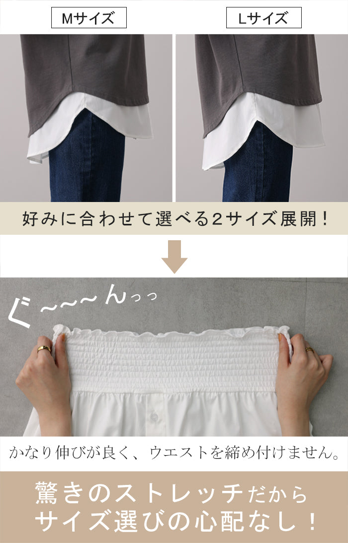 思っていたよりもテロンとした生地で丈も少し長めでしたが、これはこれで良かったです。シワにもなりにくいですし、何より締め付けなくて楽です。