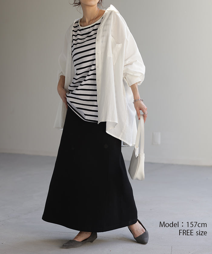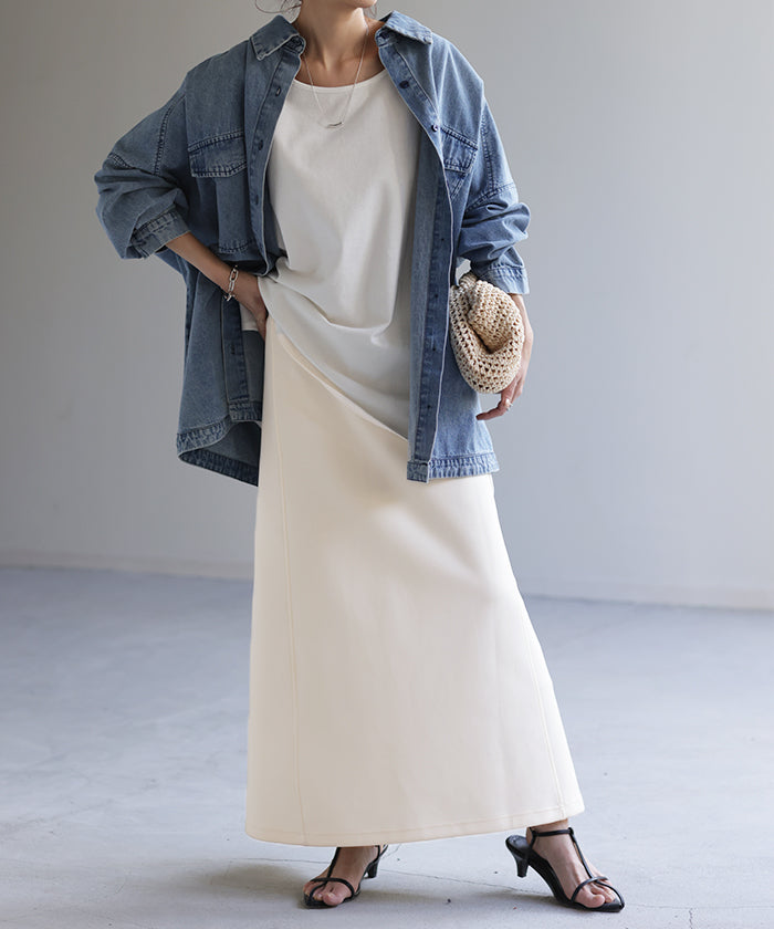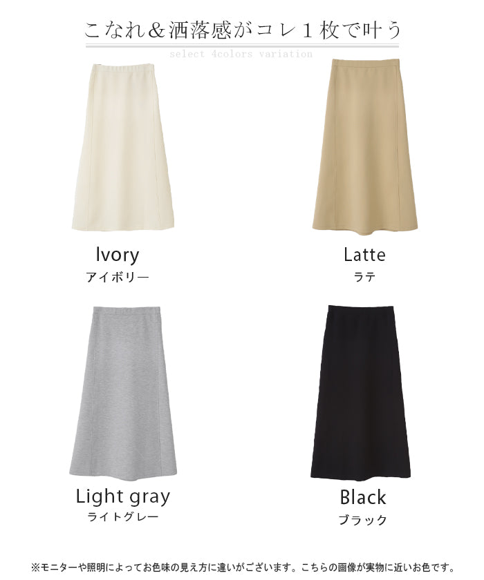 とても履きやすいスカートでした。 丈も形も好みだったのですぐ色違いを購入。 痩せて見えました。