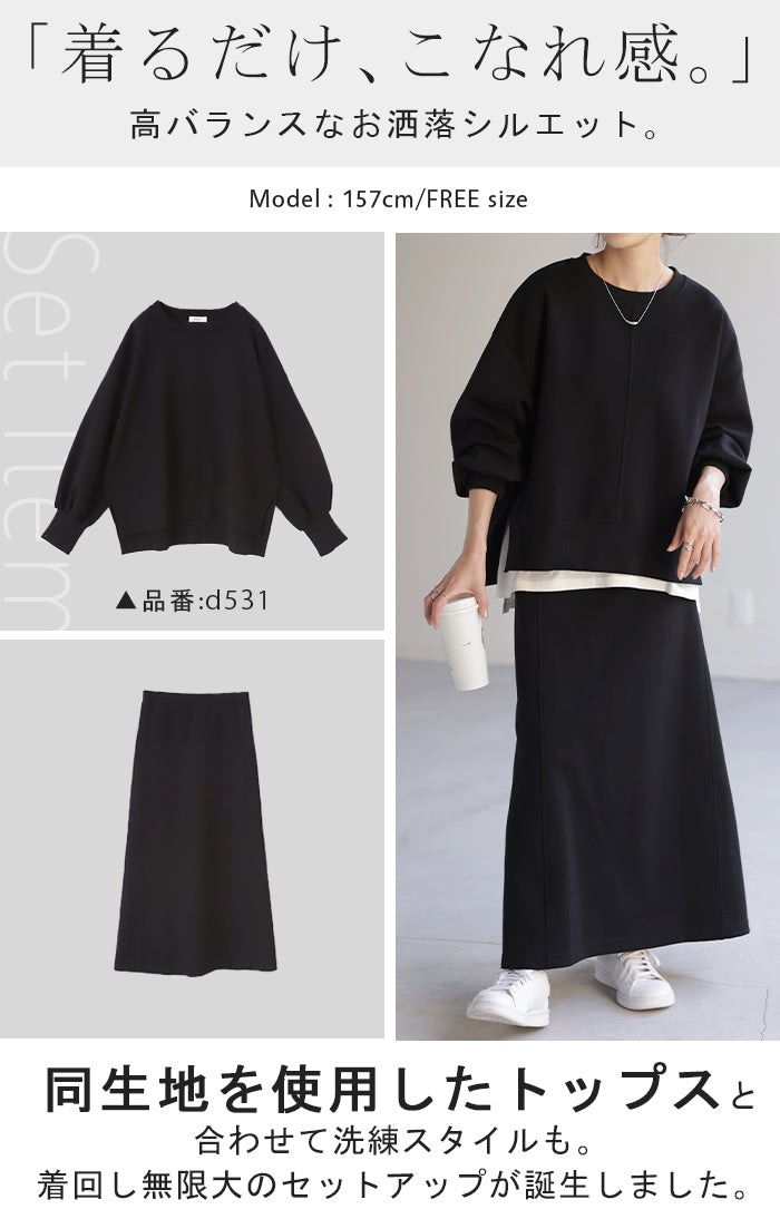 レビューをお寄せいただきありがとうございます。 スウェット生地の着やすさを感じていただけたとのこと、大変嬉しく拝見いたしました。 上下で揃えていただいたとのこと、セットアップでの着こなしもぜひお楽しみください。 それぞれ単品でも使いやすいアイテムかと存じますので、コーディネートの幅が広がる一着となっておりましたら幸いです。 引き続きご愛顧の程よろしくお願いいたします。
