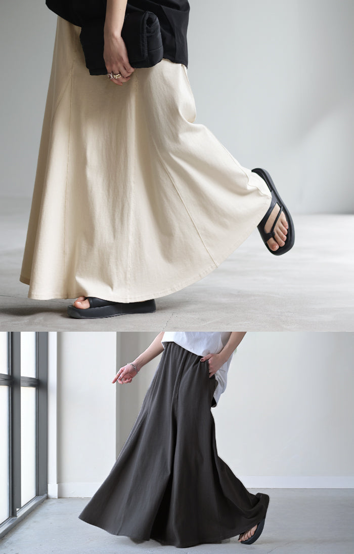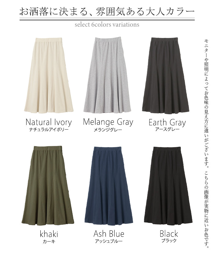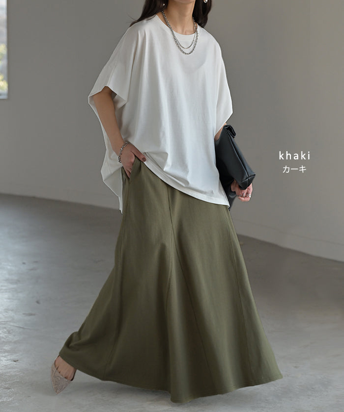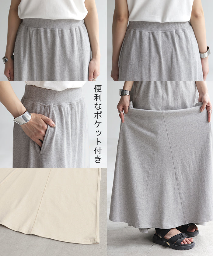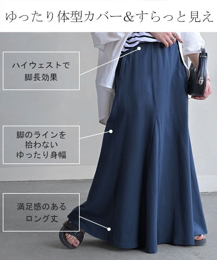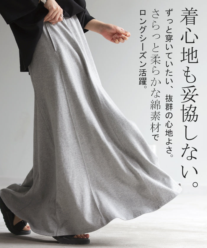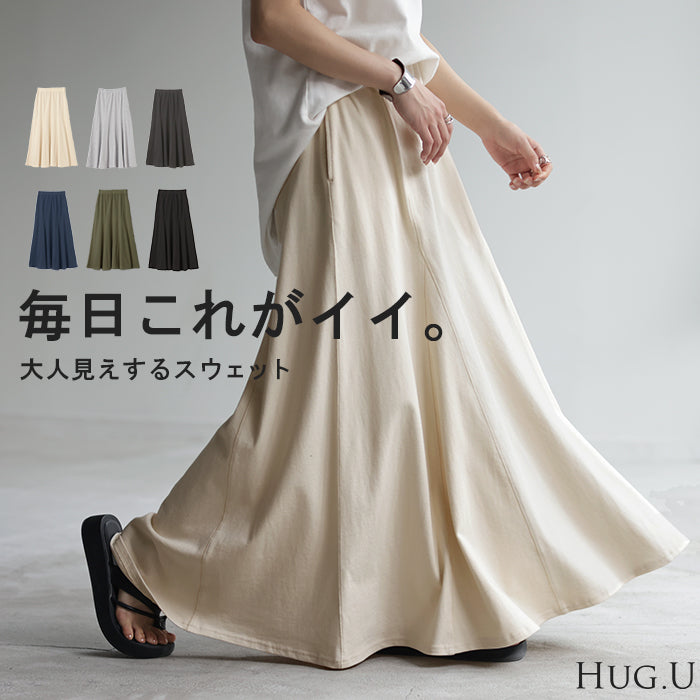 スカート スウェット Aライン 綿100% レディース ロングスカート ボトムス スエット きれいめ フレア フレアスカート ゴム ロング マキシ マキシスカート スウェットスカート 無地 ボトム ゆったり おしゃれ ストレッチ 黒 白 春 夏 HUG.U