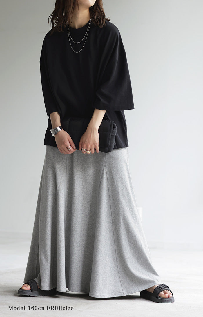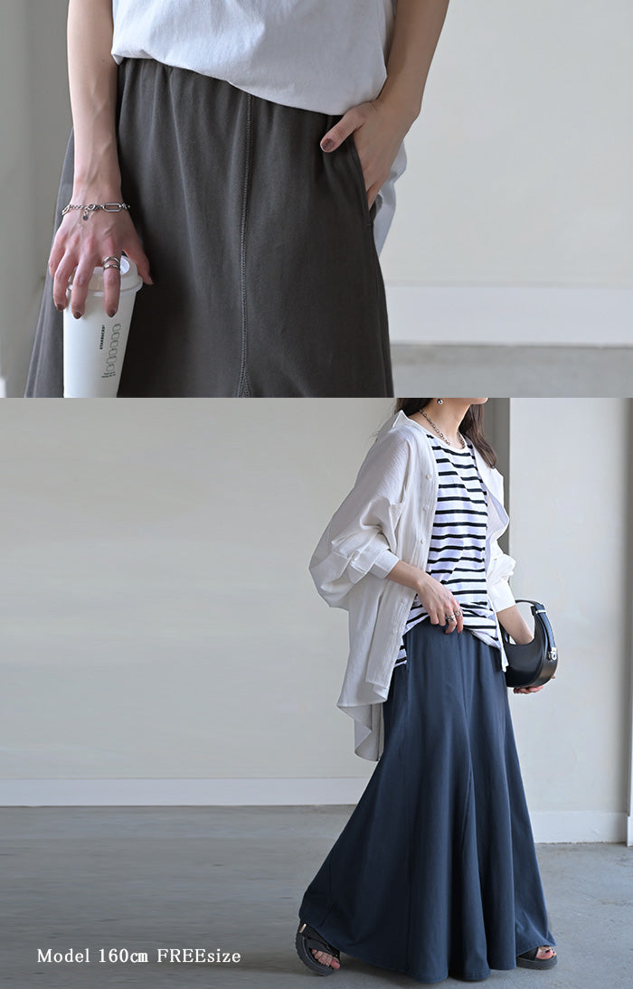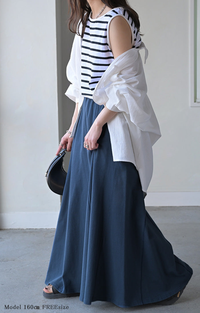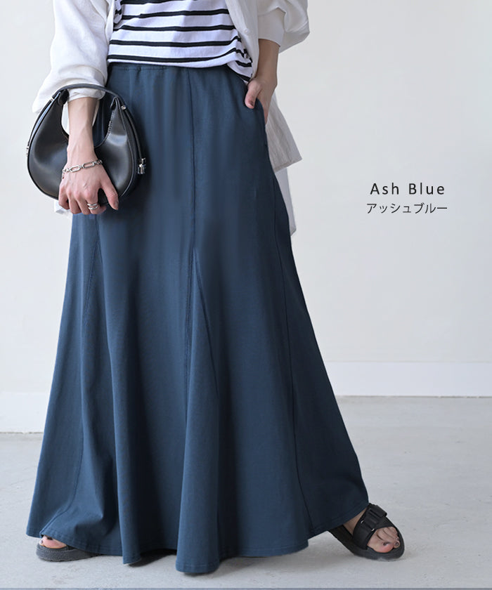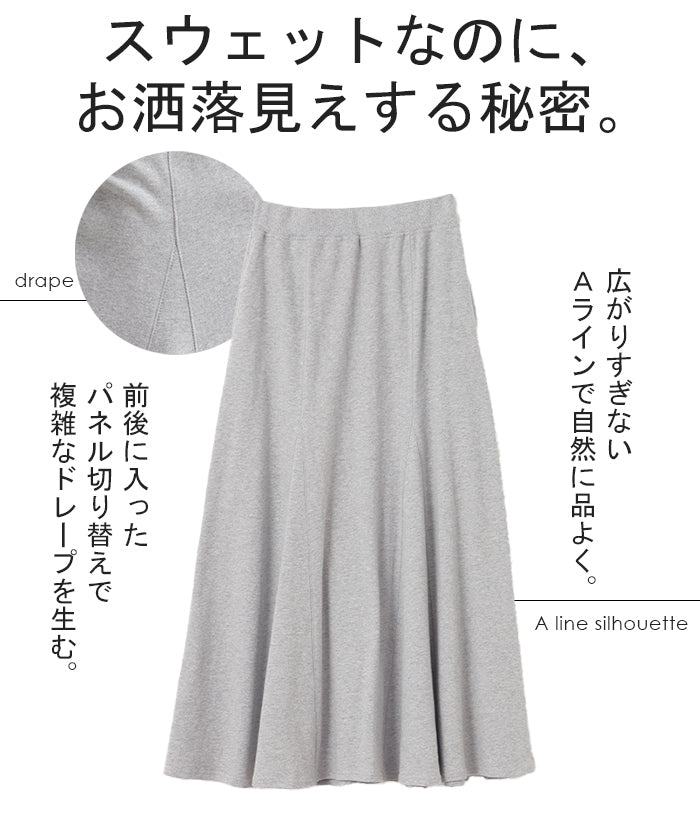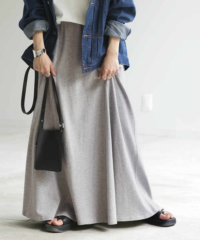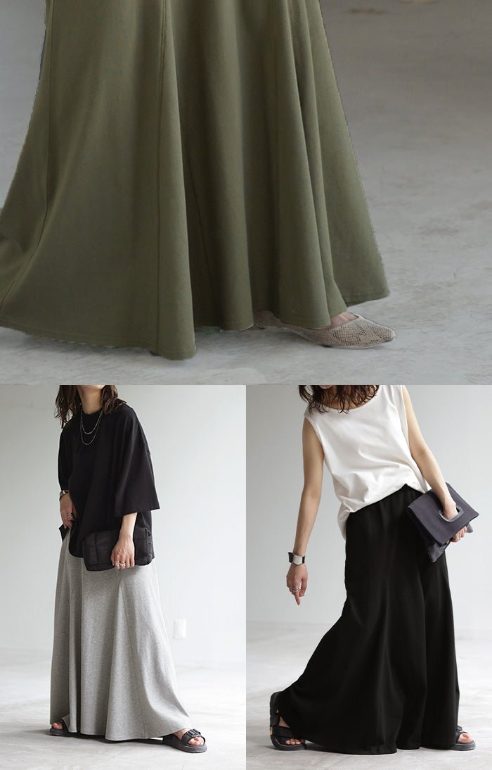 スカート スウェット Aライン 綿100% レディース ロングスカート ボトムス スエット きれいめ フレア フレアスカート ゴム ロング マキシ マキシスカート スウェットスカート 無地 ボトム ゆったり おしゃれ ストレッチ 黒 白 春 夏 HUG.U