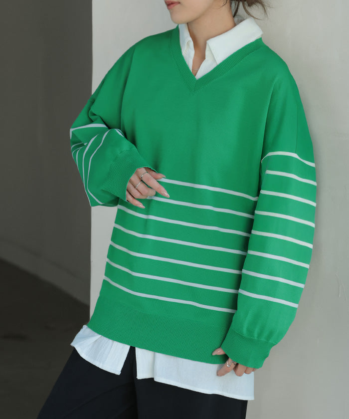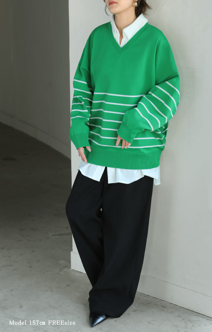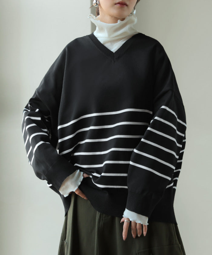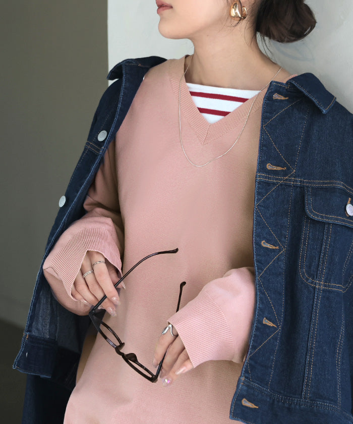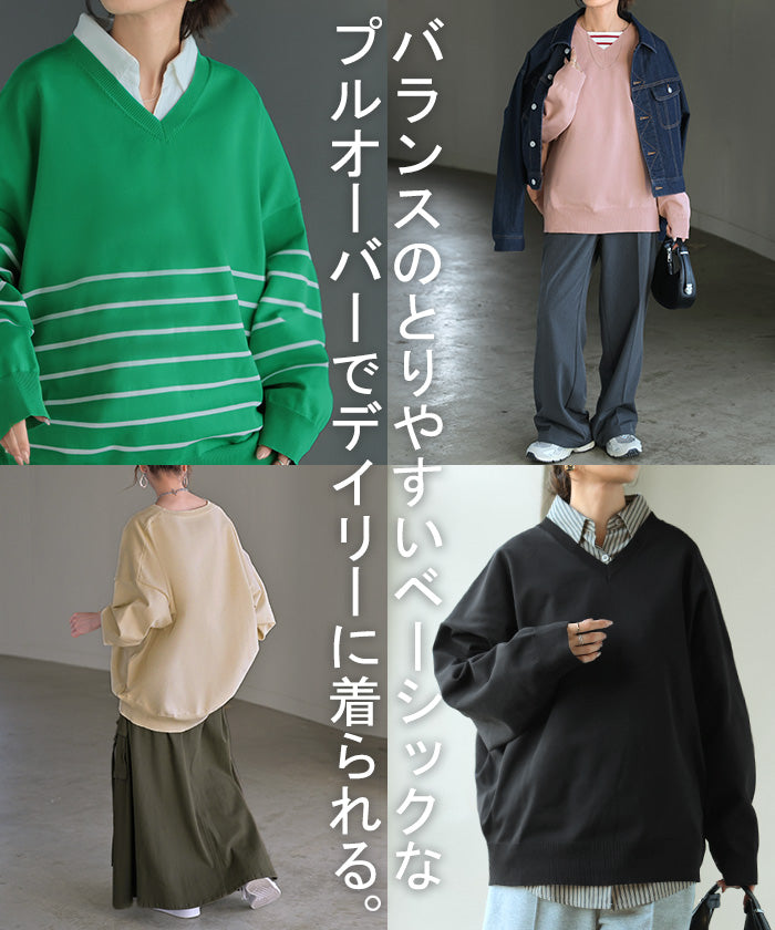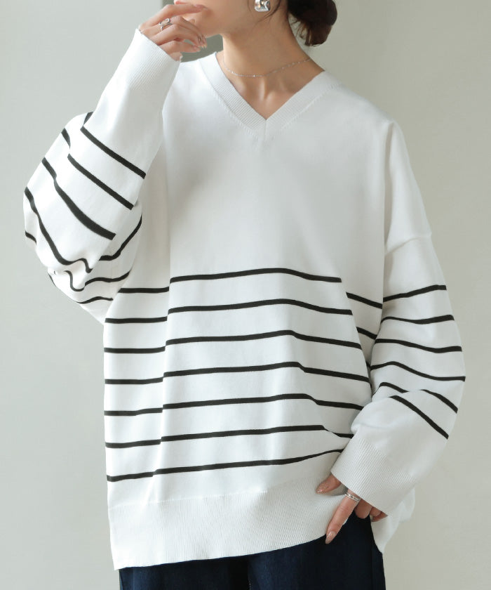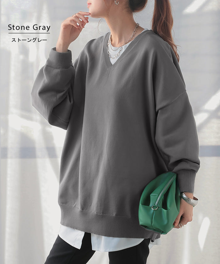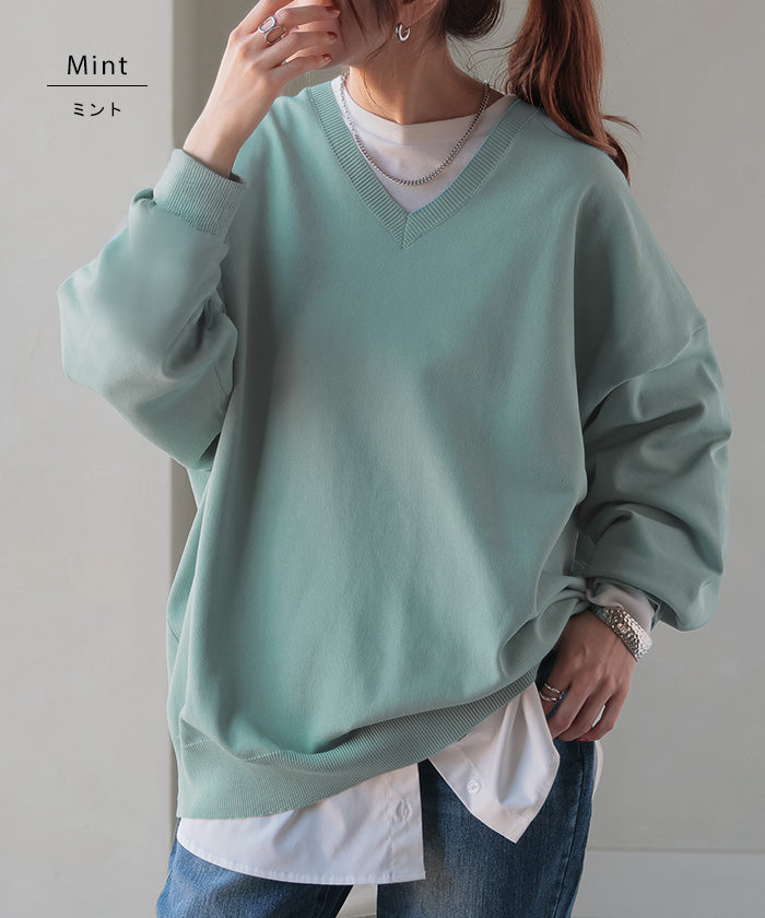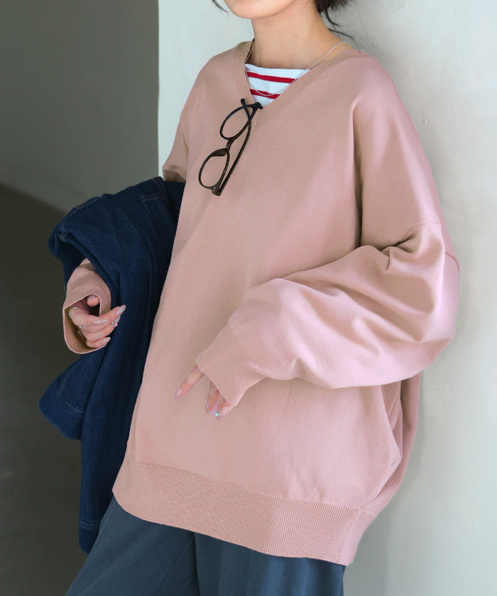 ニット チクチクしない スポンジニット ■一部1月中旬入荷 レディース トップス セーター トレーナー オーバー プルオーバー ロング 長袖 長い ボリュームスリーブ Vネック リブ ゆったり 体型カバー お尻が隠れる 軽量 カジュアル 青 黒 春 夏 HUG.U