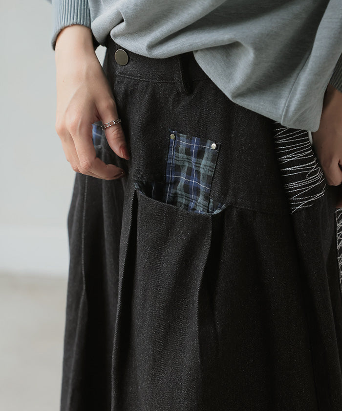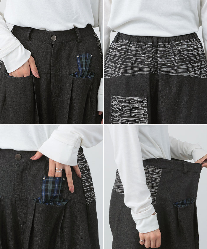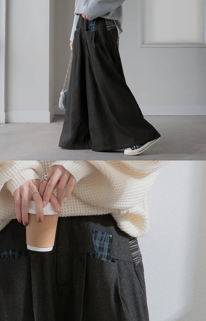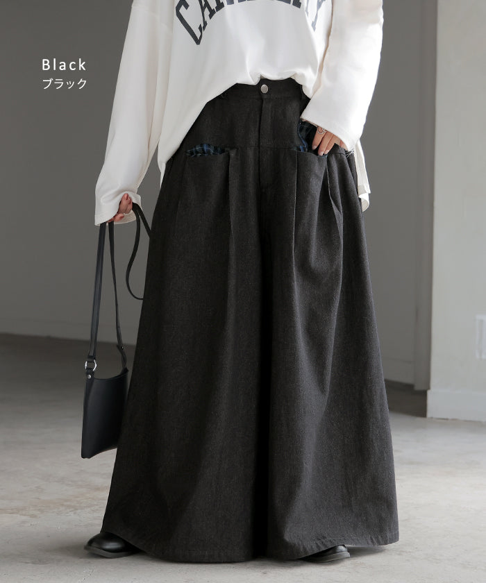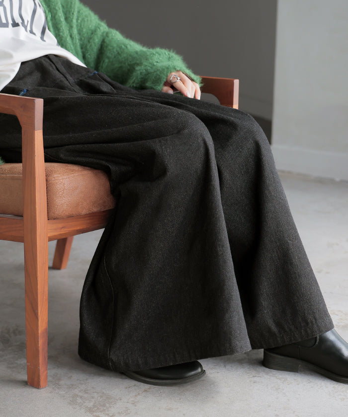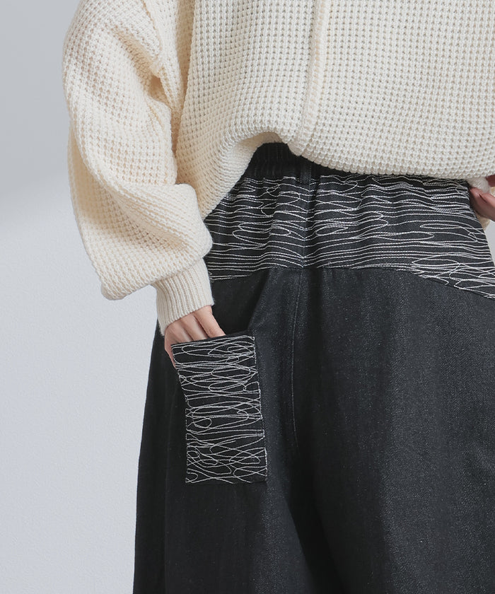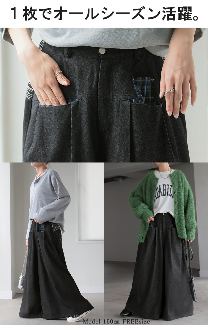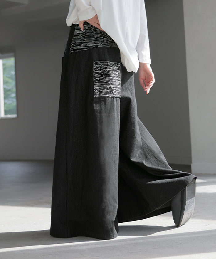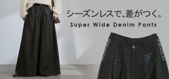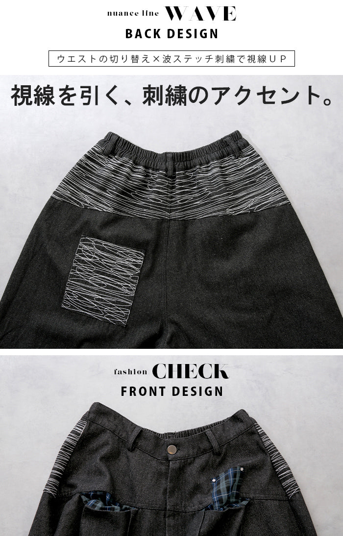 デニム パンツ 異素材 ワイド デニムパンツ レディース 綿100% ワイドパンツ ジーンズ ジーパン 体型カバー ボトムス ボトム ストレート ズボン ゆったり ハイウエスト 伸びる ゴム 美脚 大きいサイズ カジュアル ブラック 黒 春 夏 HUG.U
