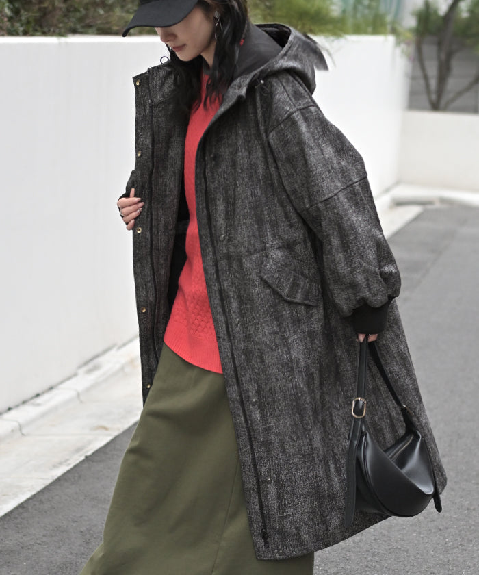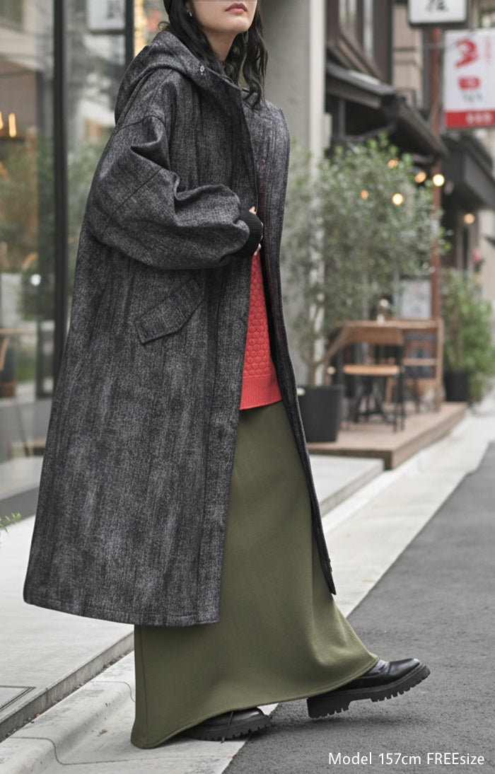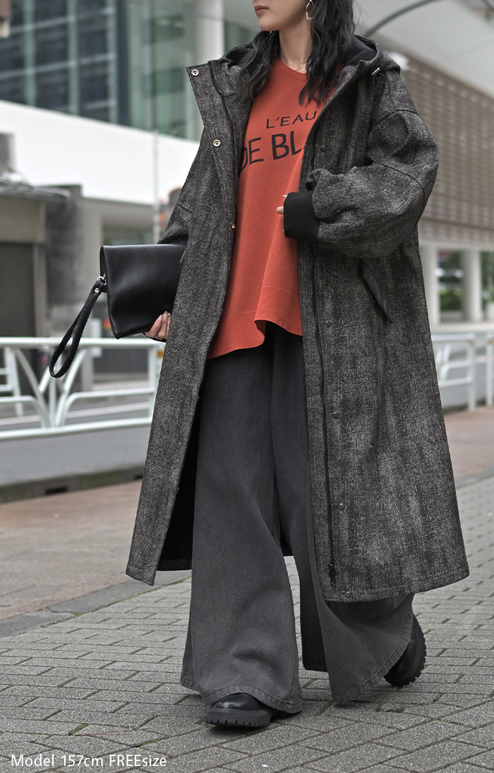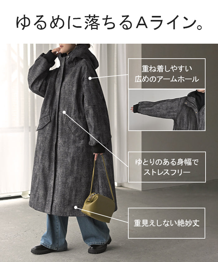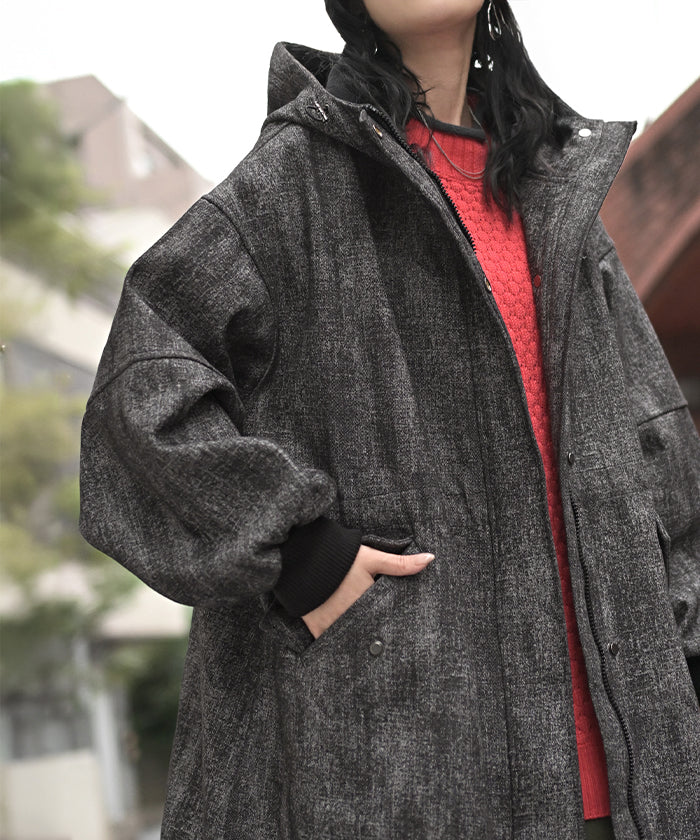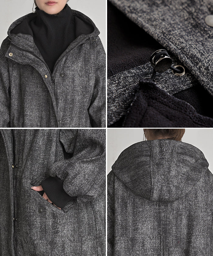 2025AW新作 アウター ロング パーカー ■12月中旬入荷 デニム 裏起毛 レディース ジャケット オーバー 長袖 羽織 チュニック ジーンズ フード ヴィンテージ 風 ドロスト リブ あったか 綿100 オーバーサイズ 大きいサイズ 体型カバー お尻が隠れる カジュアル 黒 ブラック 秋 冬 HUG.U