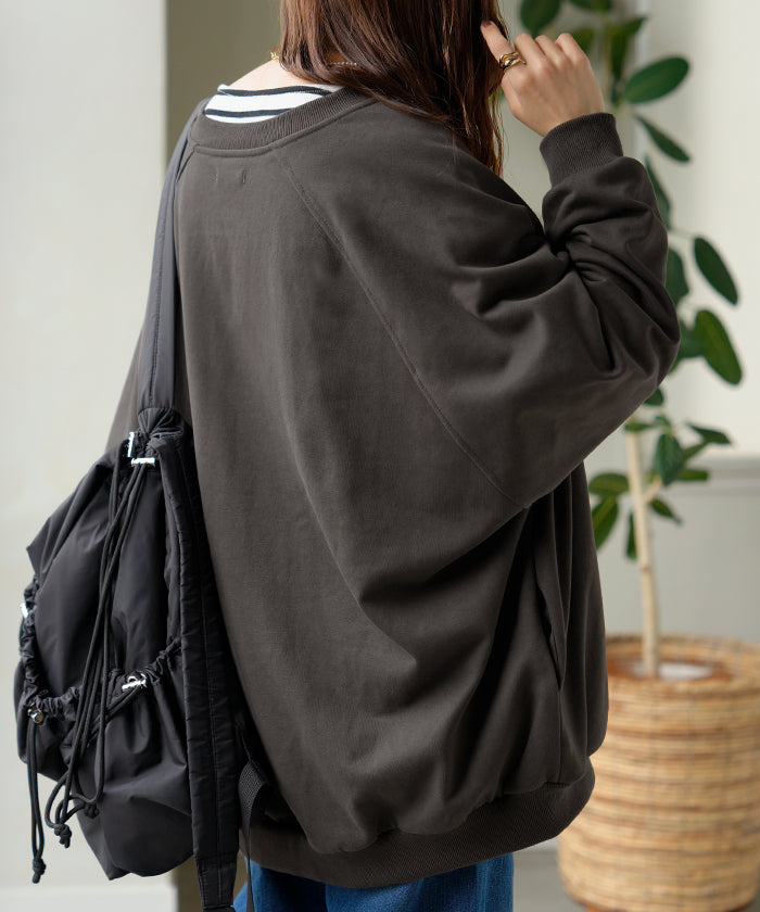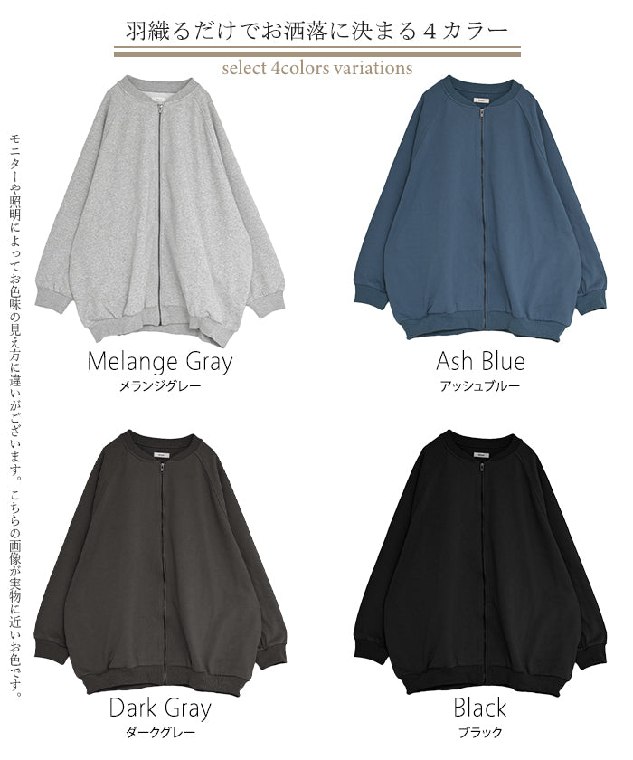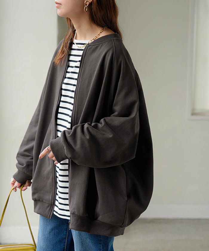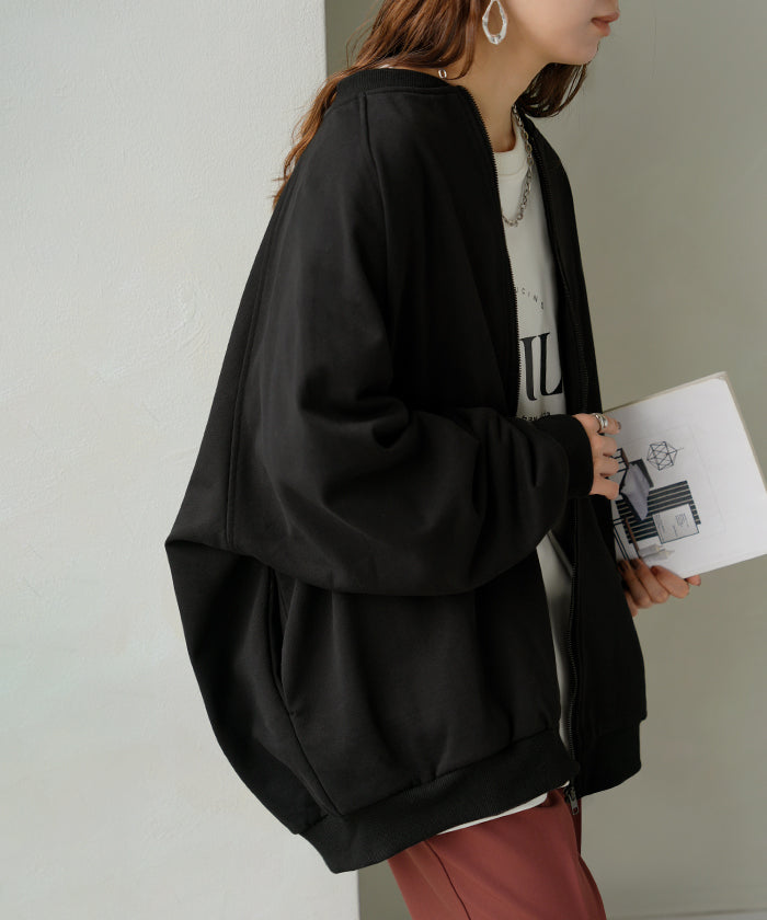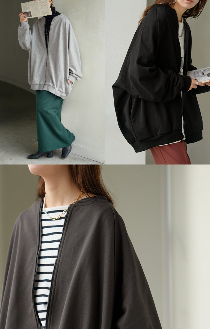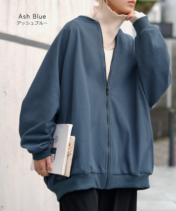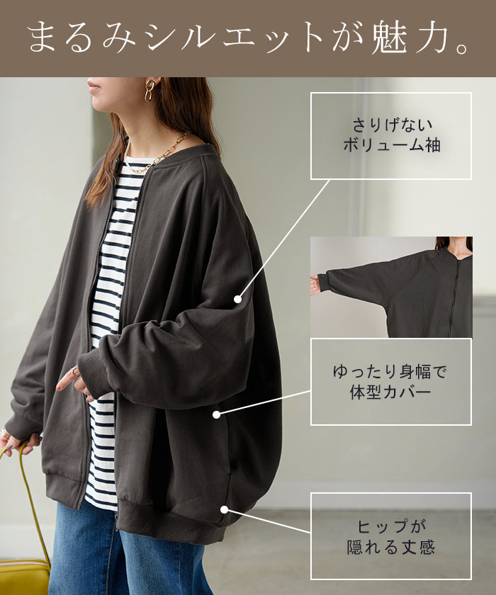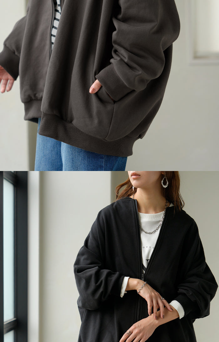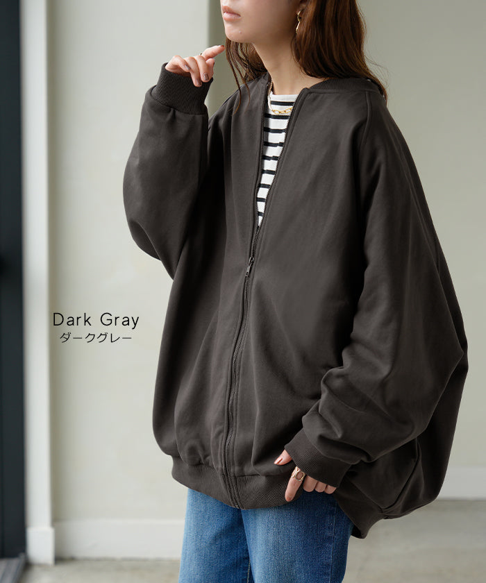 2025AW新作 アウター ブルゾン レディース ロング ジャケット ジャンパー ボリュームスリーブ MA-1 裏毛 リブ ドルマン ラグランスリーブ 羽織 耐久性 速乾 ライトアウター オーバーサイズ 大きいサイズ 体型カバー お尻が隠れる MA1 おしゃれ 黒 グレー 秋 冬 HUG.U