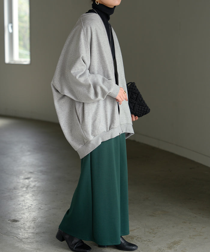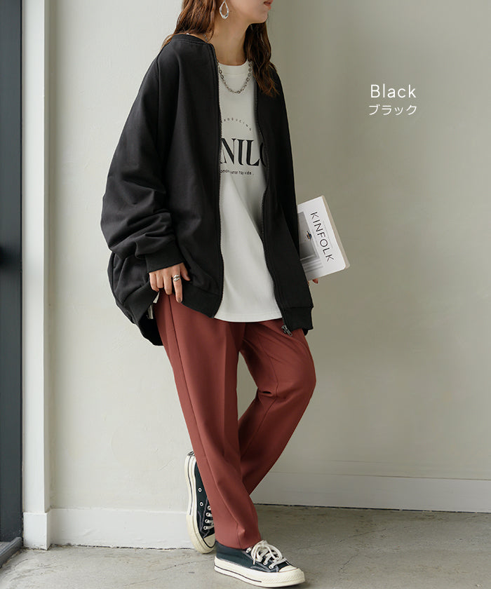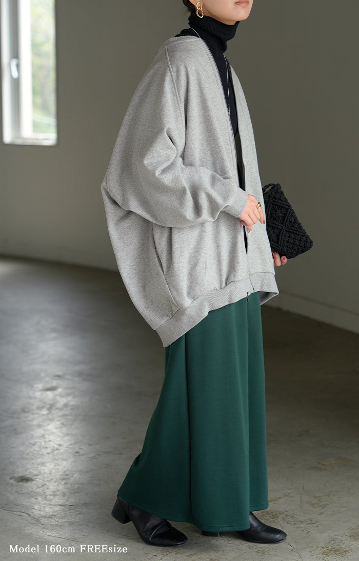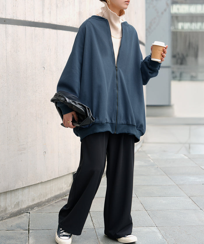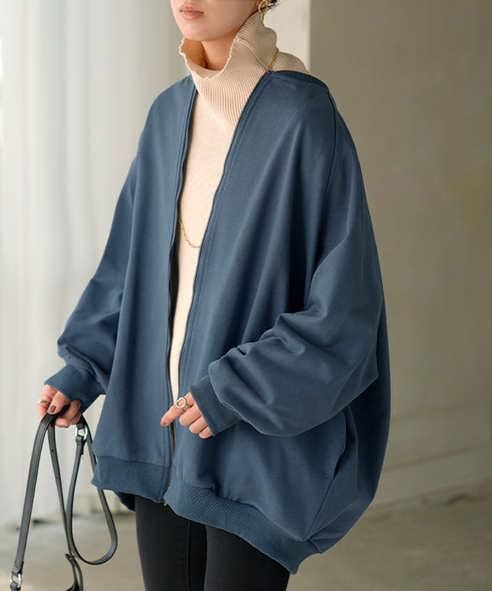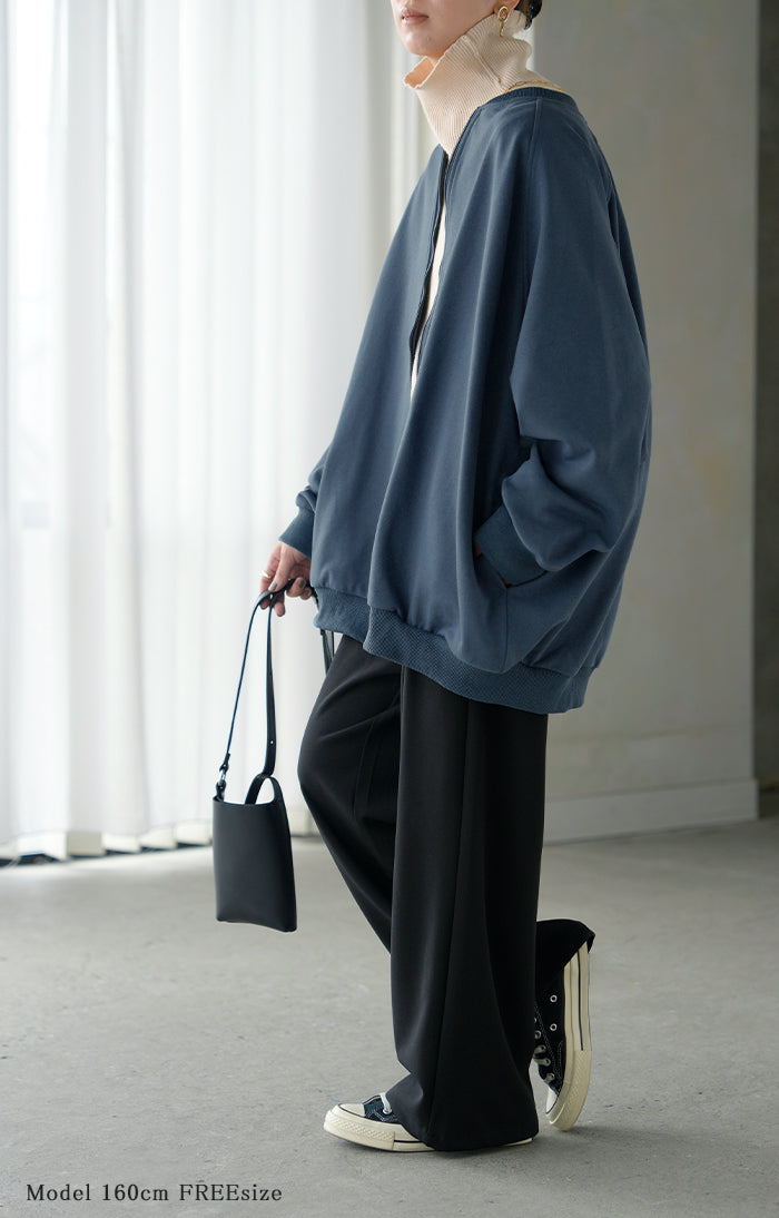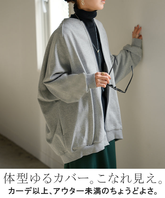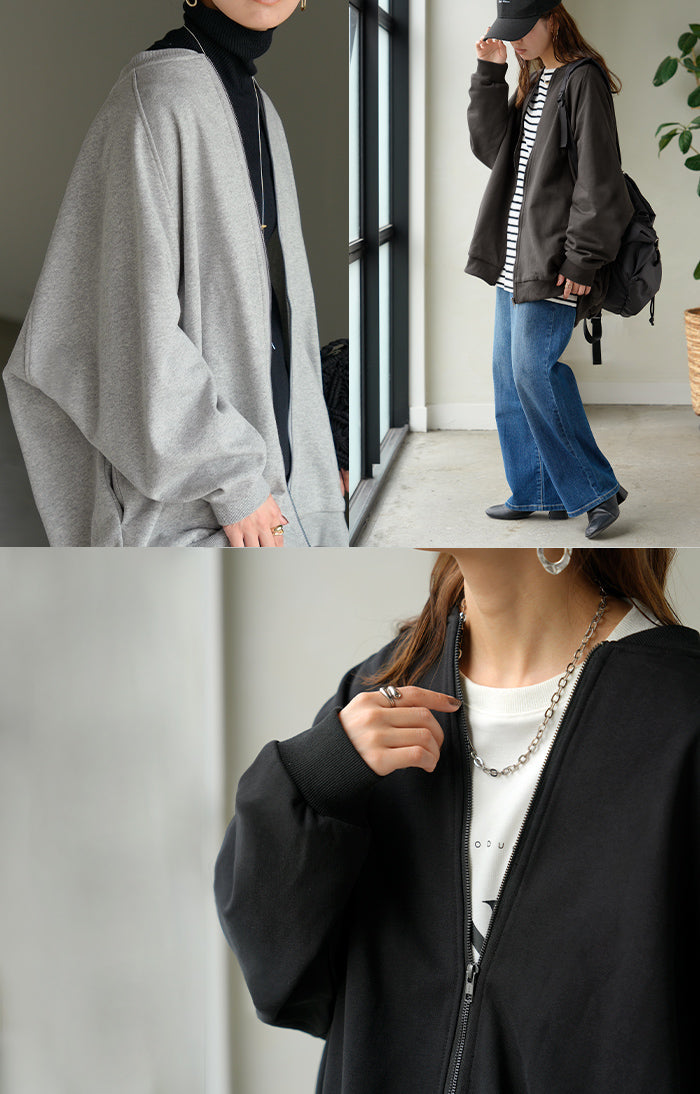 2025AW新作 アウター ブルゾン レディース ロング ジャケット ジャンパー ボリュームスリーブ MA-1 裏毛 リブ ドルマン ラグランスリーブ 羽織 耐久性 速乾 ライトアウター オーバーサイズ 大きいサイズ 体型カバー お尻が隠れる MA1 おしゃれ 黒 グレー 秋 冬 HUG.U