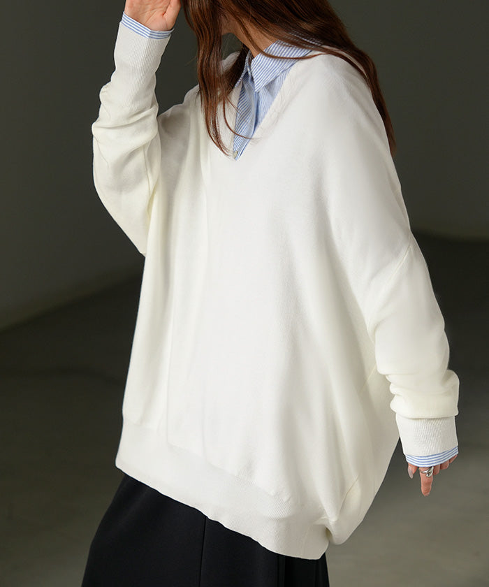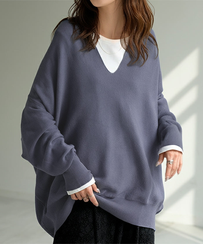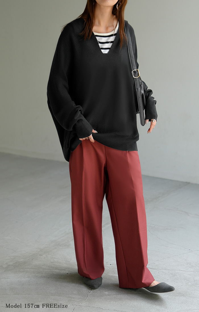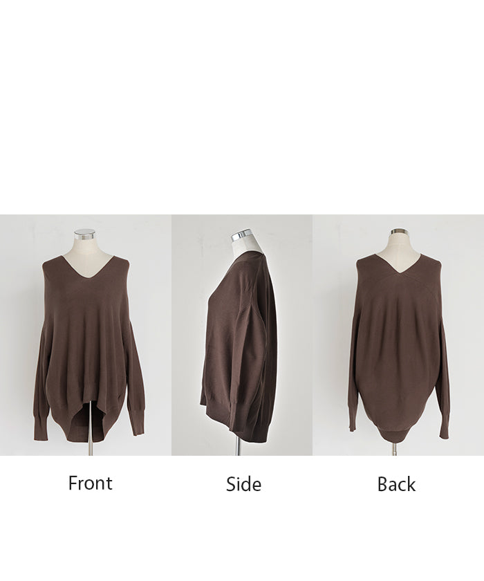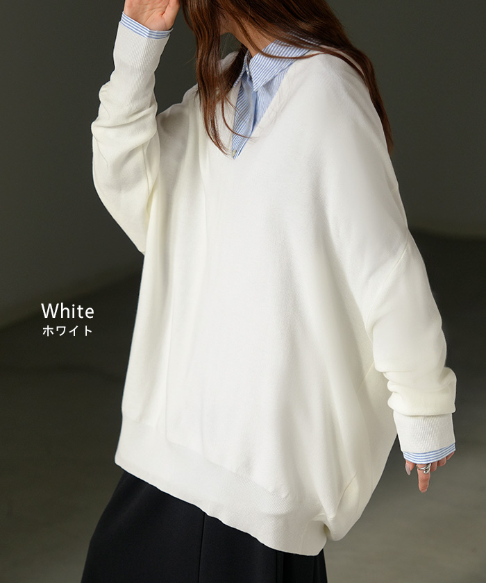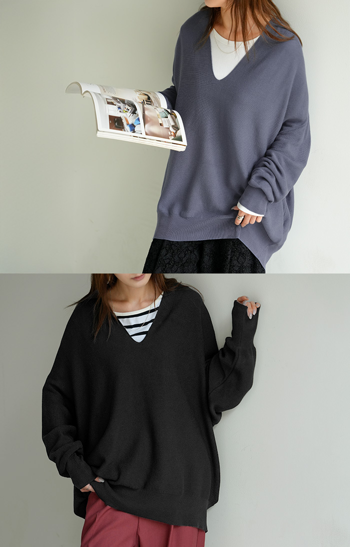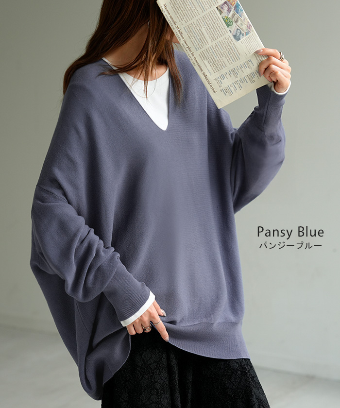 2025AW新作 ニット Vネック コクーン ■10月中旬入荷 レディース トップス ロング セーター オーバー プルオーバー 長袖 長い レイヤード リブ チュニック ドルマン チクチクしない ゆったり 薄い 柔らかい 体型カバー 大きいサイズ お尻が隠れる カジュアル 黒 白 秋 冬 HUG.U