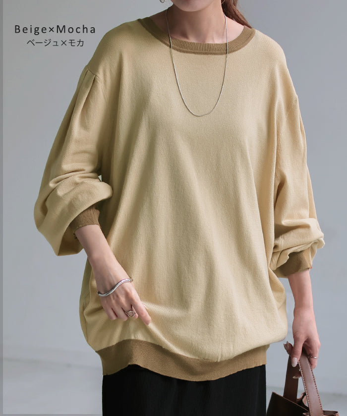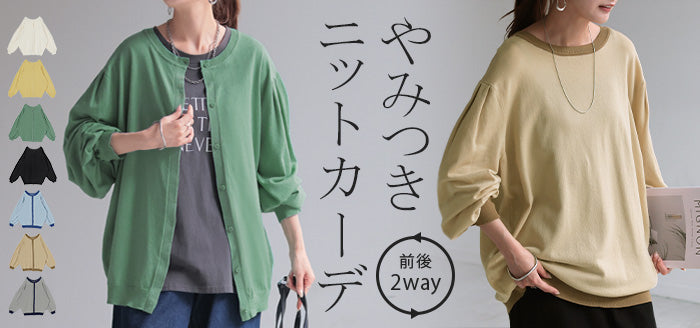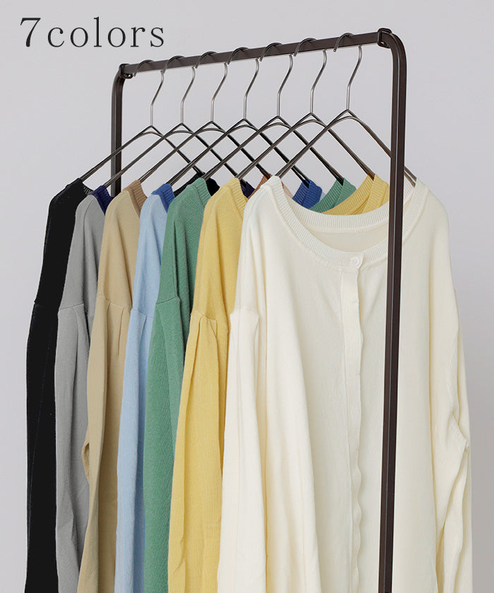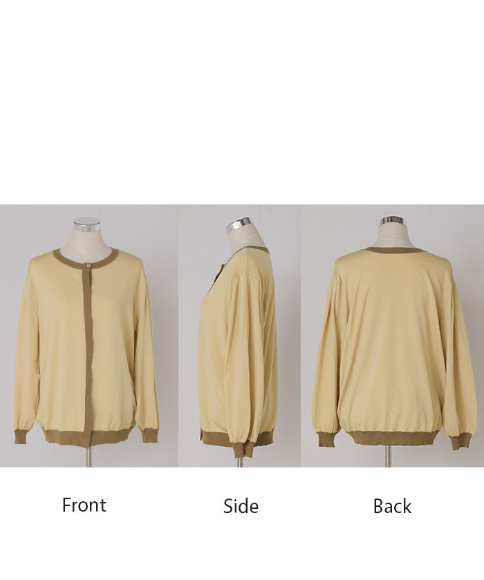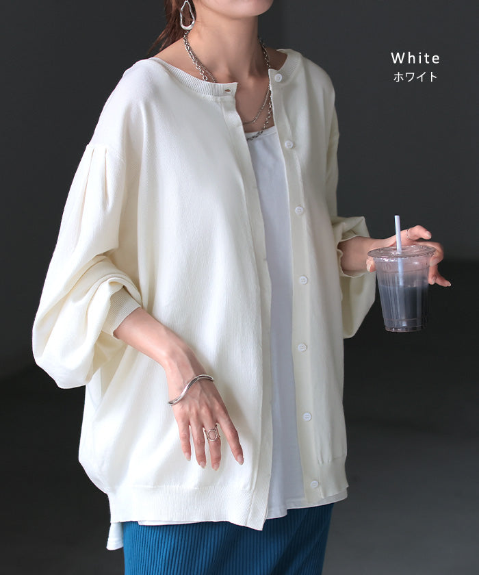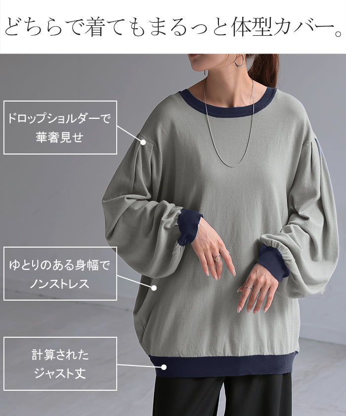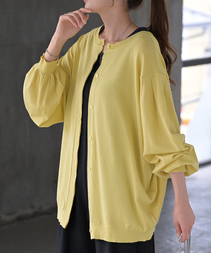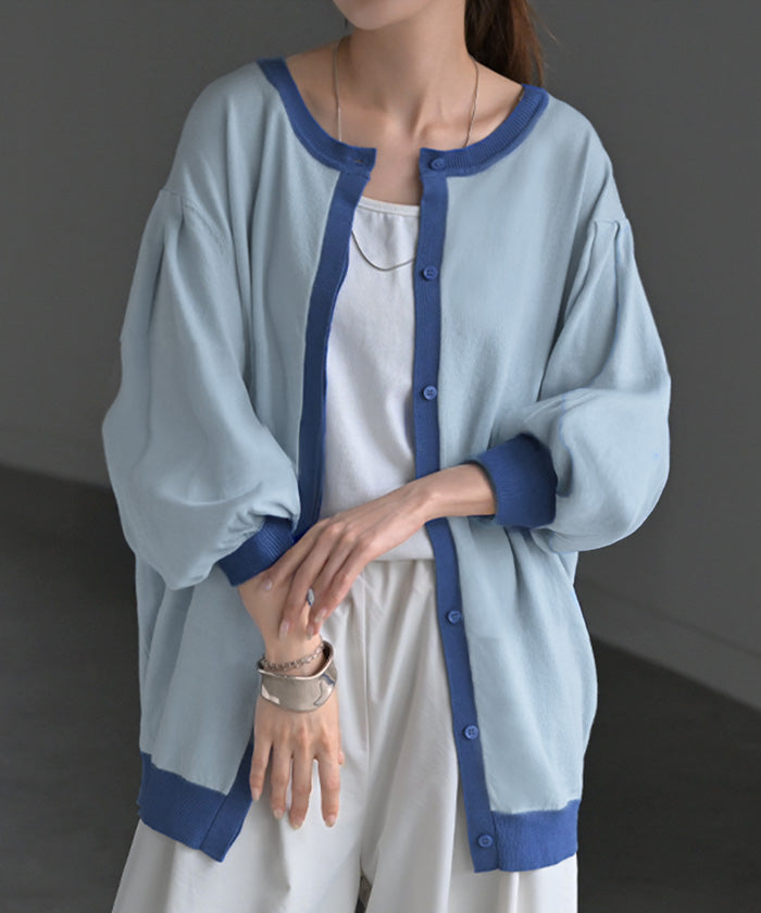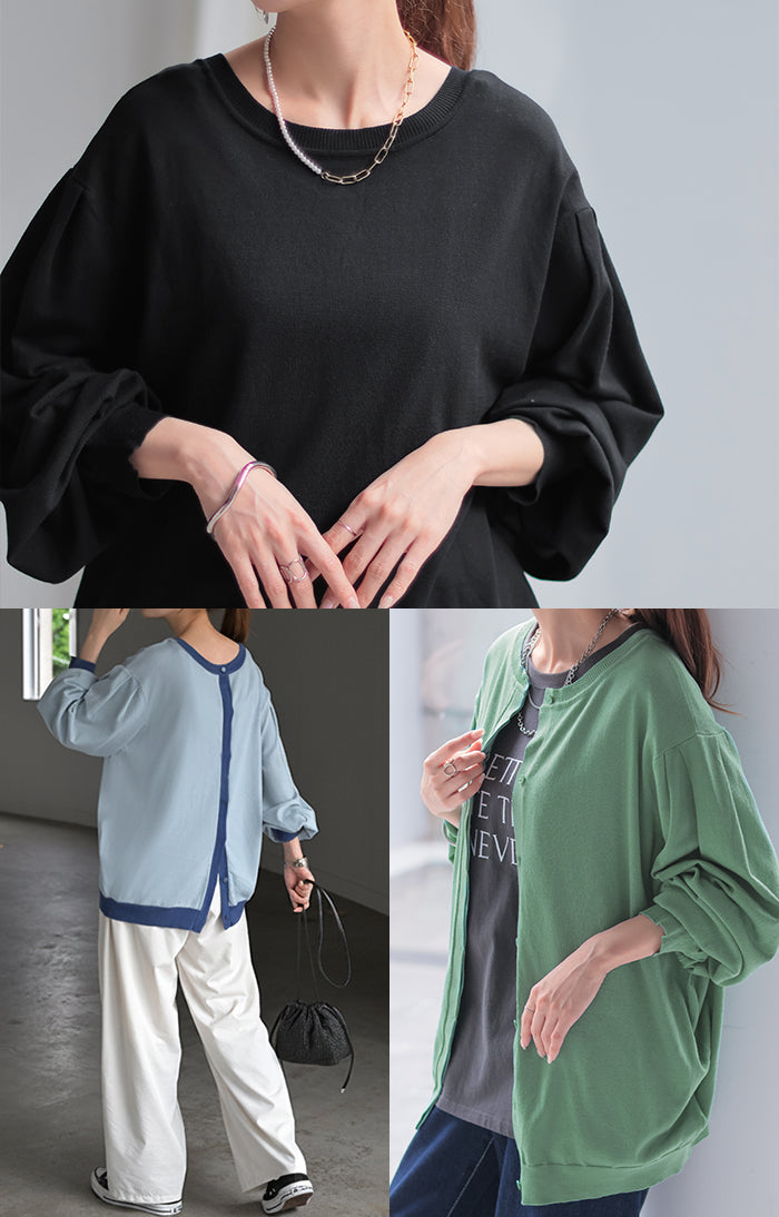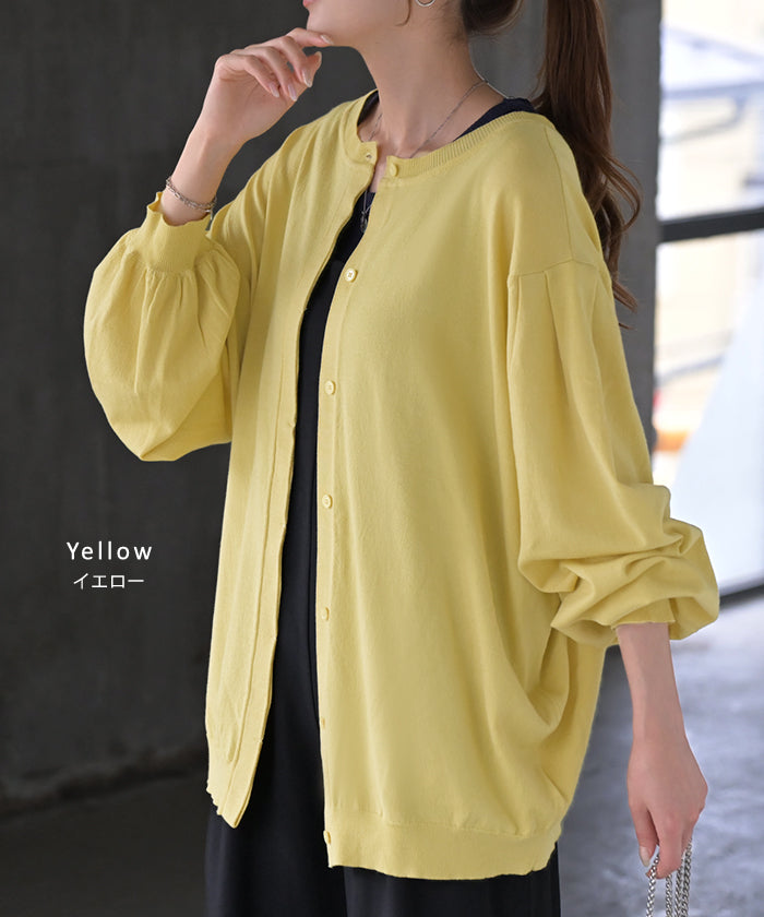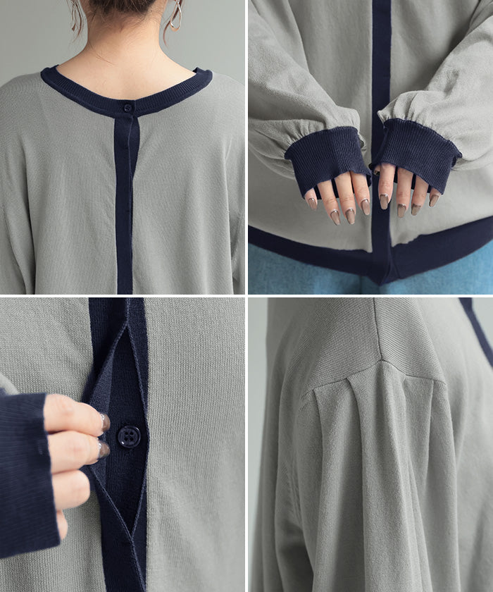 ニット カーディガン 前後2way レディース カーデ トップス セーター オーバー プルオーバー ニットカーディガン ロング 長袖 長い ボリュームスリーブ クルーネック リブ ゆったり 体型カバー 大きいサイズ お尻が隠れる 配色 無地 黒 春 夏 HUG.U