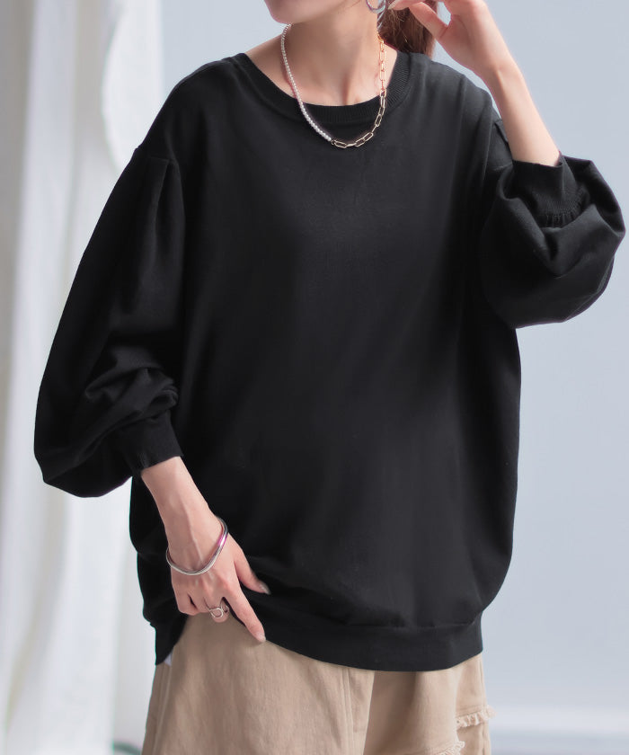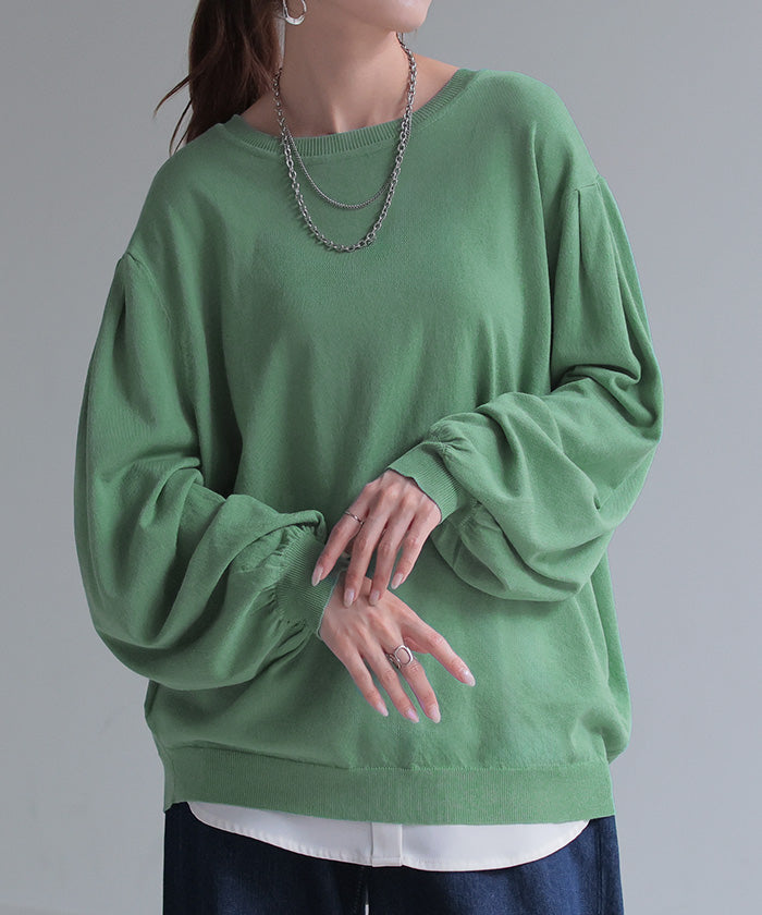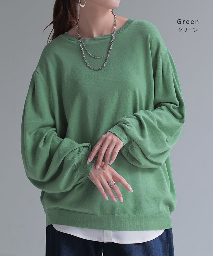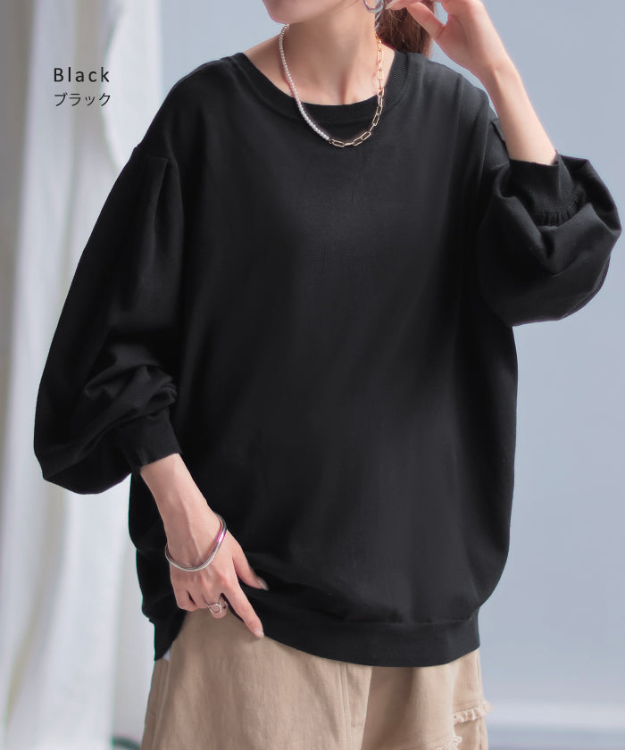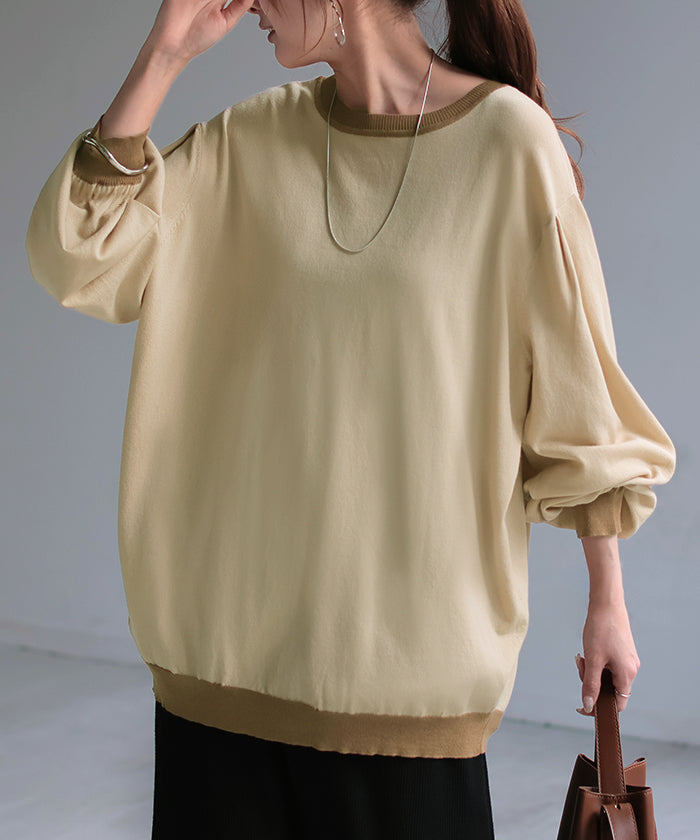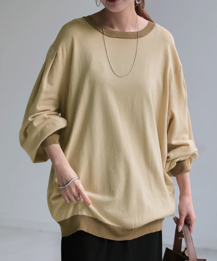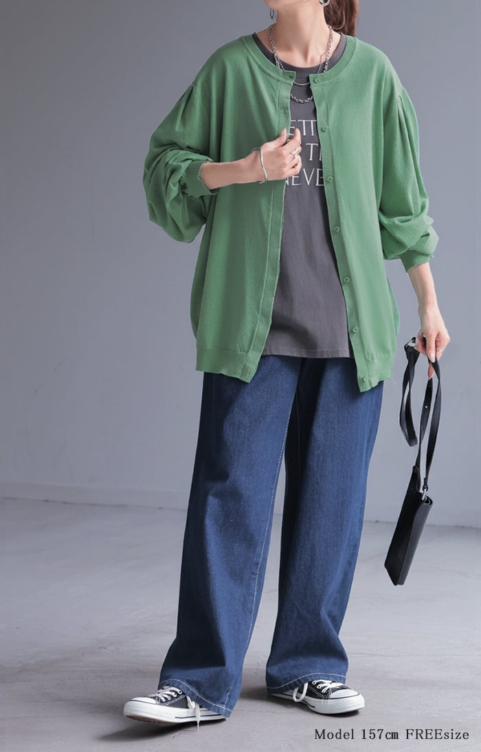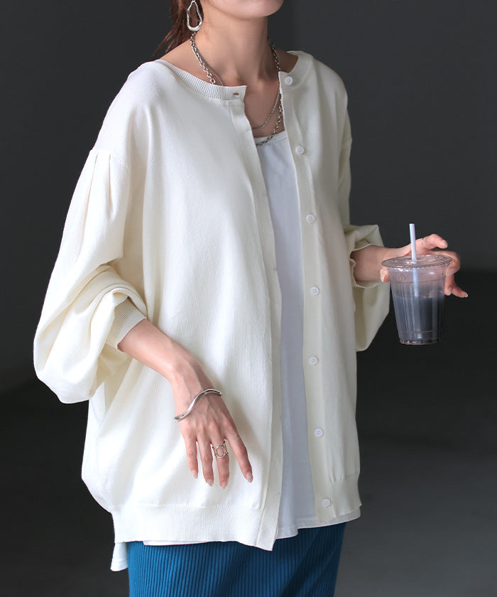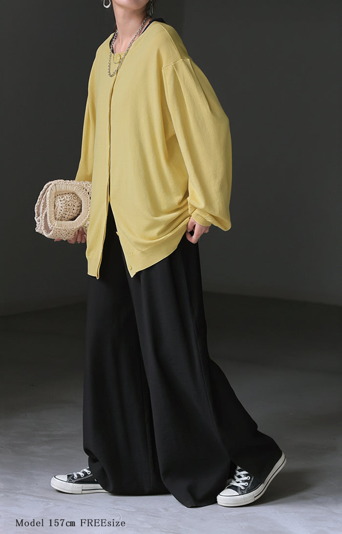 ニット カーディガン 前後2way レディース カーデ トップス セーター オーバー プルオーバー ニットカーディガン ロング 長袖 長い ボリュームスリーブ クルーネック リブ ゆったり 体型カバー 大きいサイズ お尻が隠れる 配色 無地 黒 春 夏 HUG.U