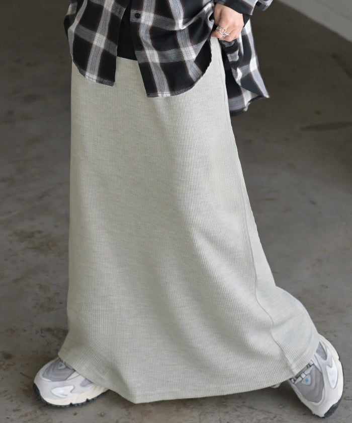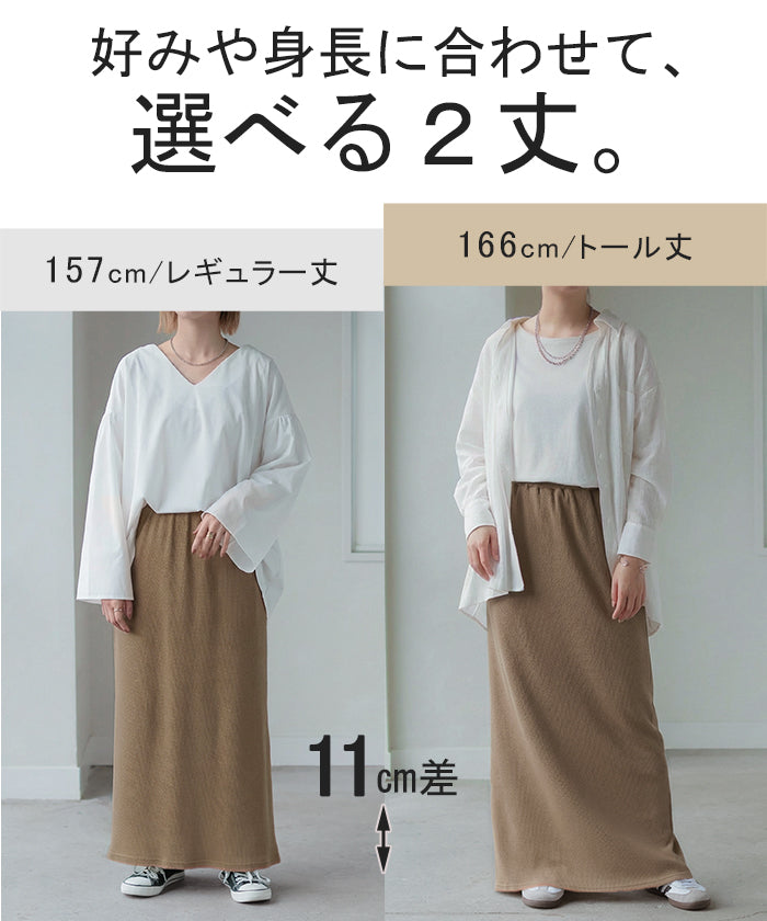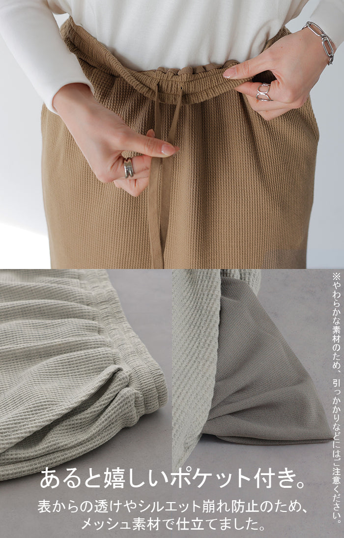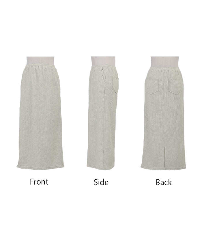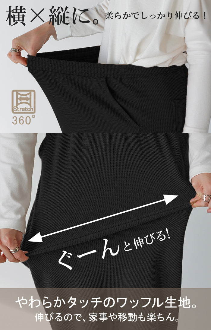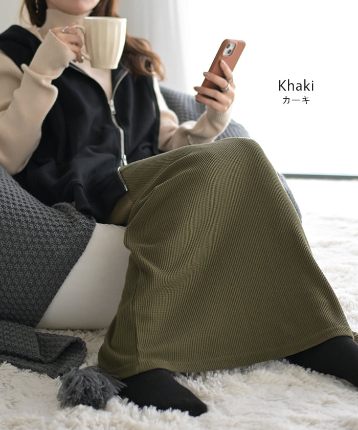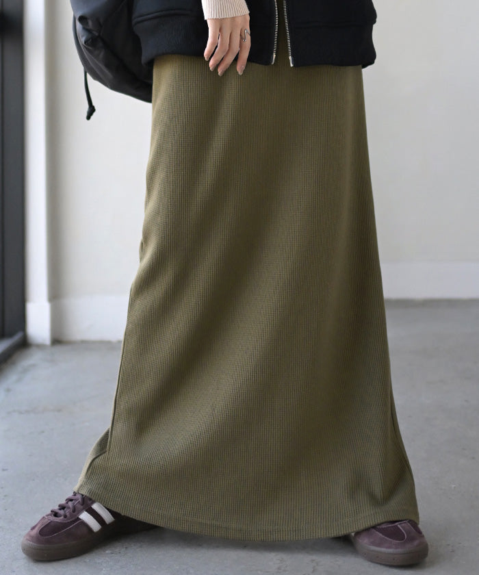 スカート ワッフル タイトスカート レディース ボトムス 無地 ナロースカート ストレッチ ウエストゴム 着痩せ Iライン ロング ロングスカート 裏地 マキシ 綿 混 別売り セットアップ 可 体型カバー ポケット 大きいサイズ 白 黒 春 夏 HUG.U