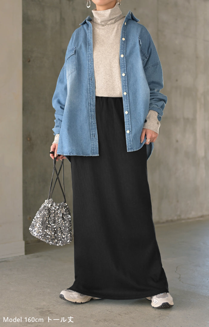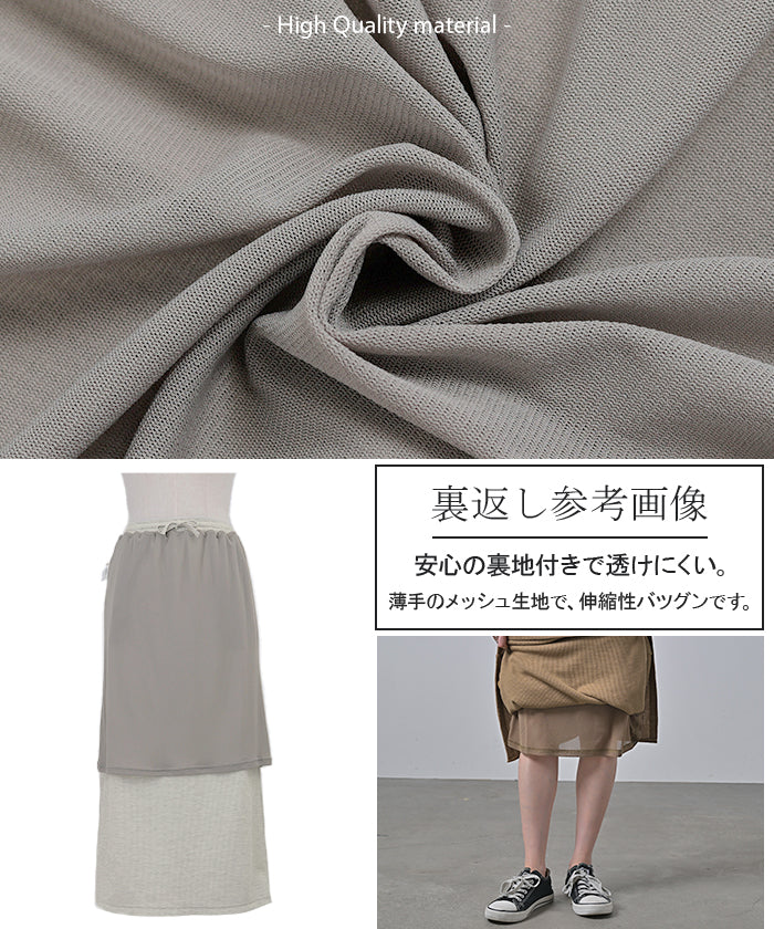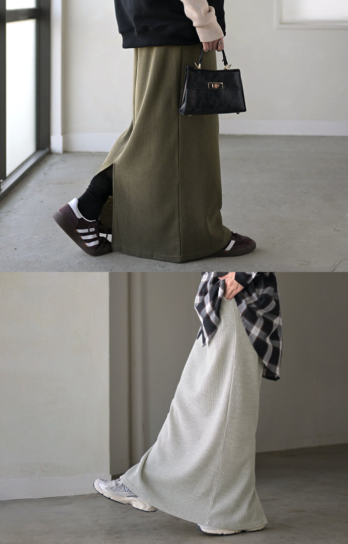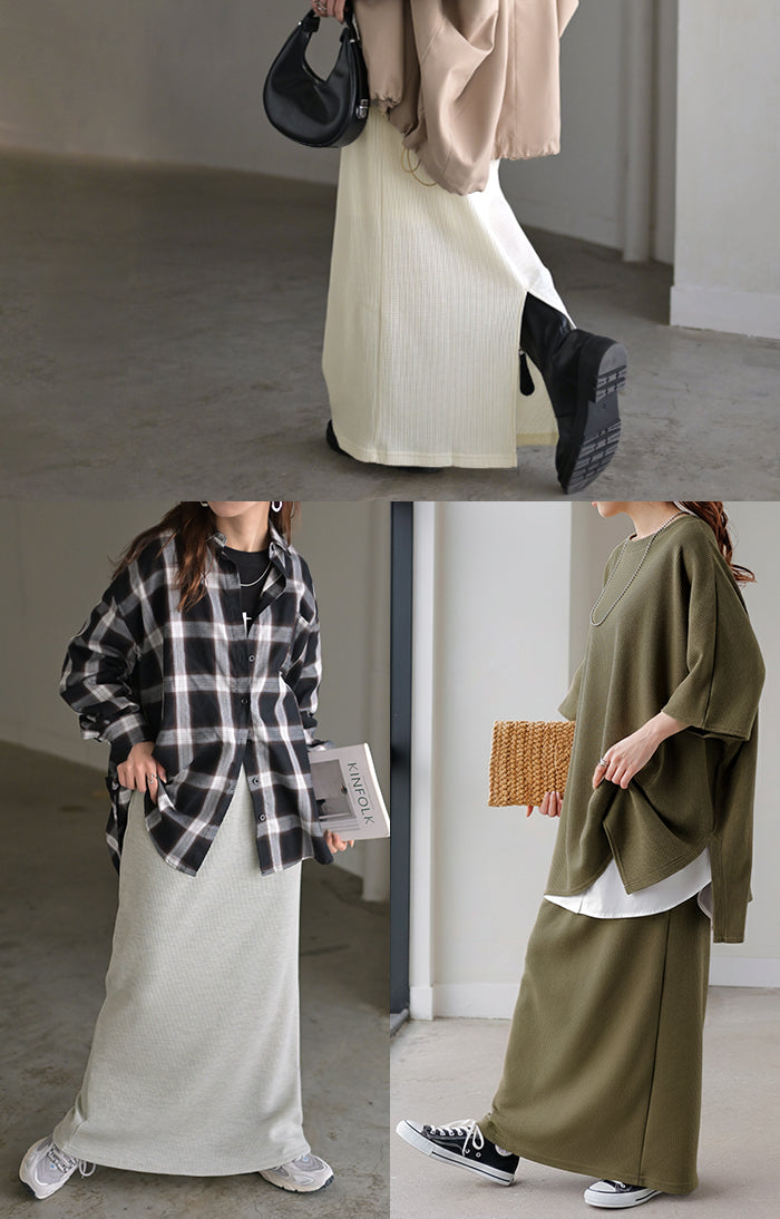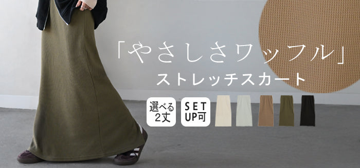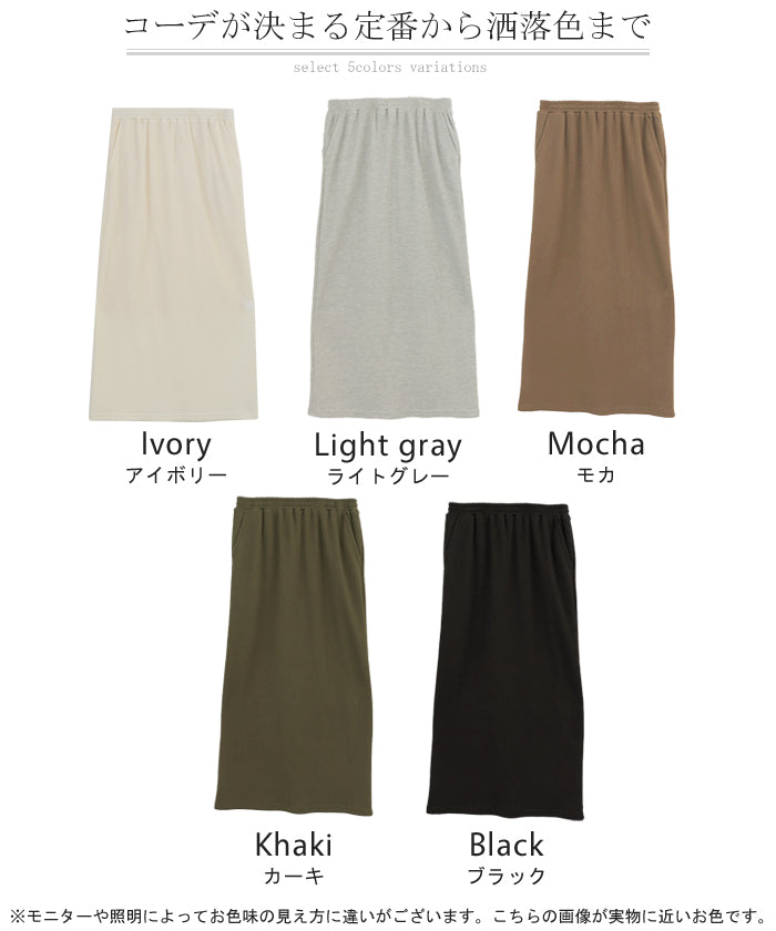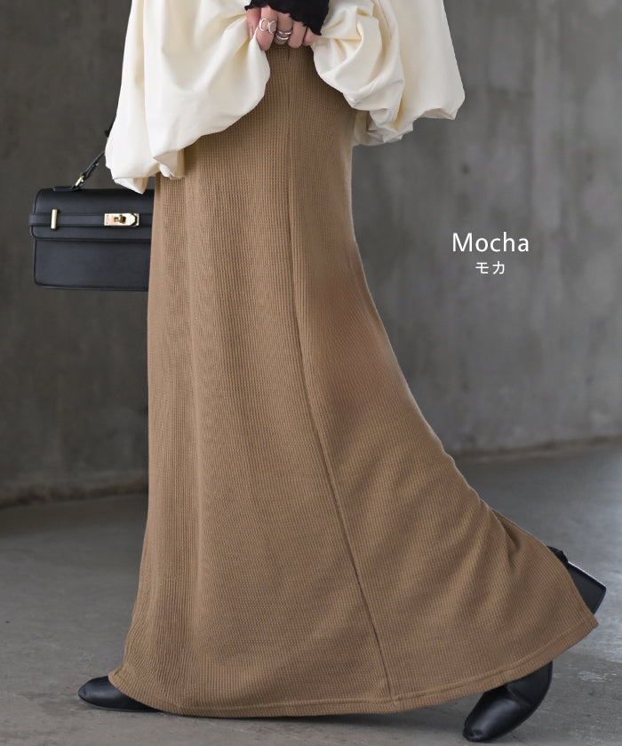 スカート ワッフル タイトスカート レディース ボトムス 無地 ナロースカート ストレッチ ウエストゴム 着痩せ Iライン ロング ロングスカート 裏地 マキシ 綿 混 別売り セットアップ 可 体型カバー ポケット 大きいサイズ 白 黒 春 夏 HUG.U