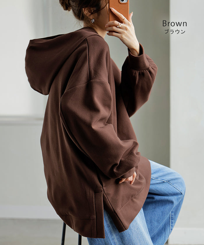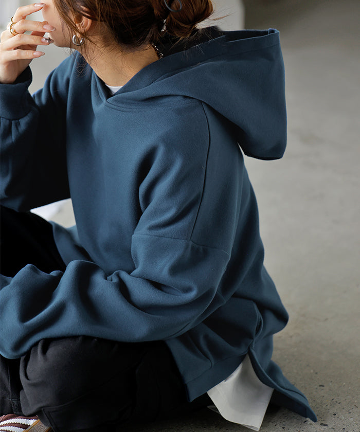 2025AW新作 スウェット " 特暖 " 裏シャギー パーカー レディース トップス ロング トレーナー フード フーディー プルオーバー 無地 長袖 ボリュームスリーブ リブ オーバーサイズ ゆったり 体型カバー 大きいサイズ お尻が隠れる カジュアル 黒 ネイビー 秋 冬 HUG.U
