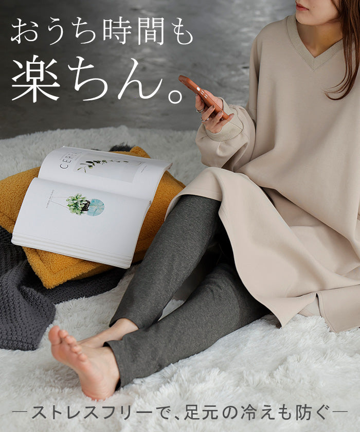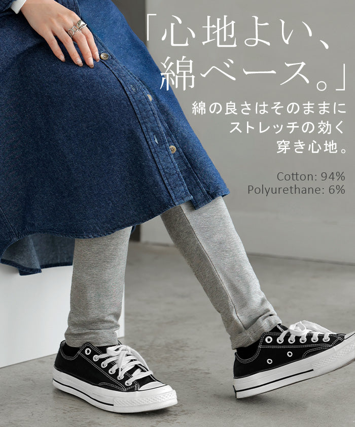 2025AW新作 レギンス スパッツ タイツ ロング インナー パンツ レディース レギパン カットソー ボトムス カットソーパンツ レイヤード 重ね 長い 10分丈 綿 混 ゴム ストレッチ 無地 下着 オールシーズン リラックス 楽ちん 大きいサイズ 黒 グレー 秋 冬 HUG.U メール便