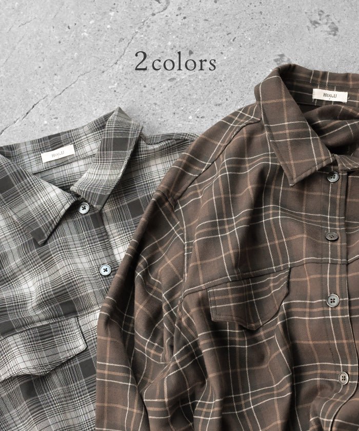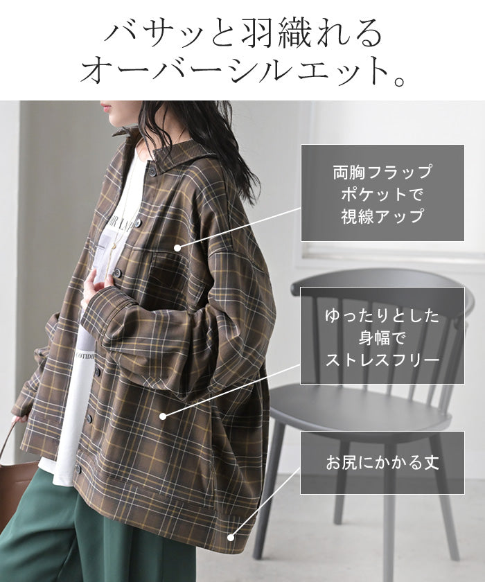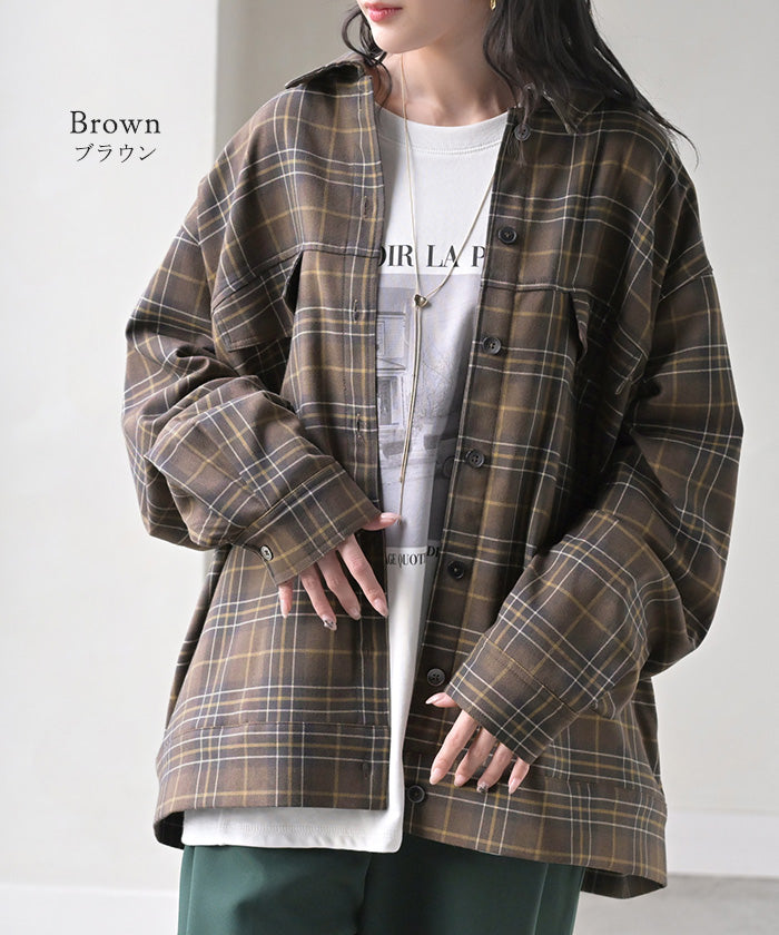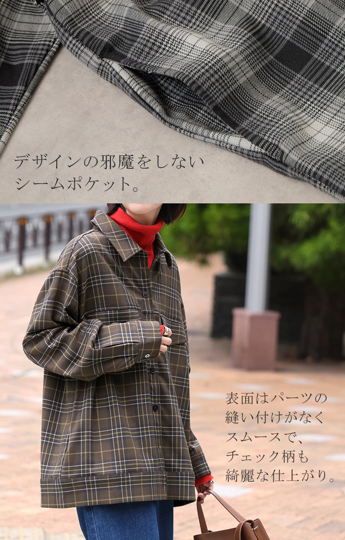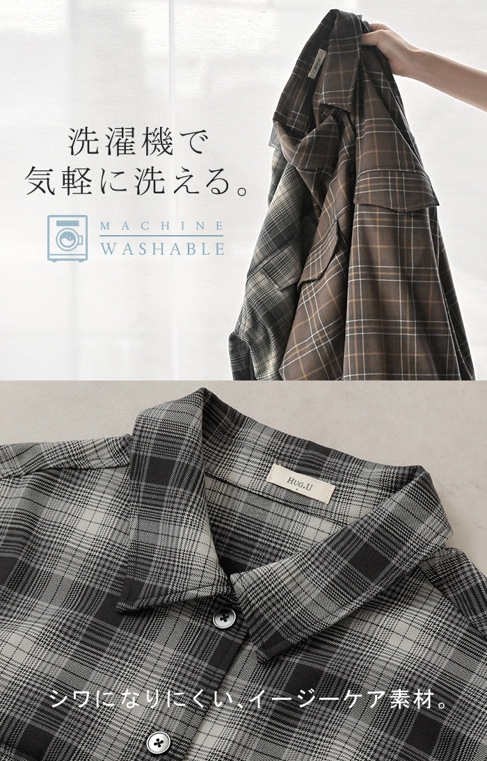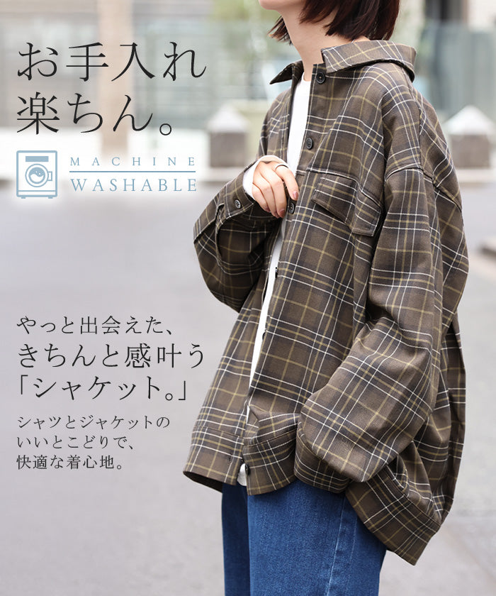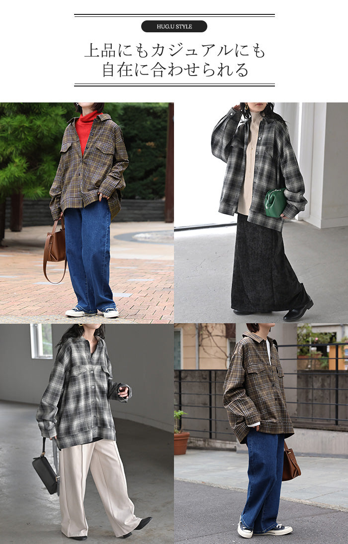 2025AW新作 シャケット シャツ ジャケット ■12月上旬入荷 チェックシャツ レディース トップス ロング ロングシャツ アウター チュニック 長袖 チェック 柄 羽織 ライトアウター きれいめ ゆったり オーバーサイズ 大きいサイズ 体型カバー お尻が隠れる メンズライク 黒 秋 冬 HUG.U