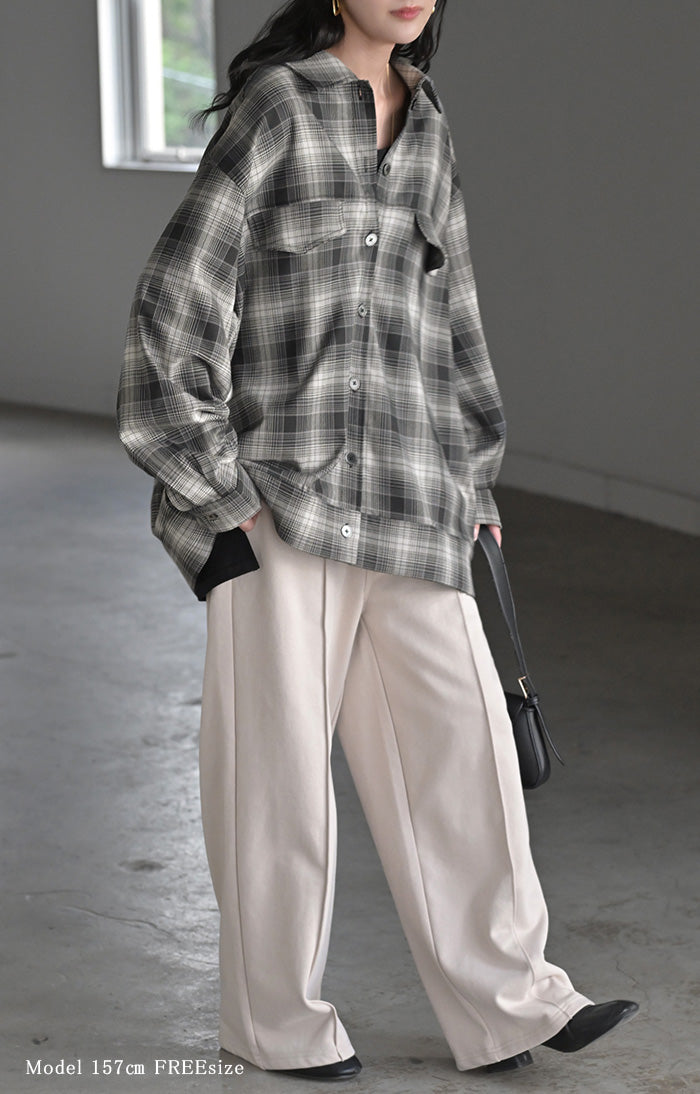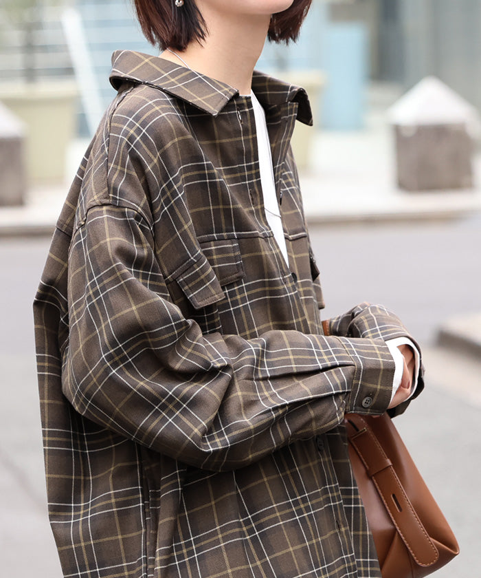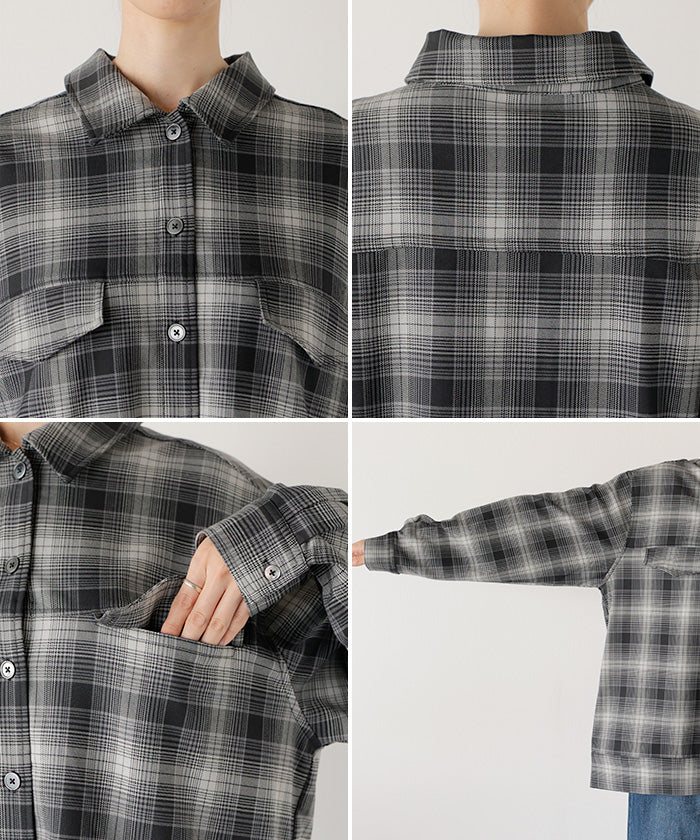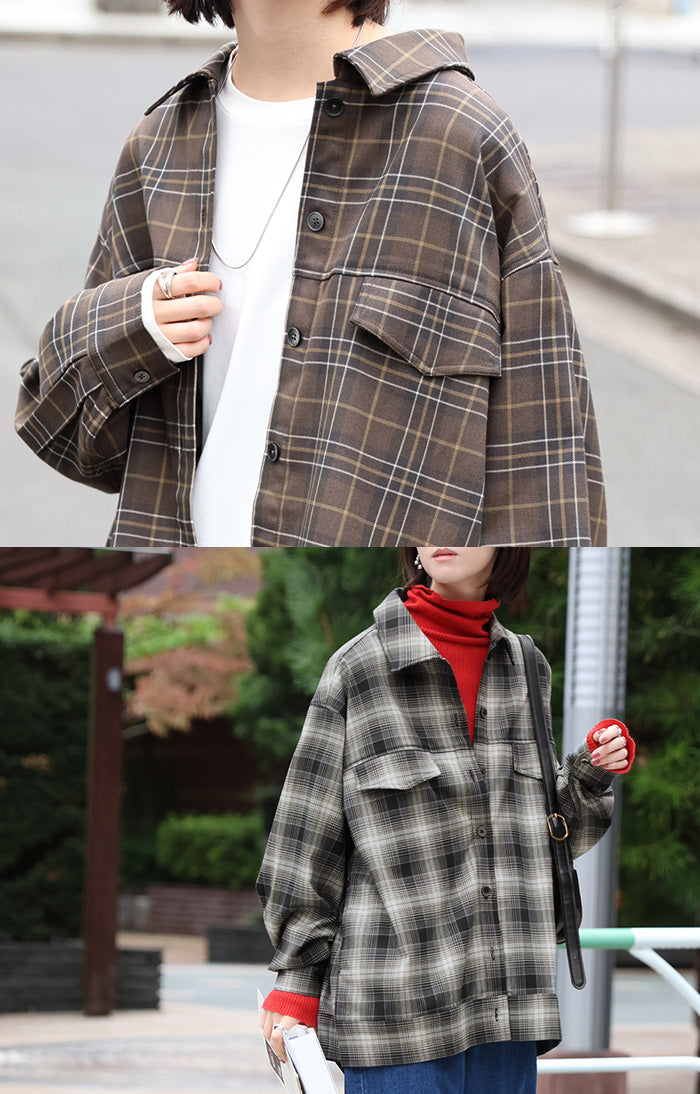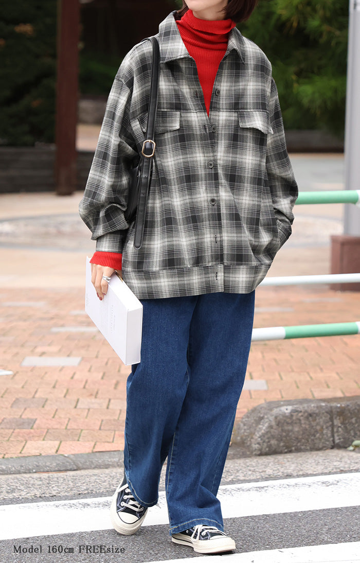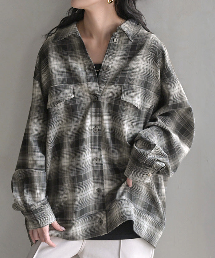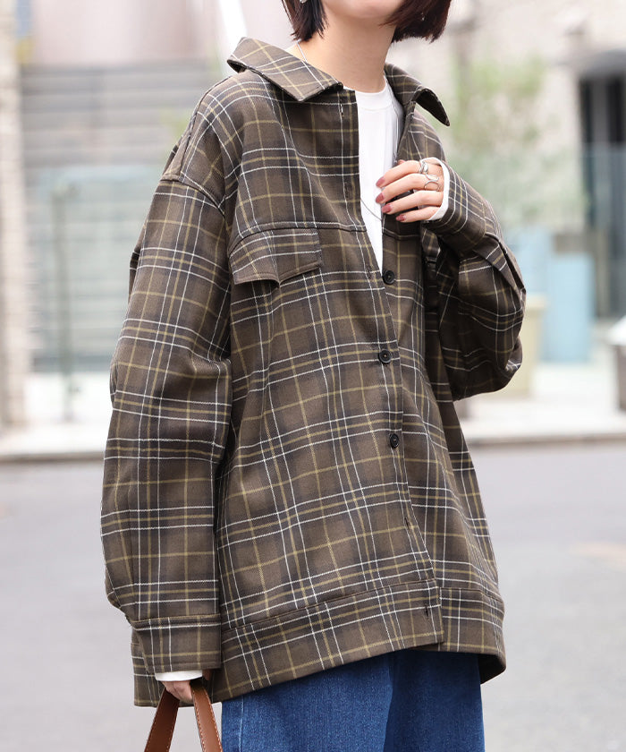 2025AW新作 シャケット シャツ ジャケット ■12月上旬入荷 チェックシャツ レディース トップス ロング ロングシャツ アウター チュニック 長袖 チェック 柄 羽織 ライトアウター きれいめ ゆったり オーバーサイズ 大きいサイズ 体型カバー お尻が隠れる メンズライク 黒 秋 冬 HUG.U