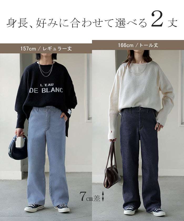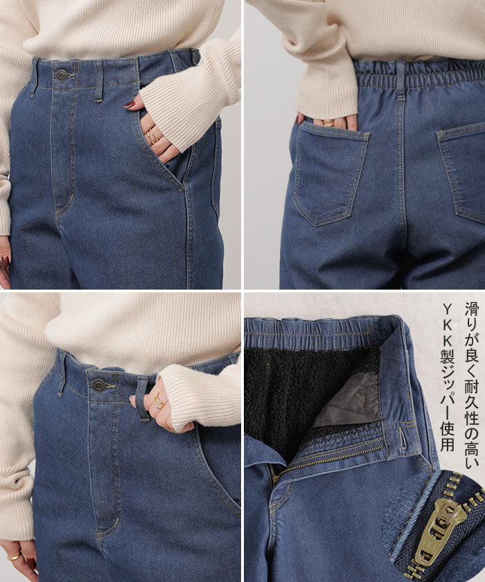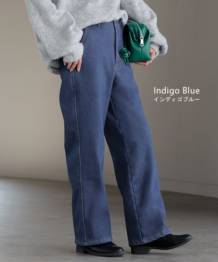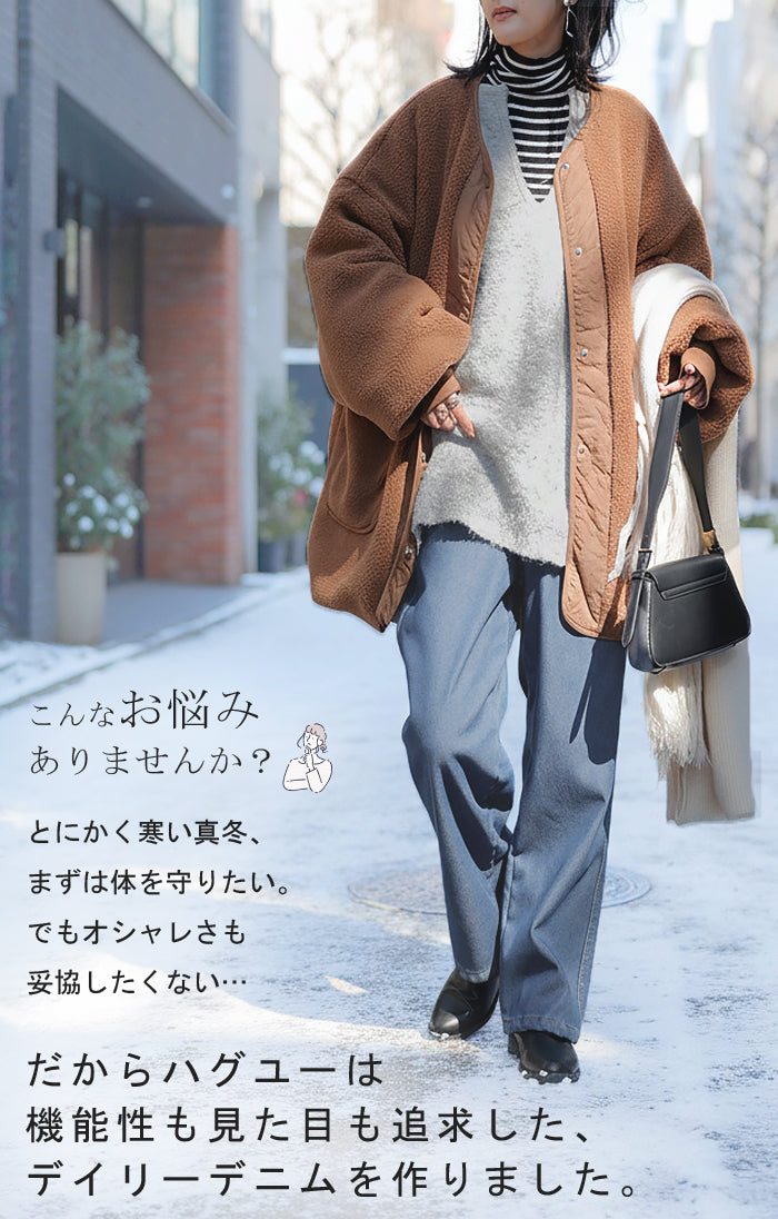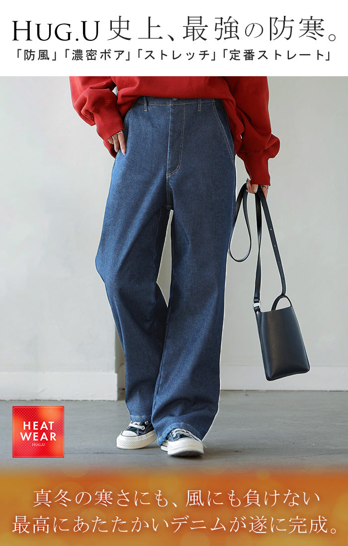 2025AW新作 パンツ デニム 裏ボア " 選べる 2丈 " レディース ロング デニムパンツ ジーンズ ジーパン 裏起毛 体型カバー ボトムス ボトム ストレート ズボン ゆったり あったか ハイウエスト 伸びる ウエストゴム 高身長 ストレッチ 美脚 大きいサイズ ブルー 青 HUG.U