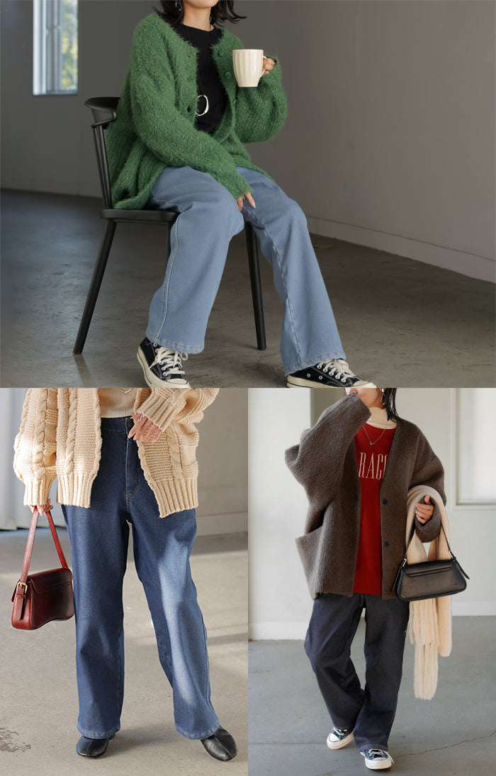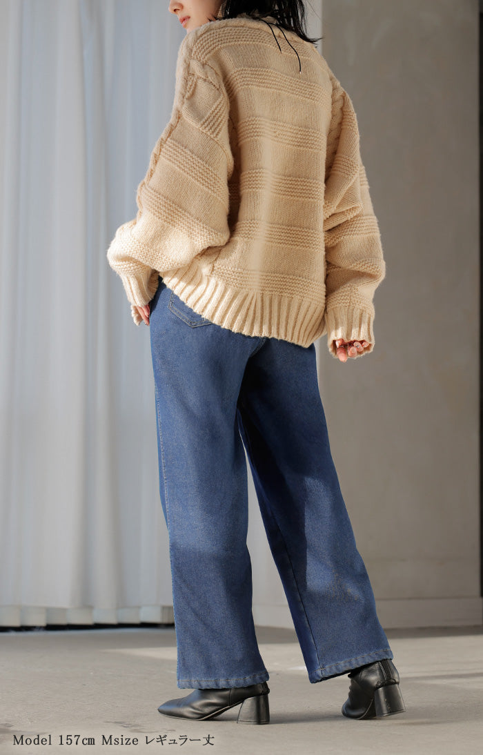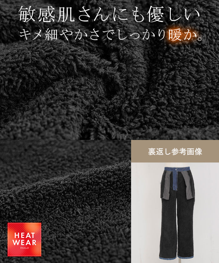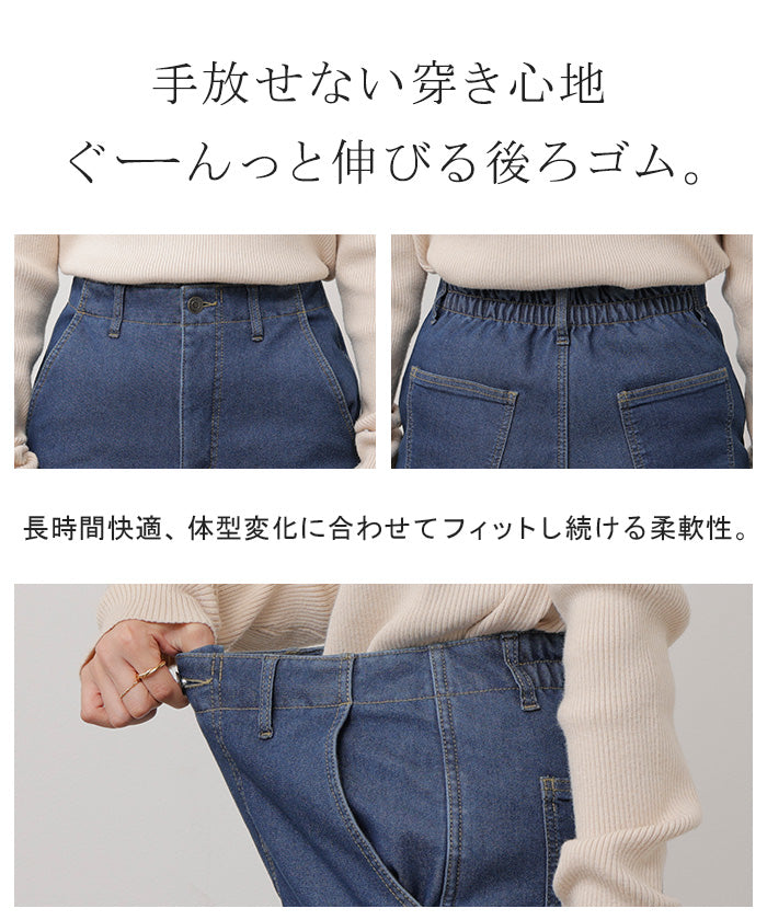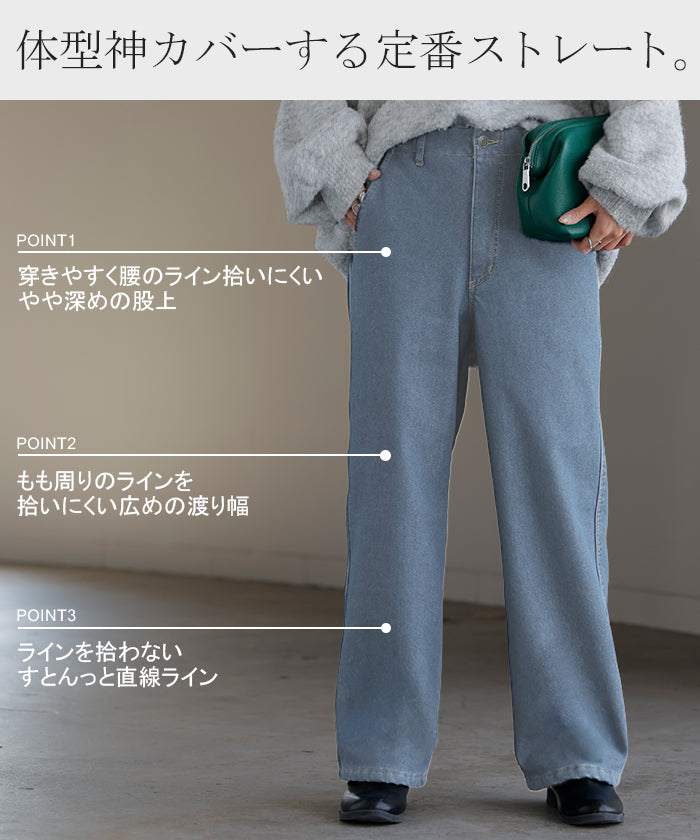 2025AW新作 パンツ デニム 裏ボア " 選べる 2丈 " レディース ロング デニムパンツ ジーンズ ジーパン 裏起毛 体型カバー ボトムス ボトム ストレート ズボン ゆったり あったか ハイウエスト 伸びる ウエストゴム 高身長 ストレッチ 美脚 大きいサイズ ブルー 青 HUG.U