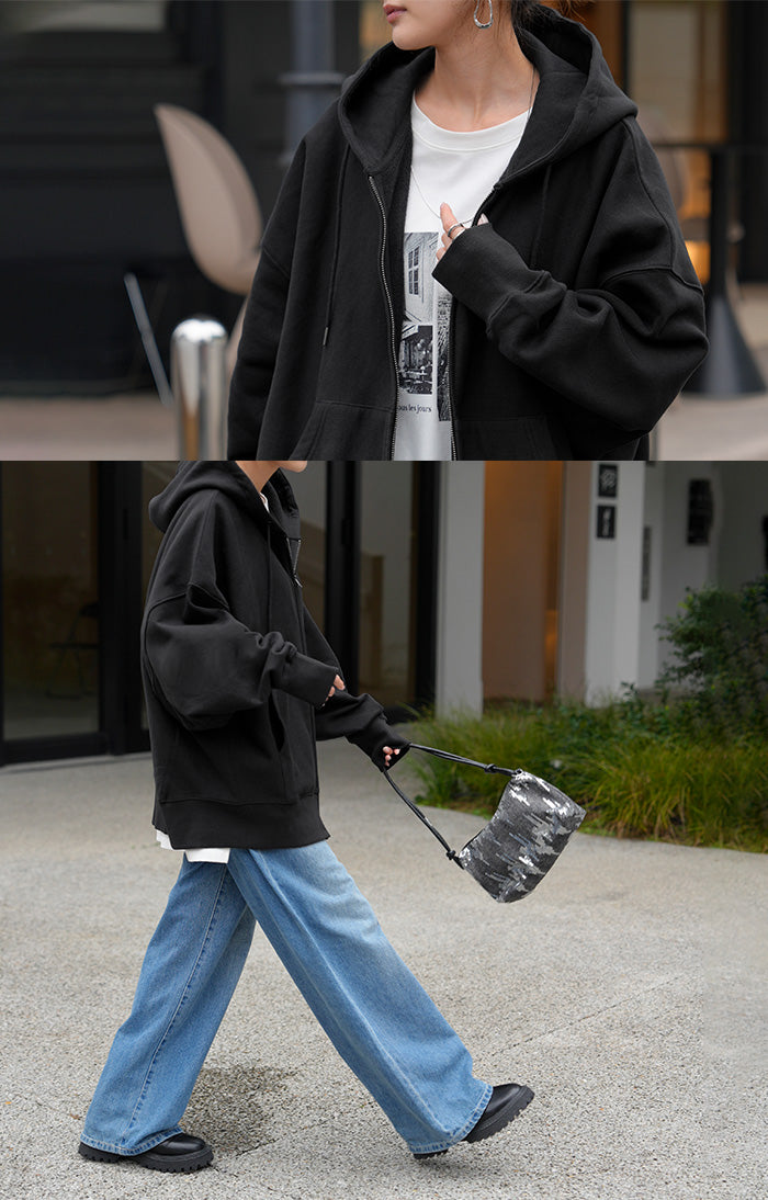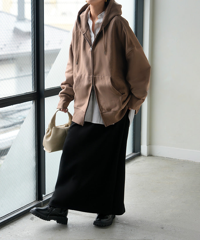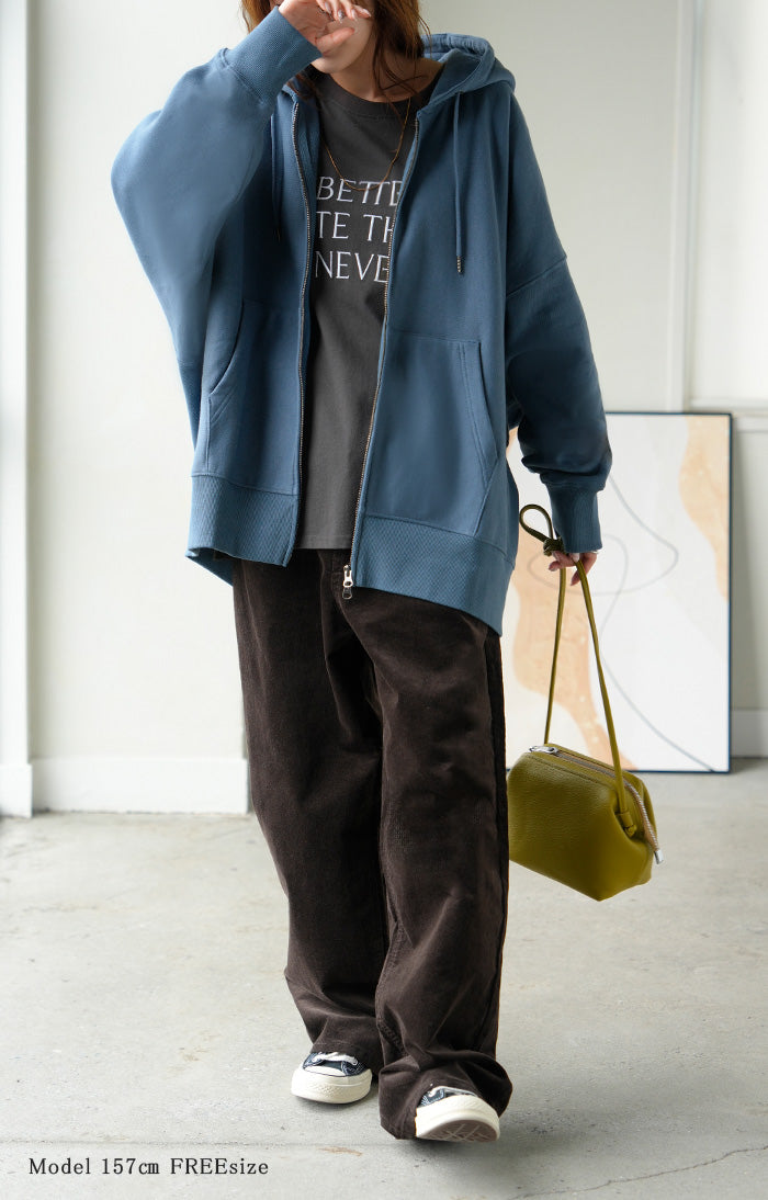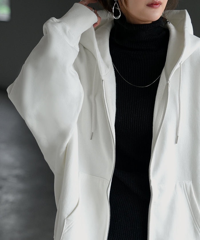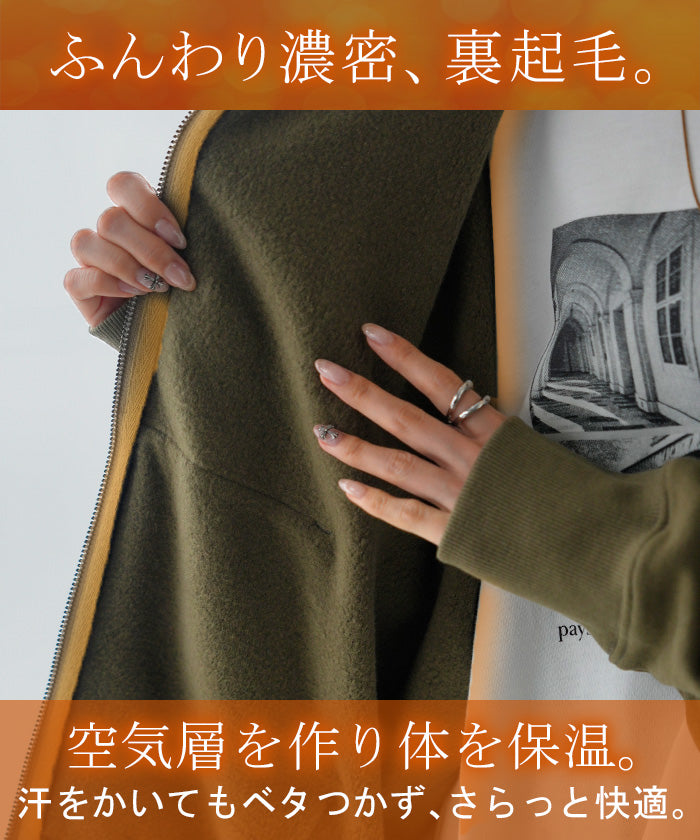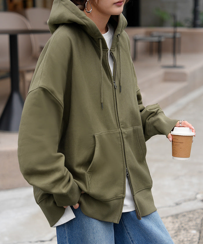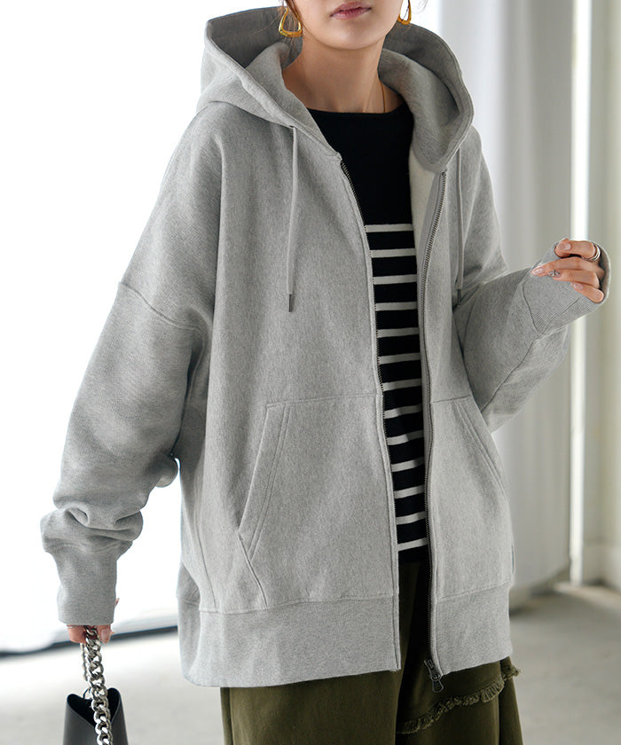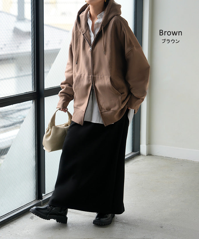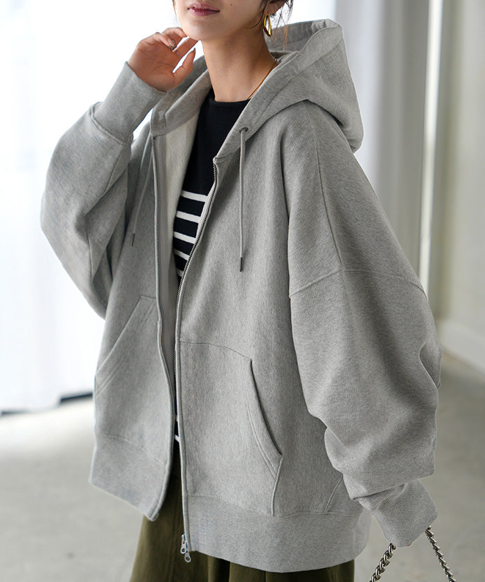 2025AW新作 パーカー スウェット 裏起毛 綿100 レディース アウター トップス トレーナー プルオーバー フード フーディー ドルマン ライトアウター 抗菌 消臭 ファスナー ビッグ ゆったり オーバーサイズ 羽織 体型カバー 大きいサイズ お尻が隠れる 黒 白 秋 冬 HUG.U