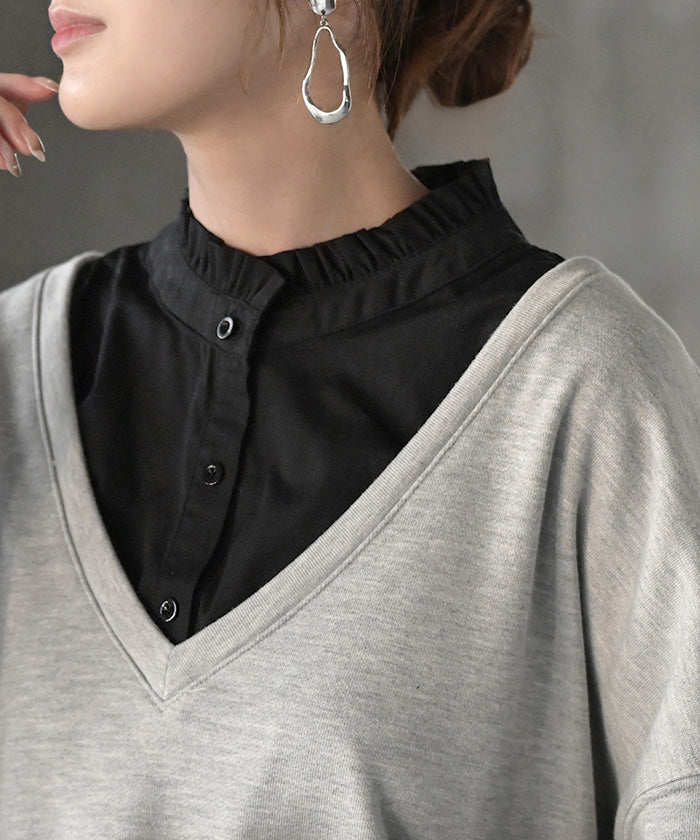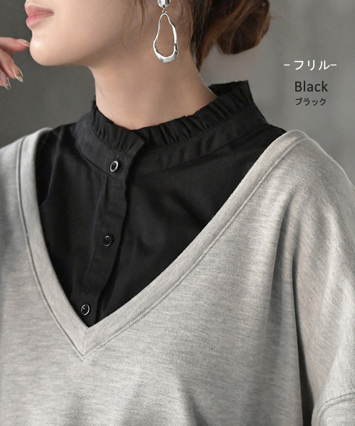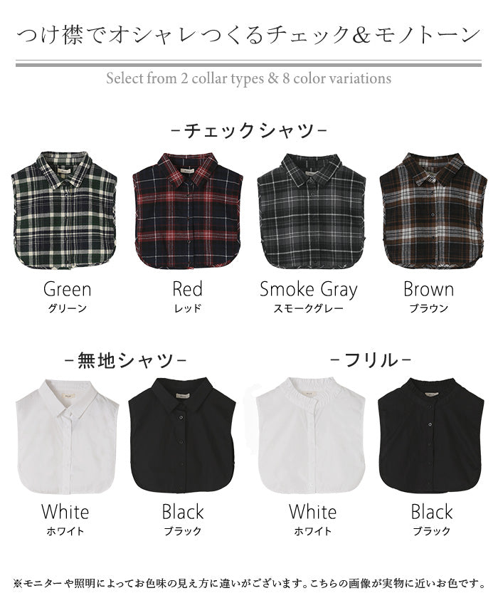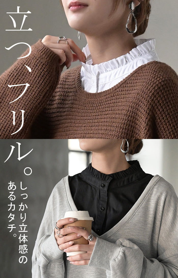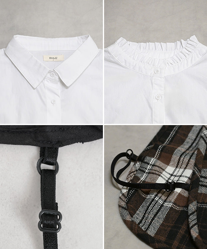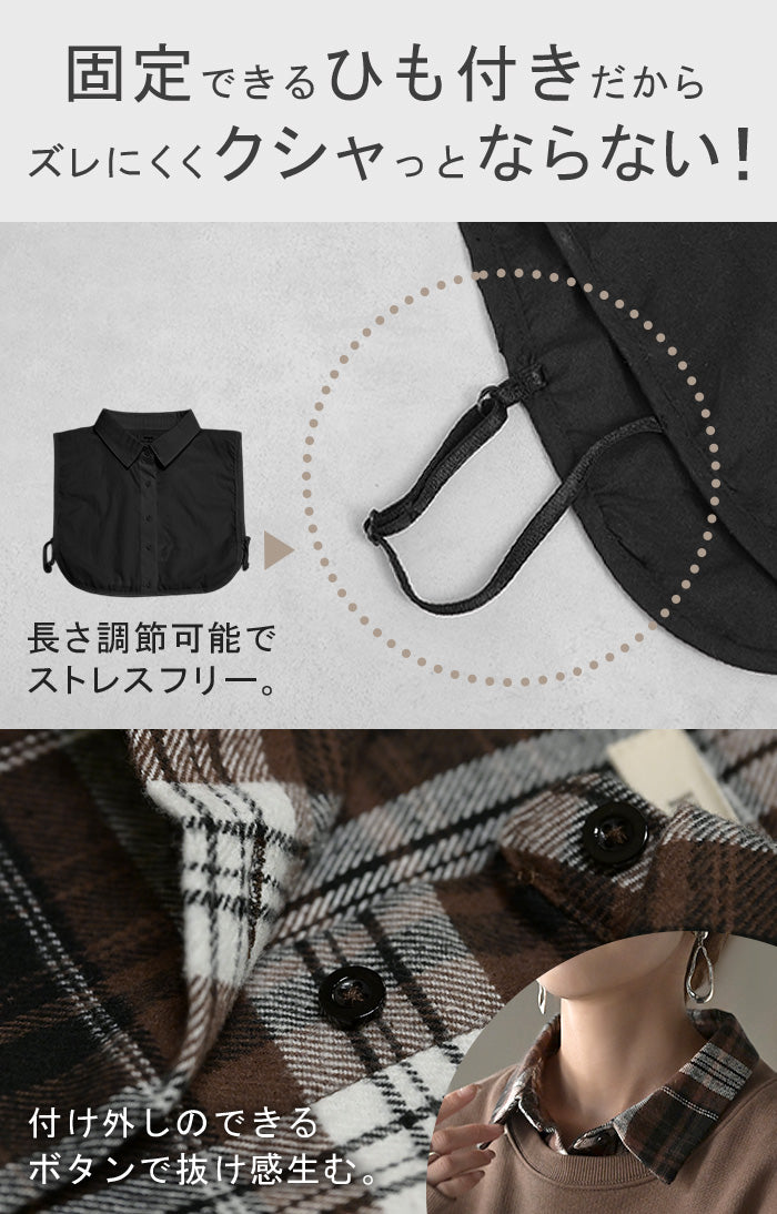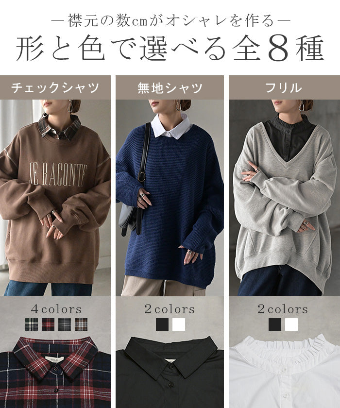 2025AW新作 “ ズレない ” つけ襟 レイヤード シャツ 風 ブラウス レディース フリル 重ね着 チェック 無地 チェックシャツ 付け襟 襟 綿100% ハイネック スタンドカラー ディッキー レイヤードトップス インナー 小物 シンプル 重ね着風 白 黒 レッド 秋 冬 HUG.U メール便