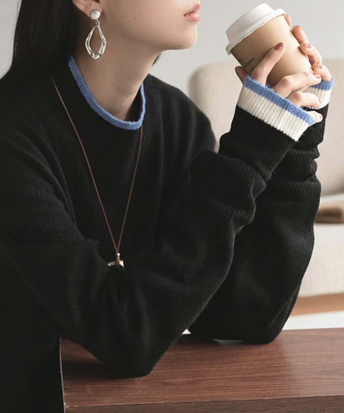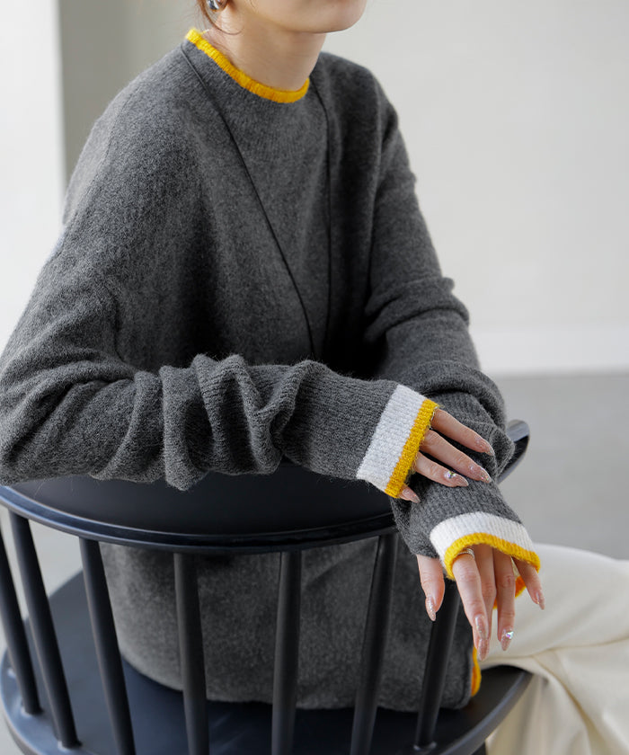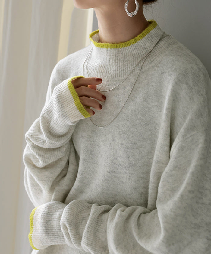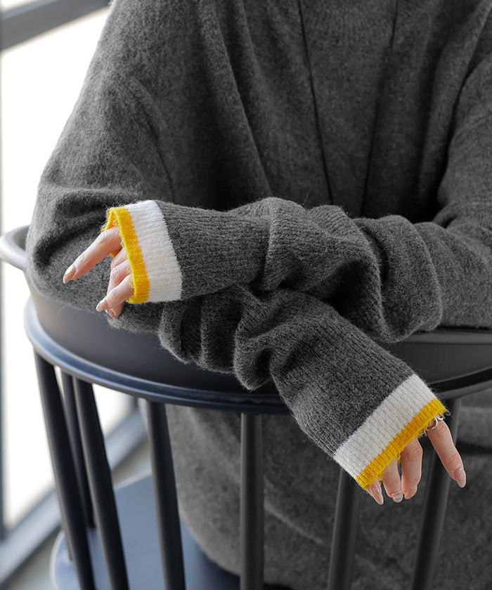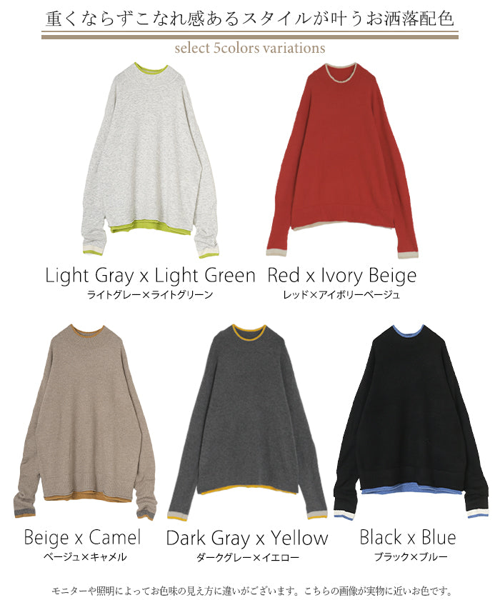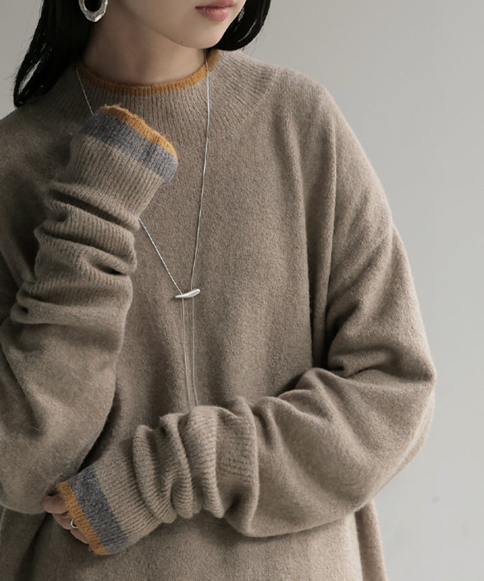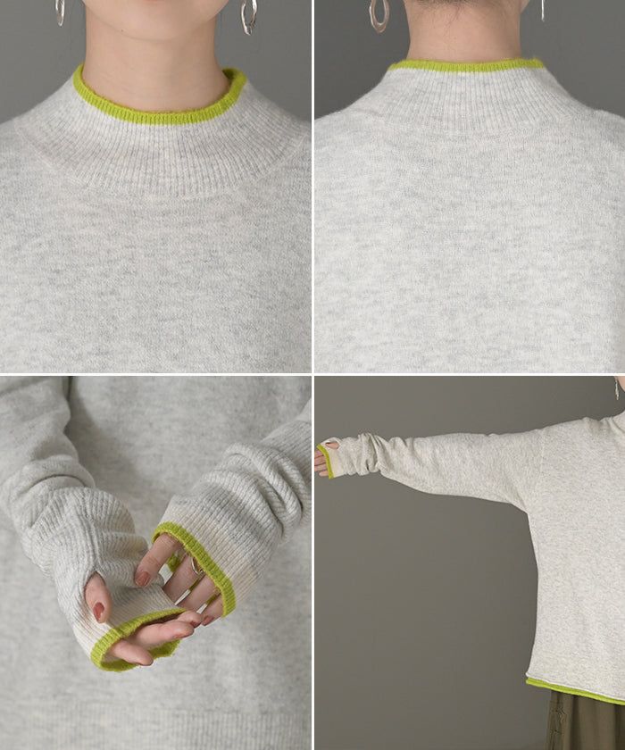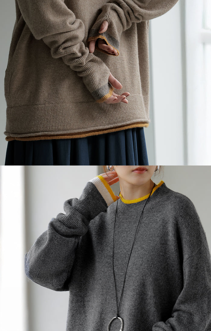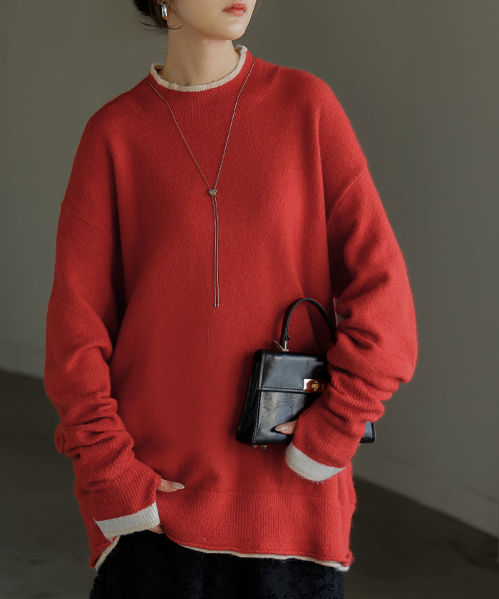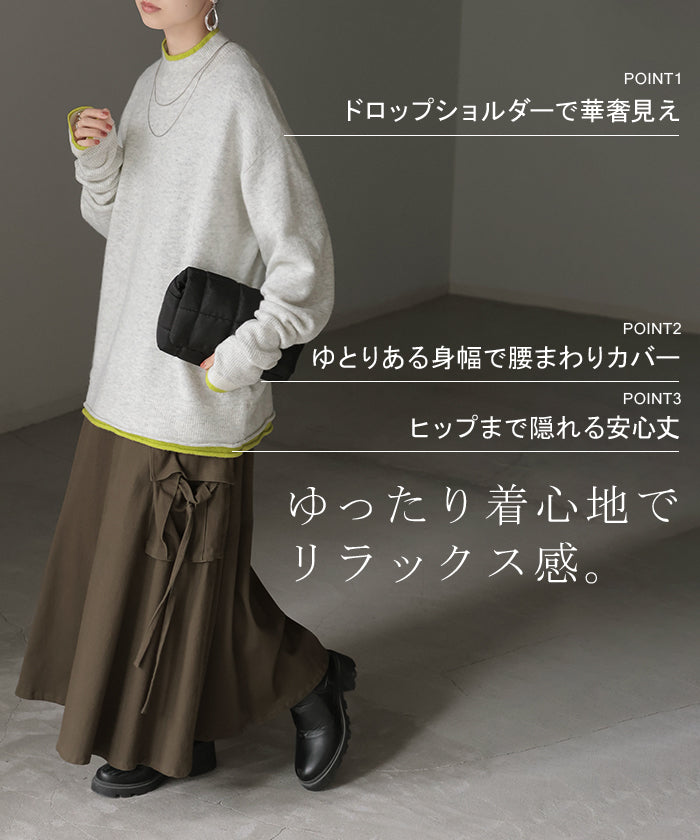 2025AW新作 ニット 配色 トップス ロング レディース セーター オーバー プルオーバー タートルネック ハイネック 長袖 長い 指穴 リブ チュニック ゆったり インナー レイヤード ストレッチ 体型カバー 大きいサイズ お尻が隠れる カジュアル 黒 ベージュ 秋 冬 HUG.U