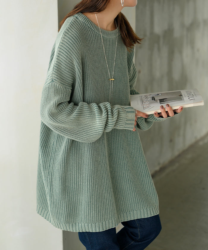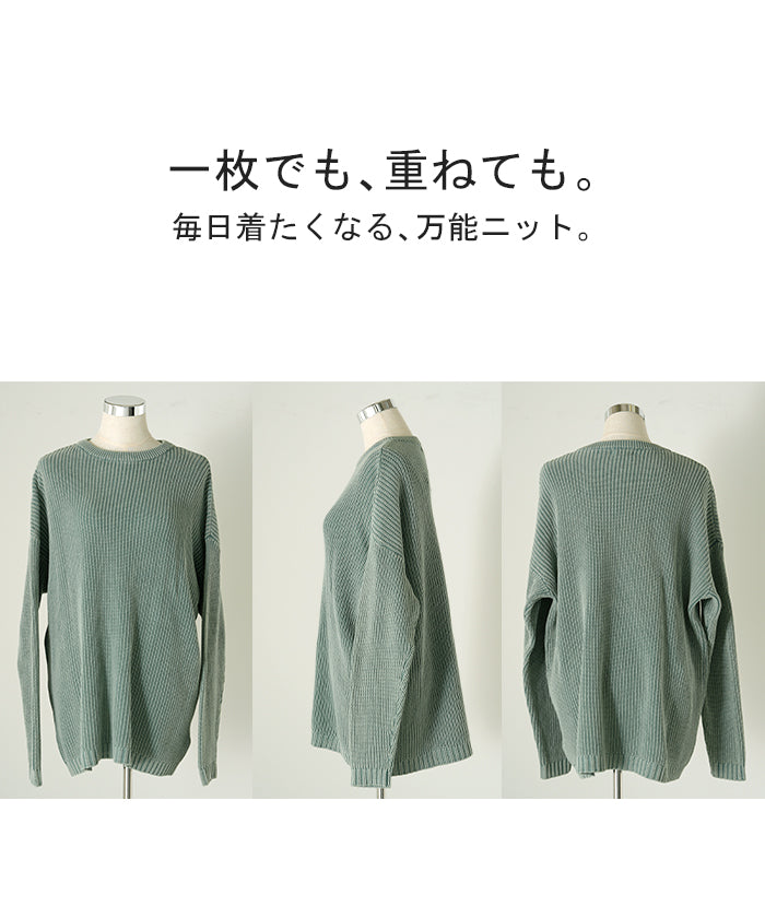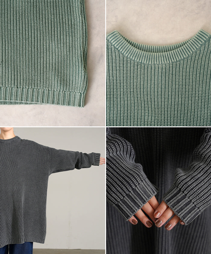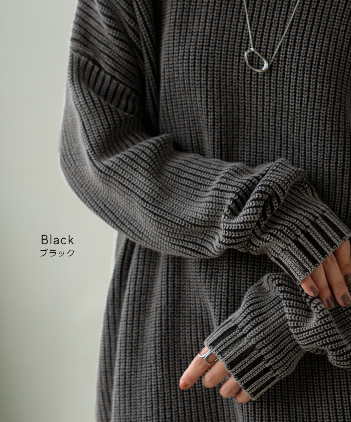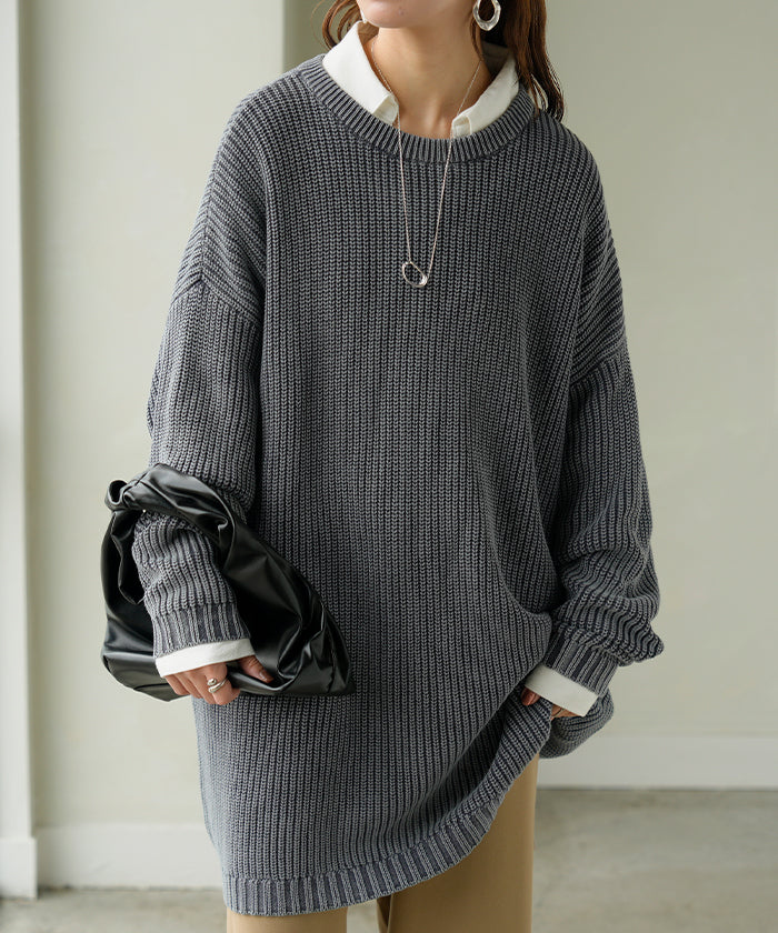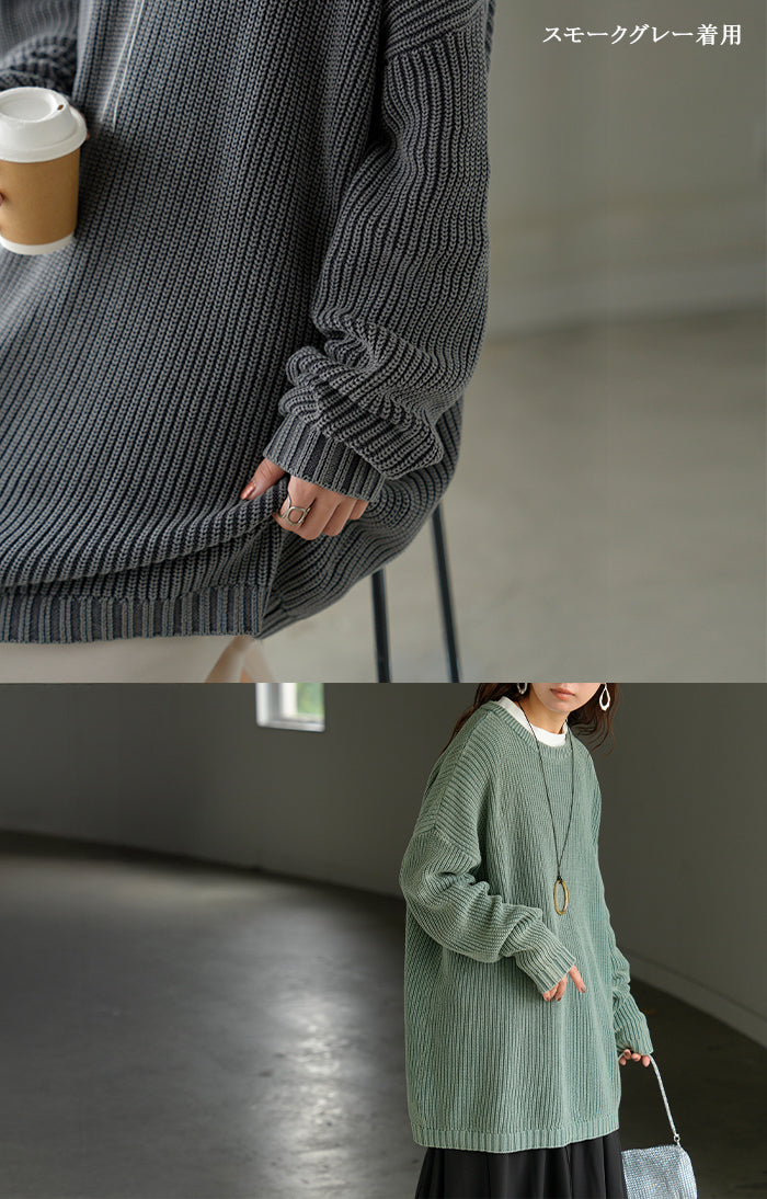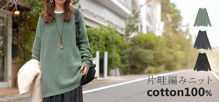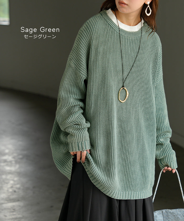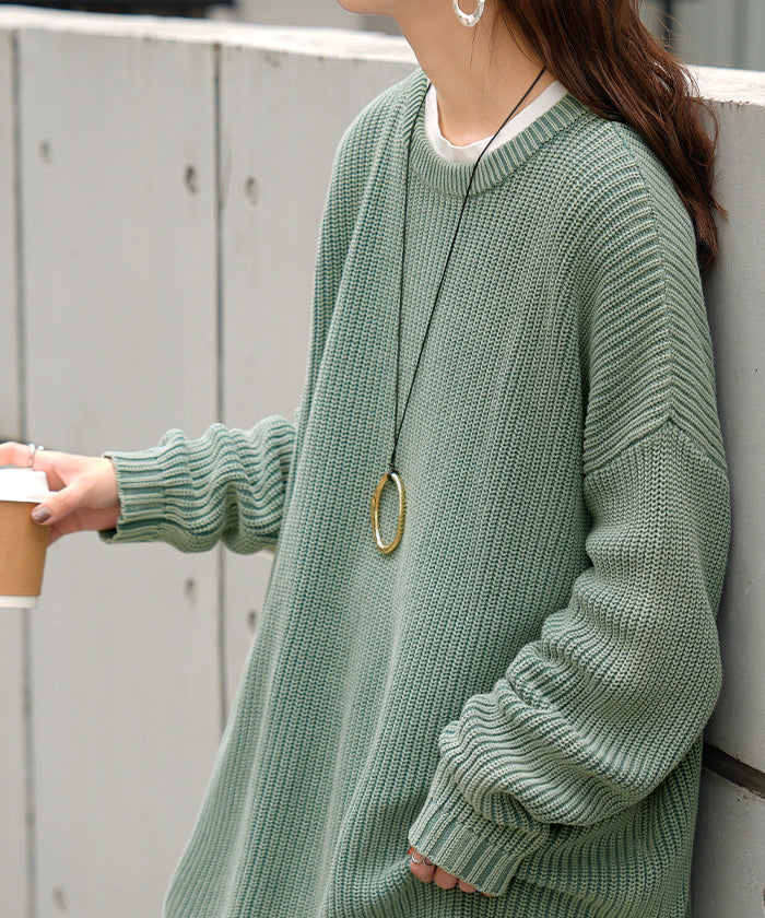 2025AW新作 ニット 片畦編み 綿100 ■一部11月上旬入荷 プルオーバー レディース ロング トップス セーター オーバー 長袖 長い ドルマン クルーネック 無地 リブ ストレッチ チュニック ゆったり 体型カバー 大きいサイズ お尻が隠れる レイヤード カジュアル 黒 グレー 秋 冬 HUG.U