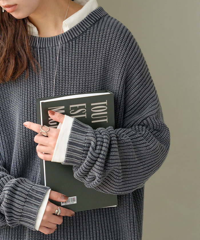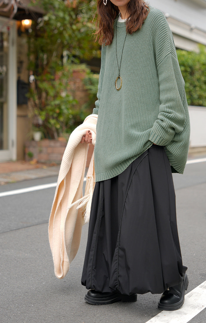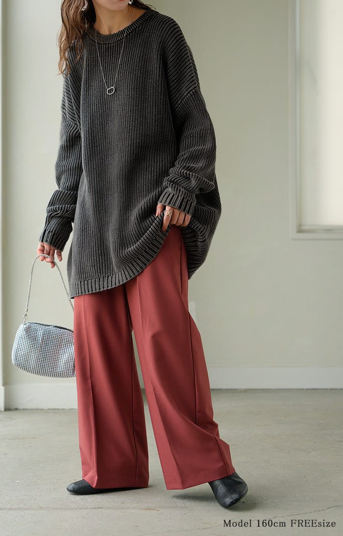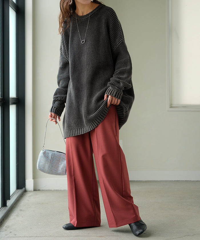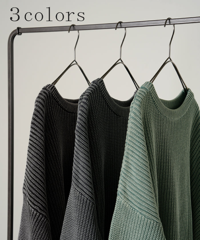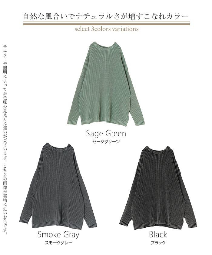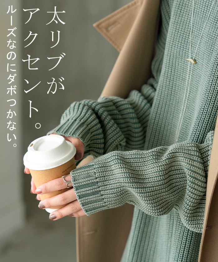 2025AW新作 ニット 片畦編み 綿100 ■一部11月上旬入荷 プルオーバー レディース ロング トップス セーター オーバー 長袖 長い ドルマン クルーネック 無地 リブ ストレッチ チュニック ゆったり 体型カバー 大きいサイズ お尻が隠れる レイヤード カジュアル 黒 グレー 秋 冬 HUG.U