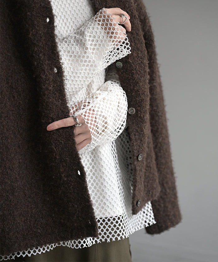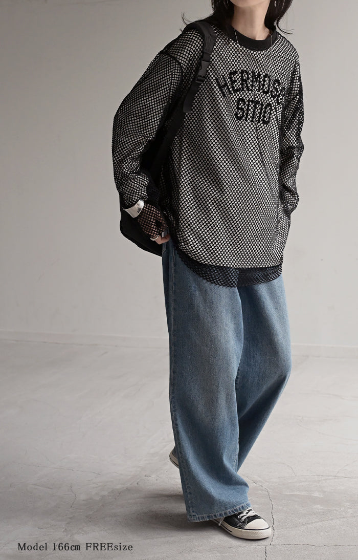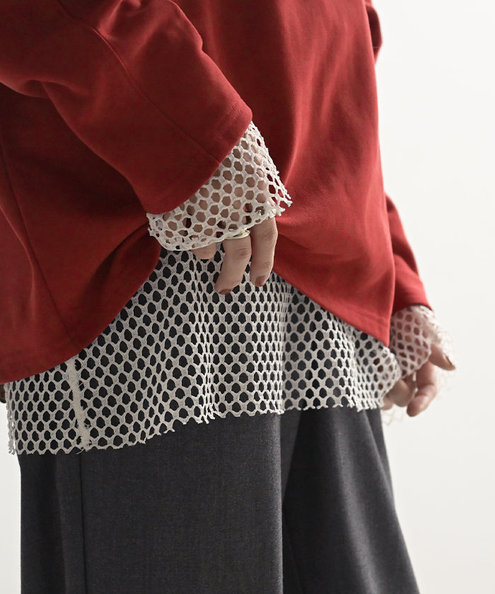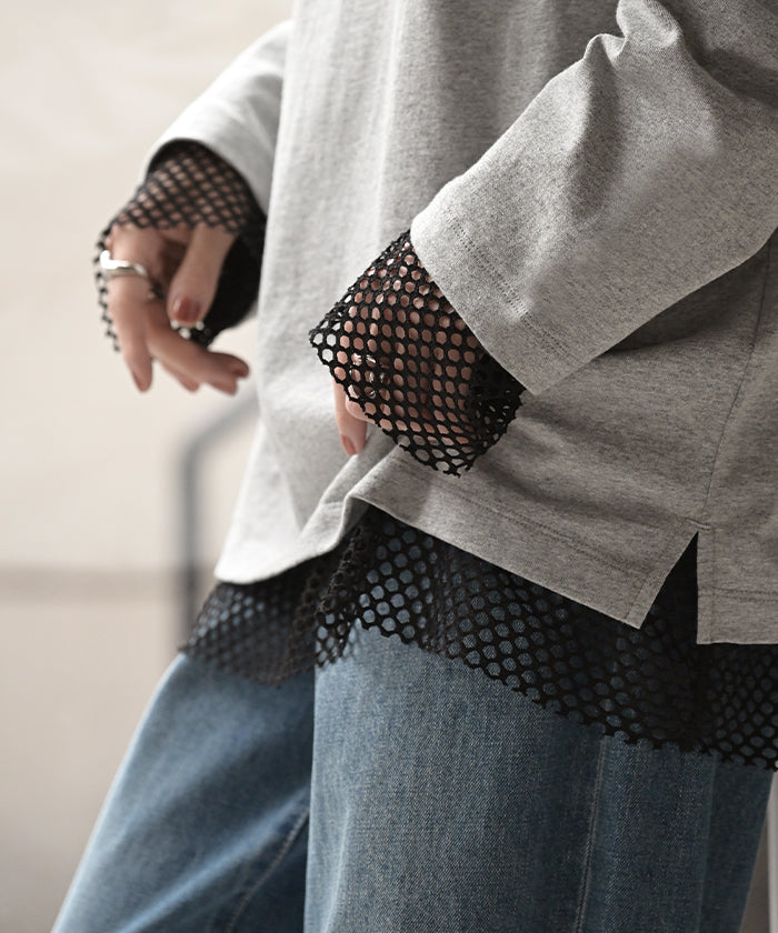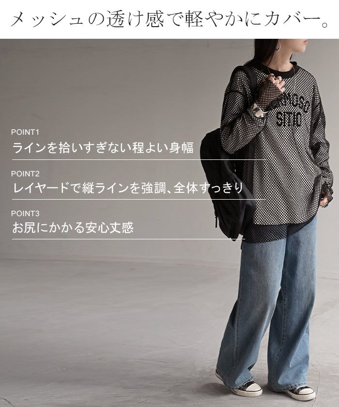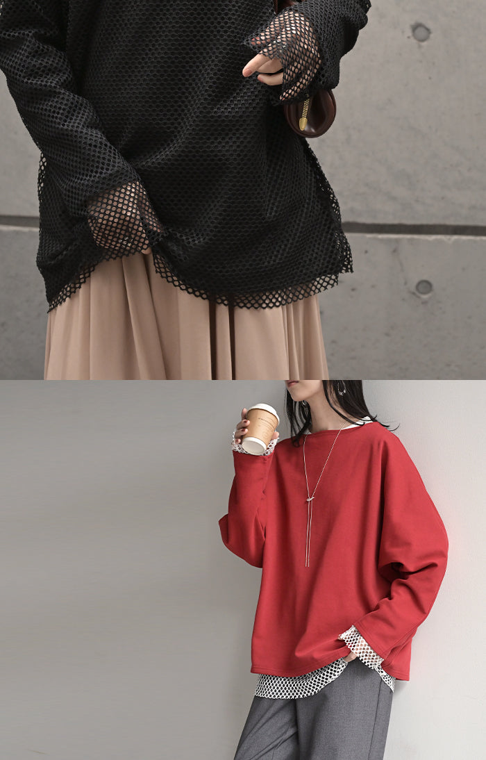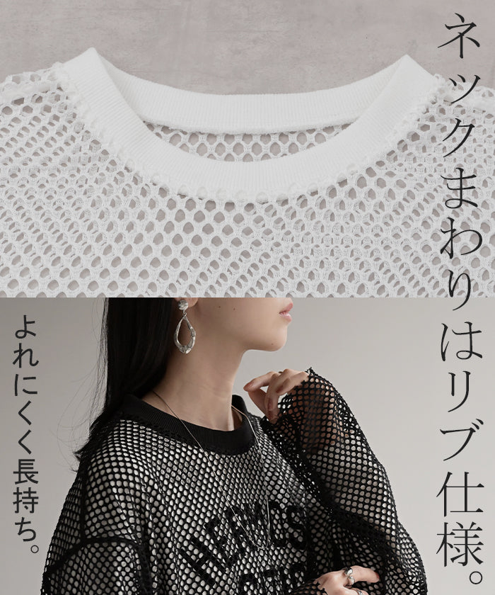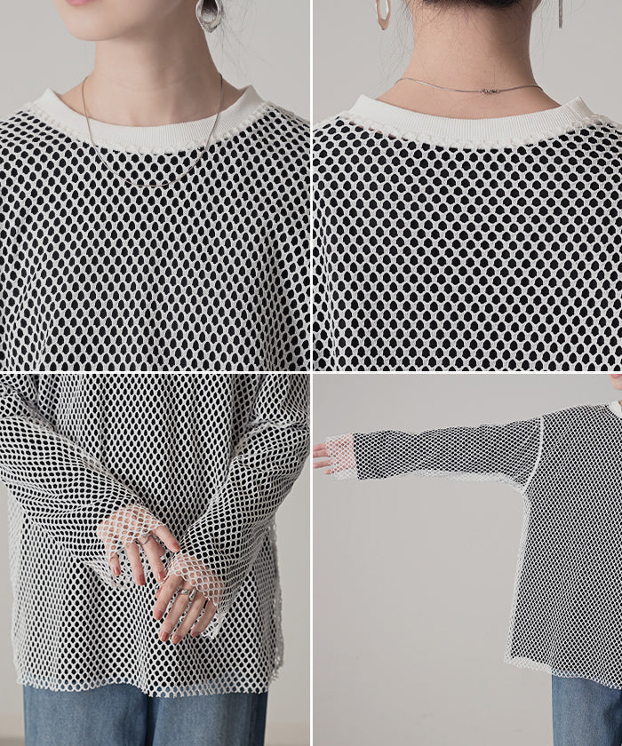 2025AW新作 プルオーバー ■11月下旬入荷 メッシュ セルフ カット トップス レディース レイヤード 透け感 メッシュトップス シアートップス インナー シアー シースルー シアーインナー 無地 長袖 薄手 ロング きれいめ カジュアル 重ね 体型カバー 大きいサイズ 黒 白 秋 冬 HUG.U メール便