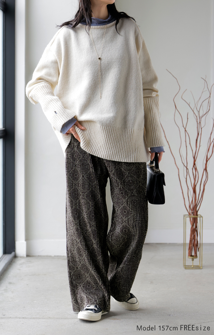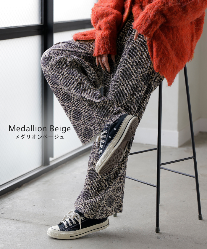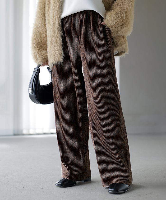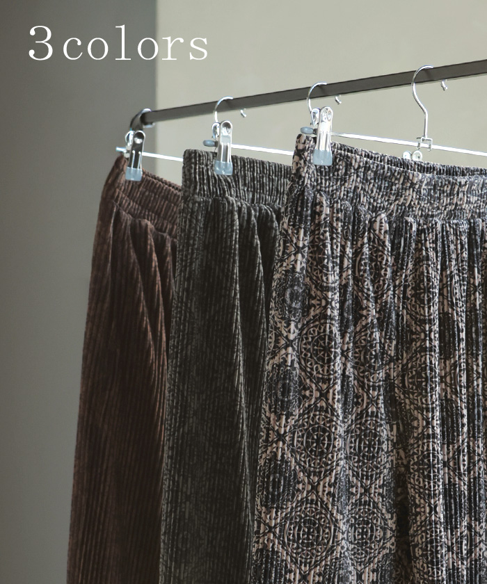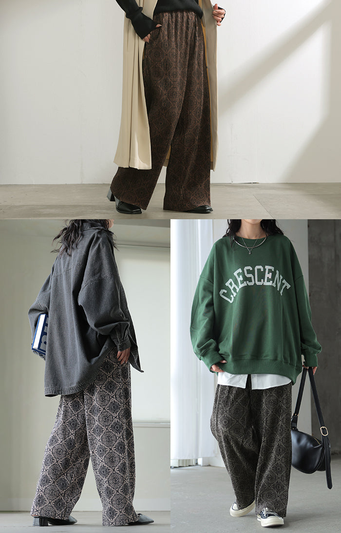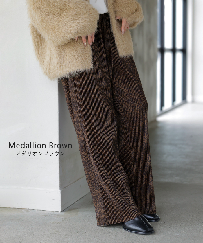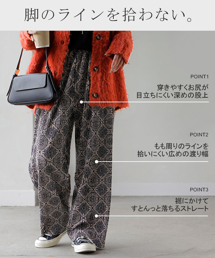 2025AW新作 パンツ ワイド " 切れる " ■1月下旬入荷 総柄 スエードライク レディース ワイドパンツ ロング ロングパンツ ボトムス ボトム 柄 微起毛 プリーツ ストレート ズボン イージーケア ハイウエスト ストレッチ ゆったり 体型カバー 大きいサイズ グレー ベージュ 秋 冬 HUG.U
