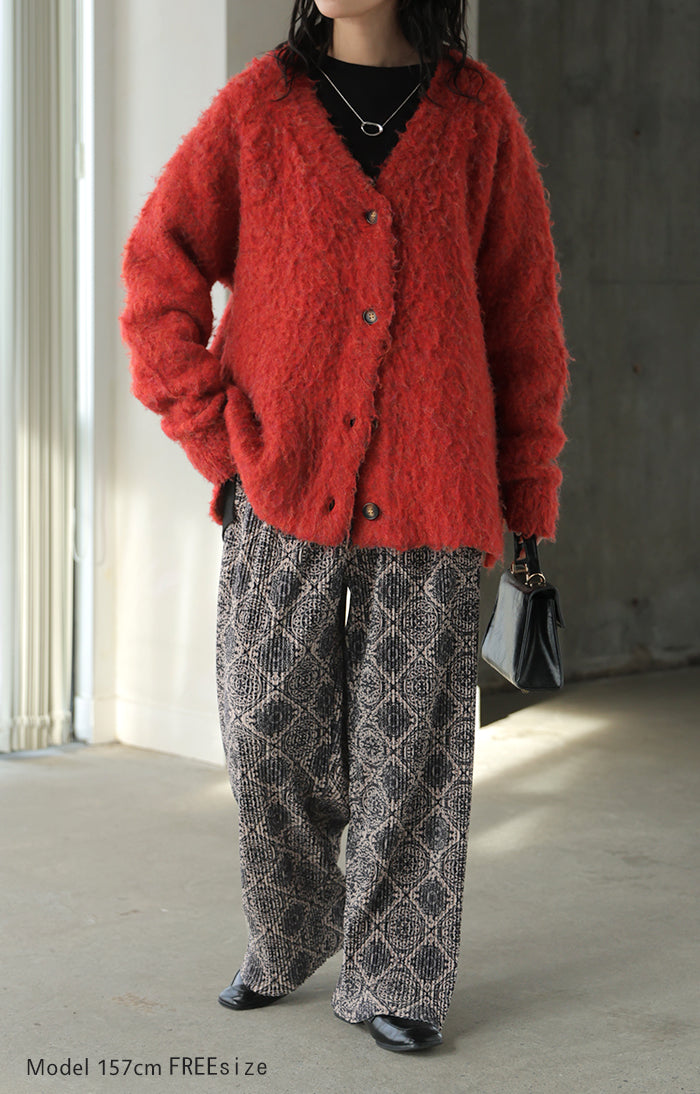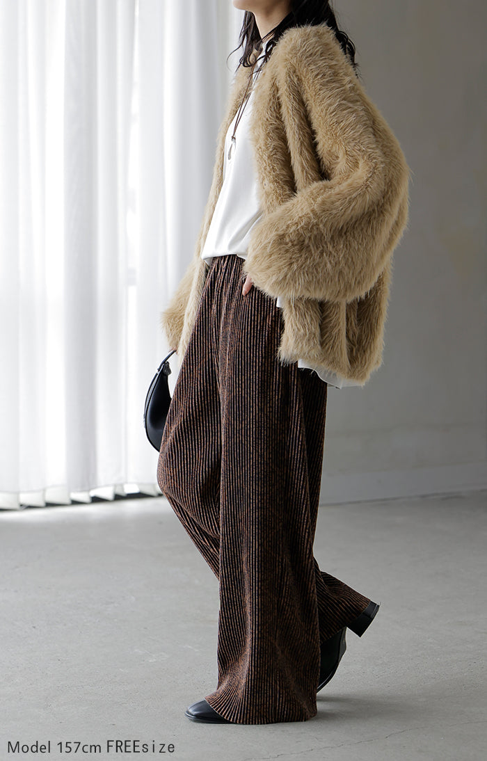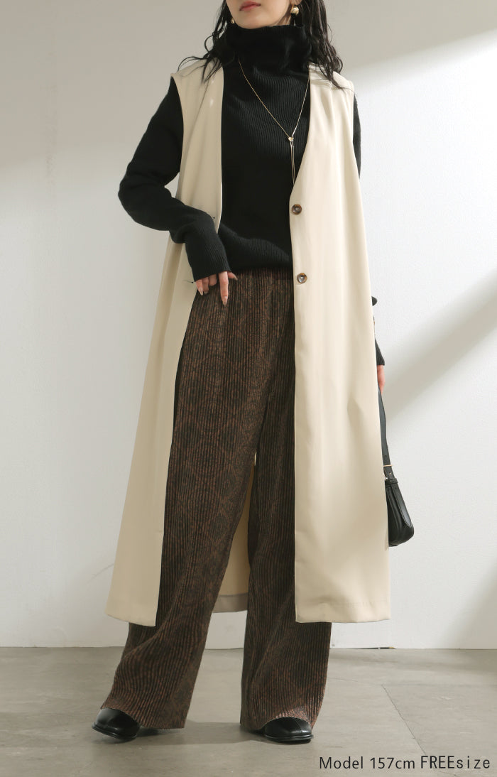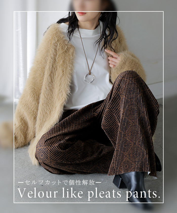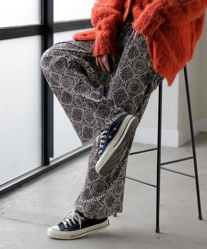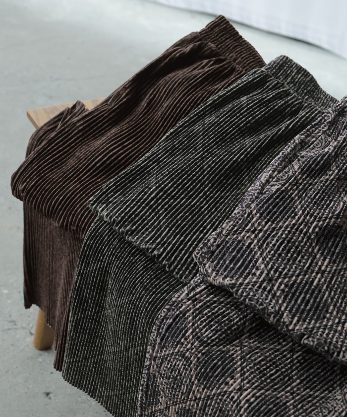 2025AW新作 パンツ ワイド " 切れる " ■1月下旬入荷 総柄 スエードライク レディース ワイドパンツ ロング ロングパンツ ボトムス ボトム 柄 微起毛 プリーツ ストレート ズボン イージーケア ハイウエスト ストレッチ ゆったり 体型カバー 大きいサイズ グレー ベージュ 秋 冬 HUG.U