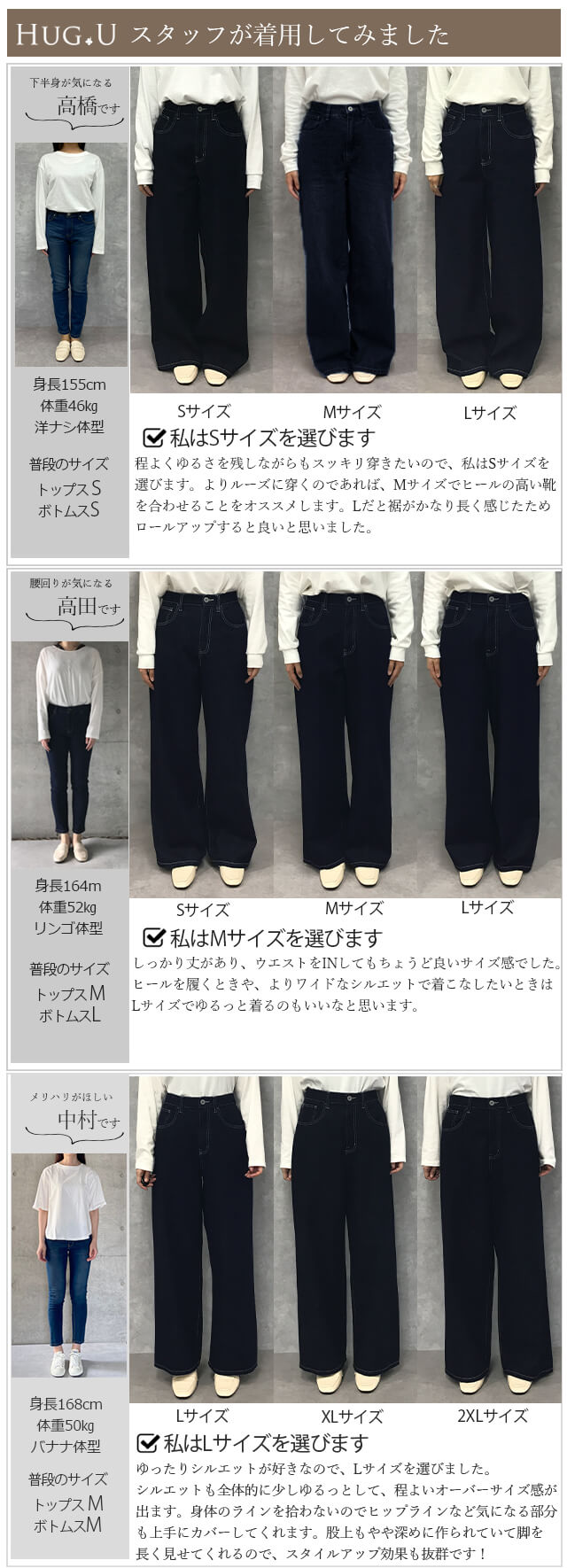 165cmでややぽっちゃりお腹周り大きめですが、すごく履きやすくダボっとしてますが太って見えません!丈はトール丈LLを購入したので気持ち長めです。 厚底スニーカーやヒールがあるものなら気にならないと思います。