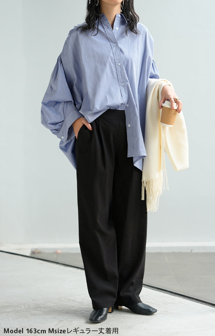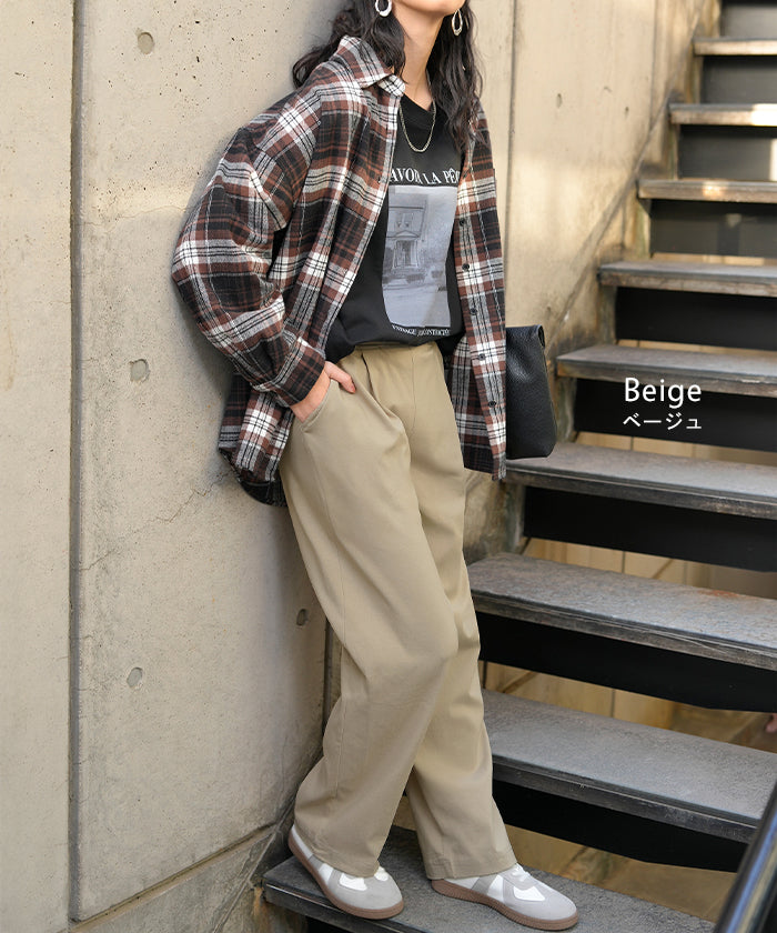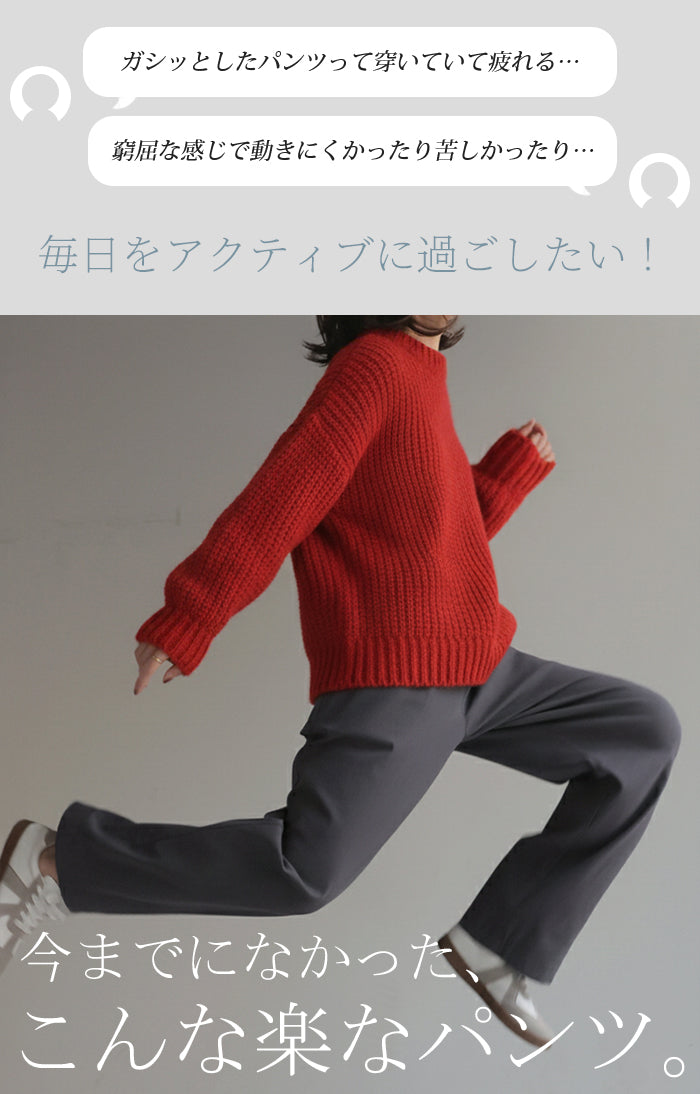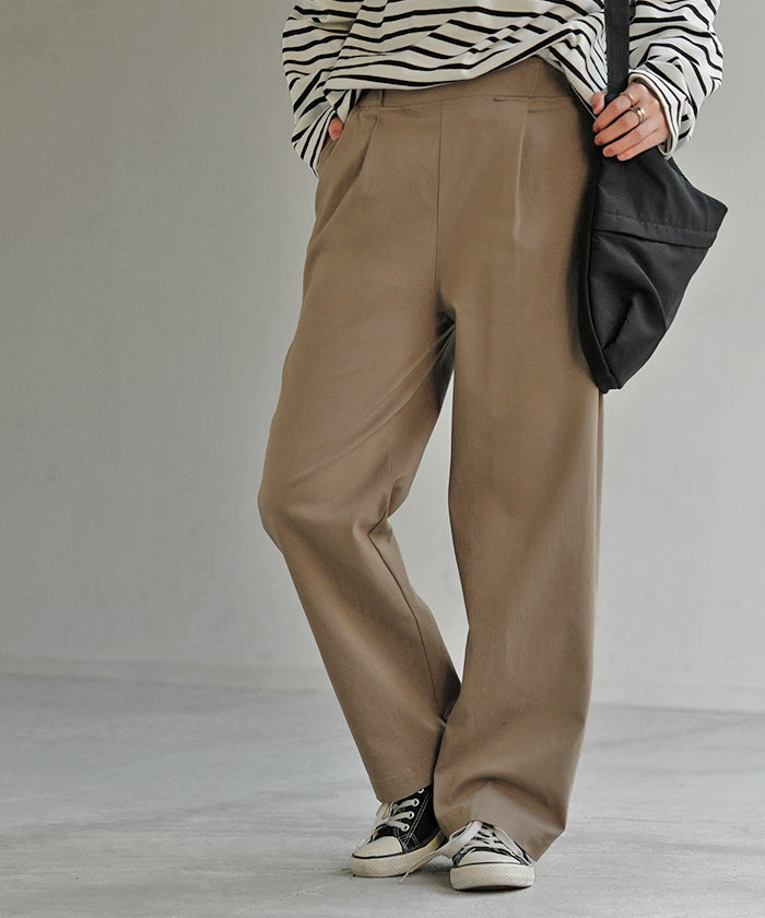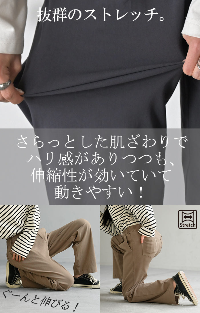 シルエットに徹底してこだわったワイドストレートパンツです。ワイドすぎないストレートなシルエットで脚をまっすぐ見せ美脚効果も◎。しっかりストレッチが効いているので、穿き心地も快適です。※下げ札には別のカラー名称が記載されている場合がありますが、同色の別名でありイメージに違いはございません。