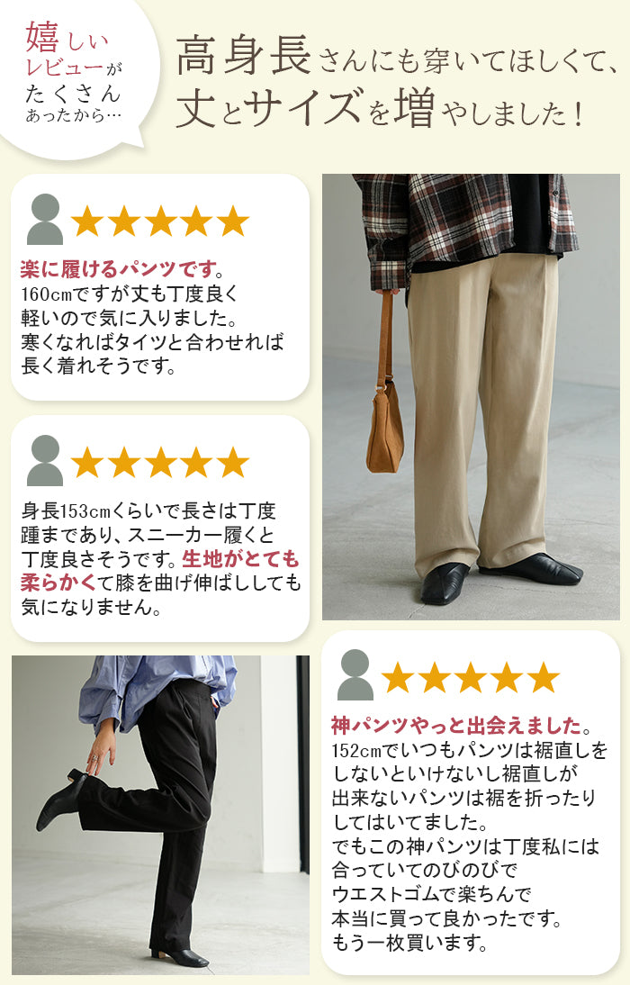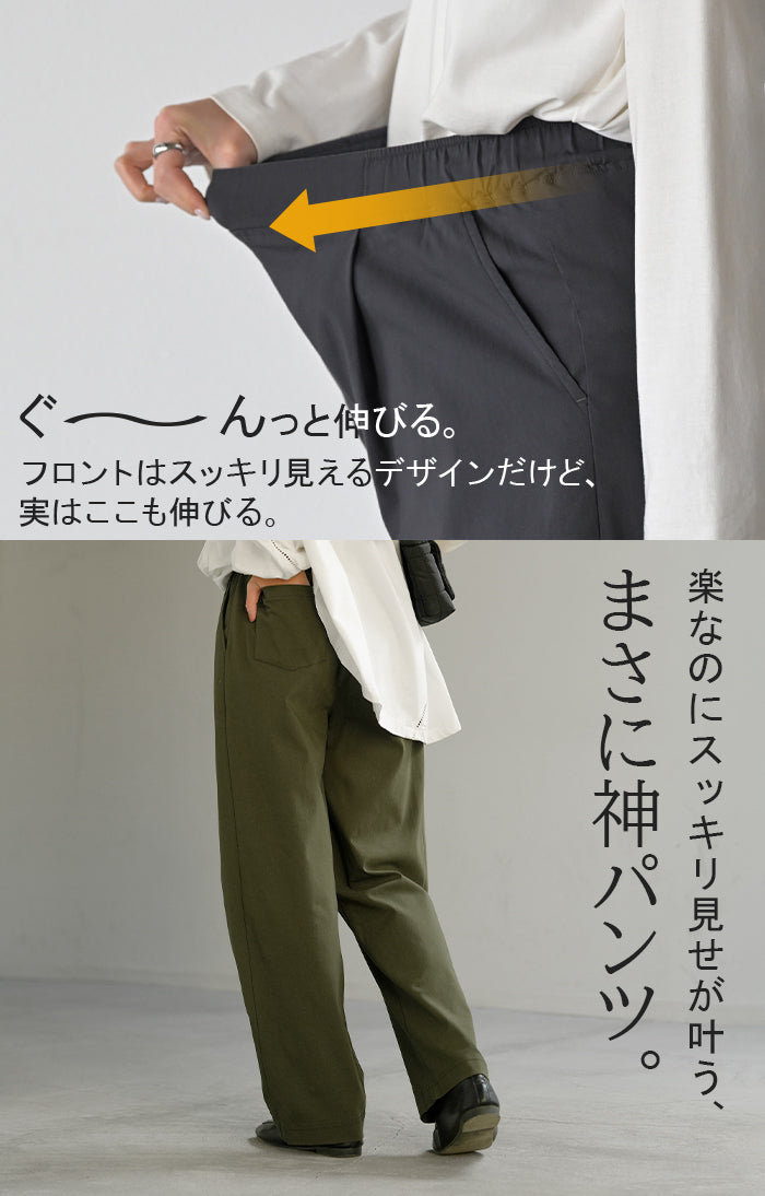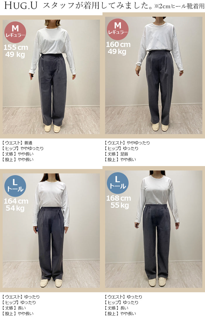 パンツ 「 リニューアル 」低身長さんも高身長さんも! ワイドパンツ タックパンツ レディース タック ワイド ロング ボトム 低身長 高身長 ボトムス ストレート ズボン ハイウエスト ストレッチ ゴム 長 ズボン 大きいサイズ 体型カバー 春 夏 HUG.U