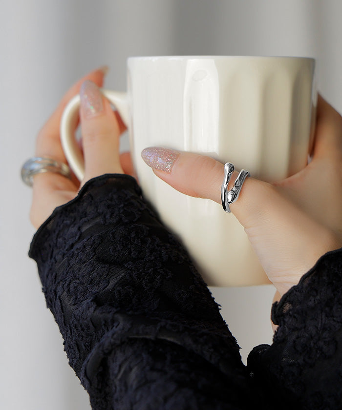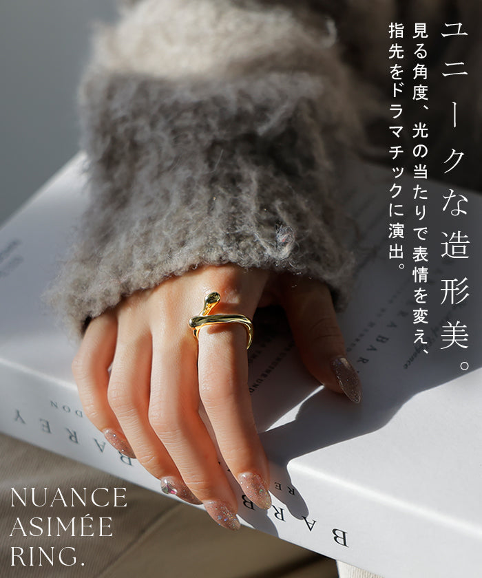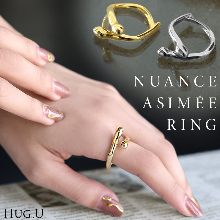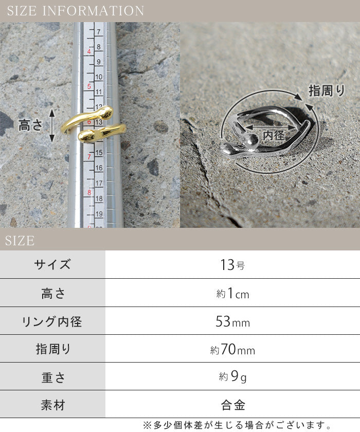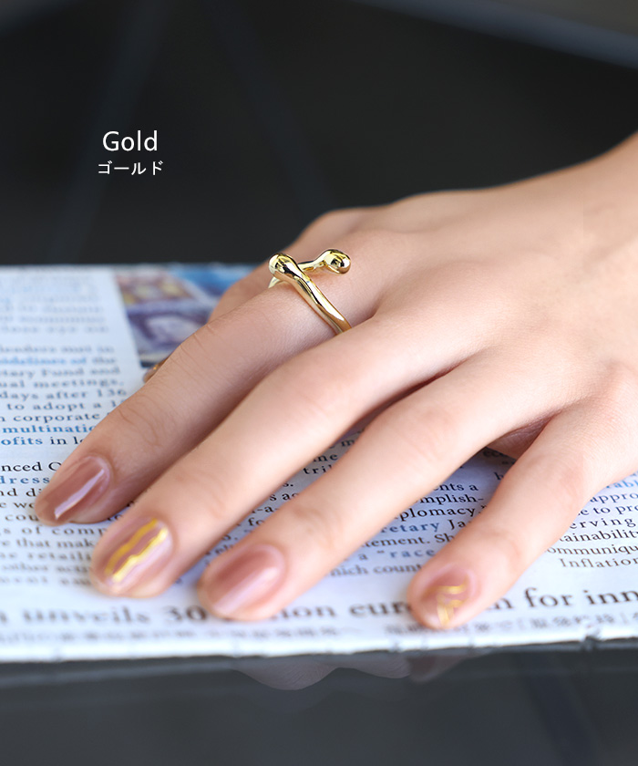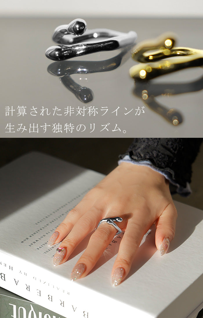 2025AW新作 リング ニュアンス メタル モチーフ アクセサリー レディース 指輪 アクセ シルバー ゴールド シルバーアクセサリー 変形 アンバランス アシンメトリー S字 ツイスト デザイン 合金 透け感 お洒落 太幅 13号 金 銀 おしゃれ 女性 大人 秋 冬 HUG.U メール便