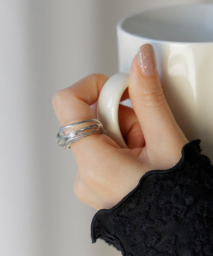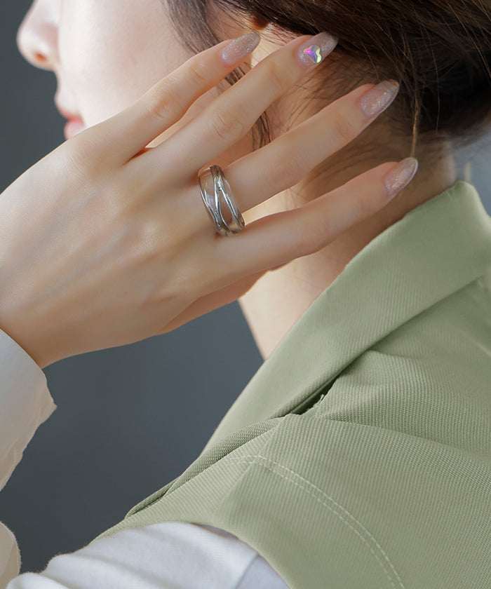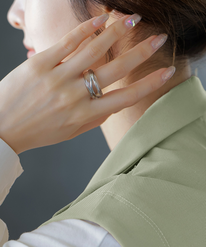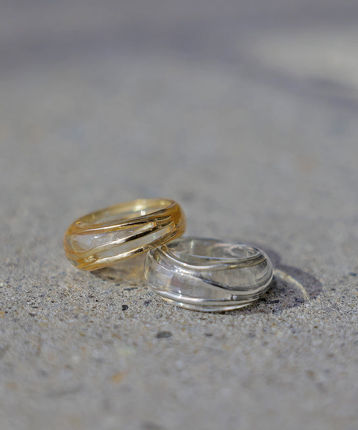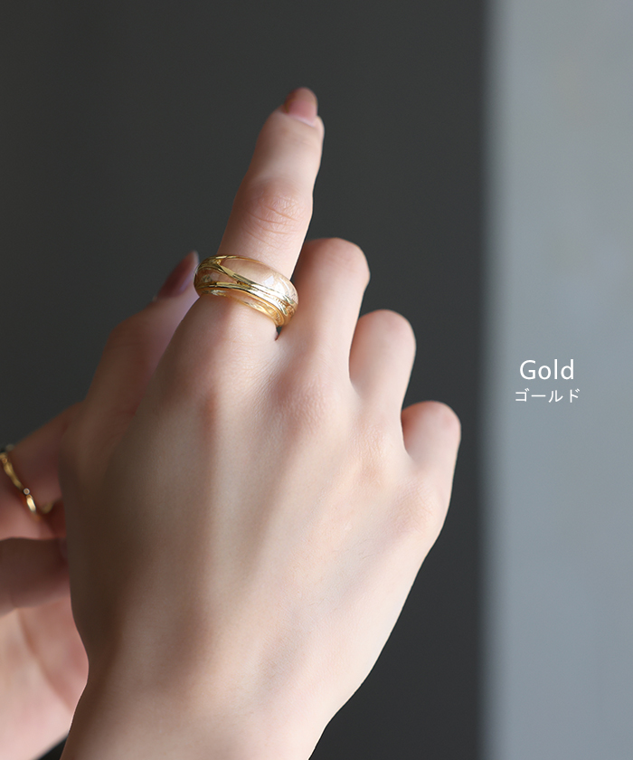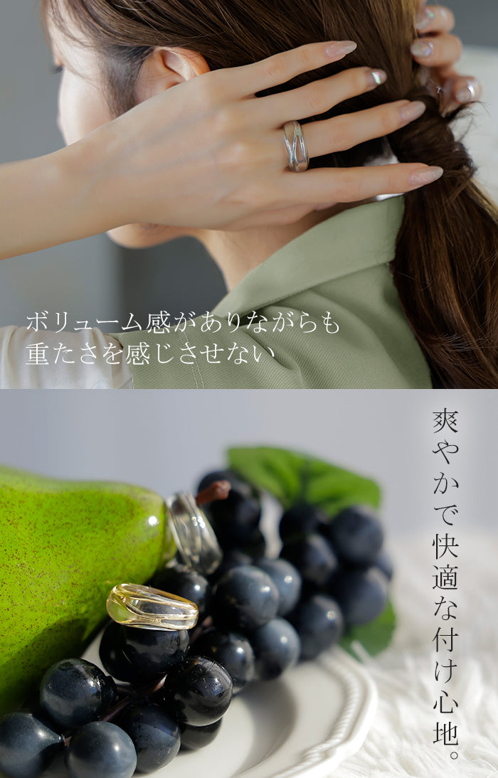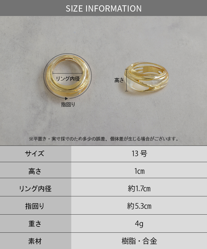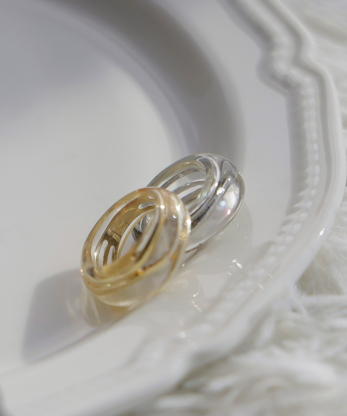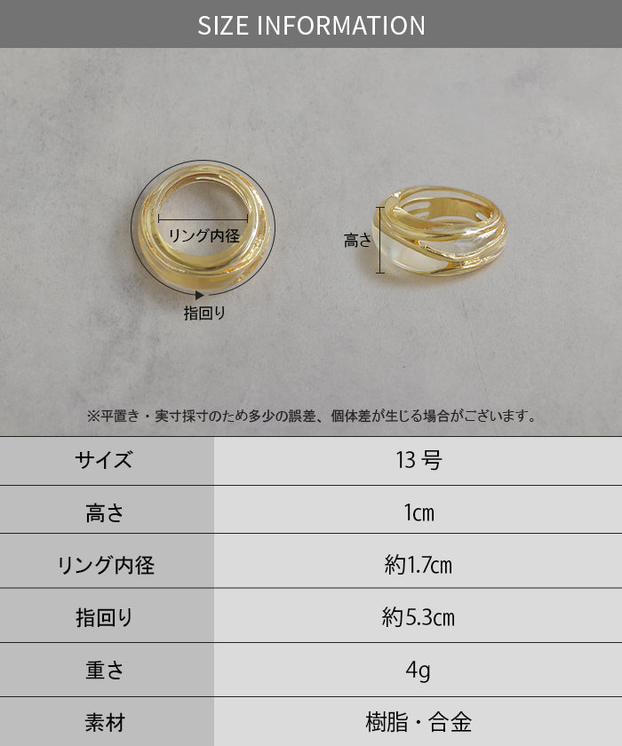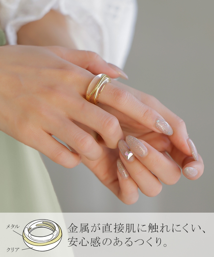 2025AW新作 リング クリア メタル アクセサリー ニュアンス レディース 指輪 アクセ シルバー ゴールド シルバーアクセサリー ボリューム 透け感 レイヤード 重ね付け 太め デザイン 樹脂 合金 お洒落 太幅 13号 金 銀 おしゃれ 女性 大人 秋 冬 HUG.U メール便