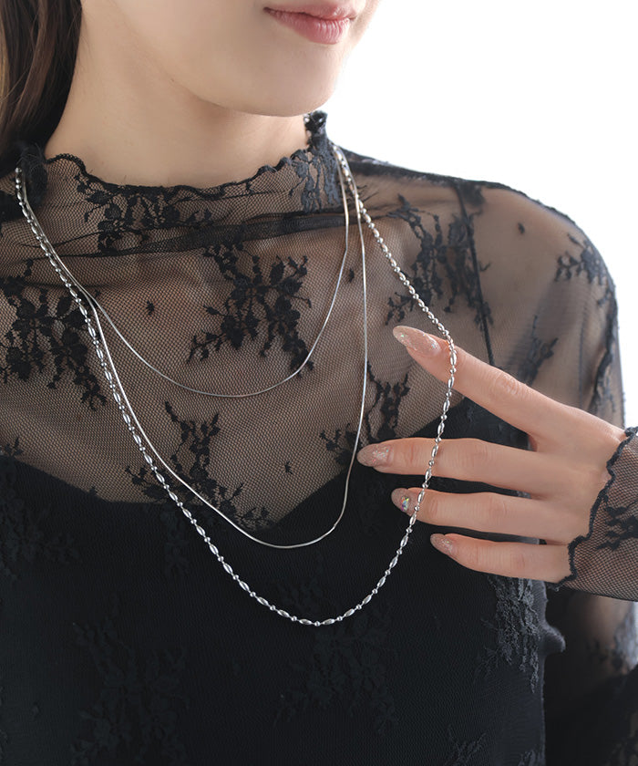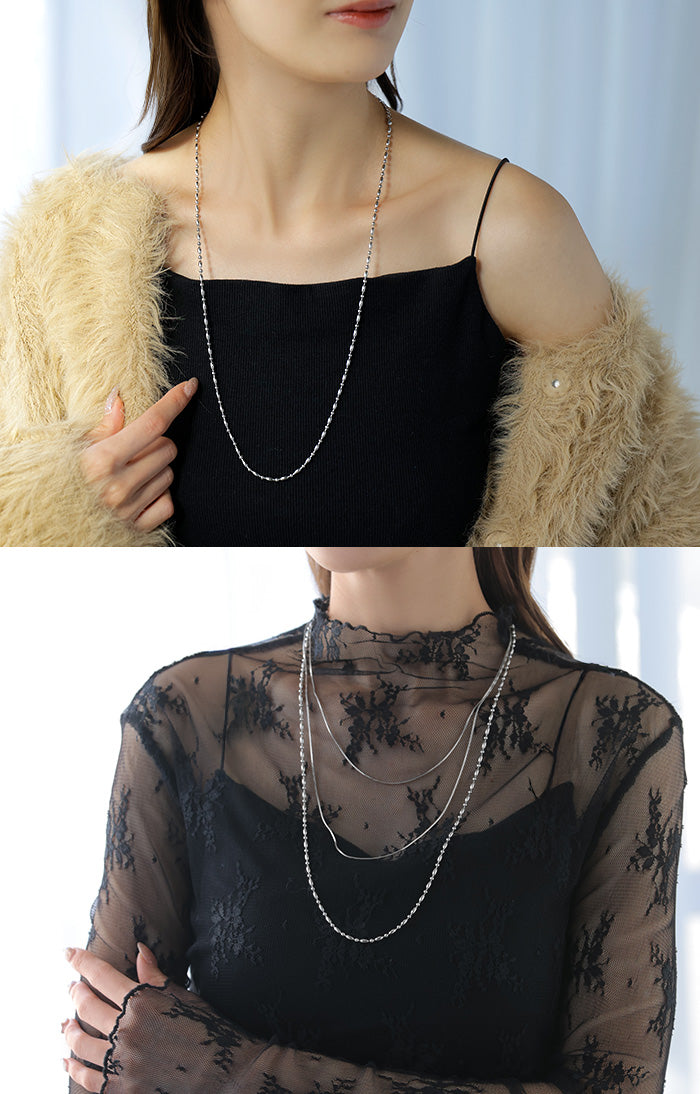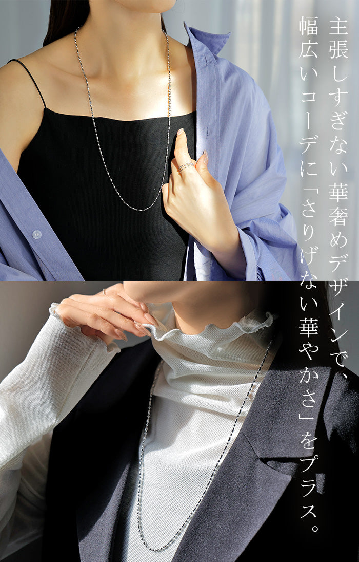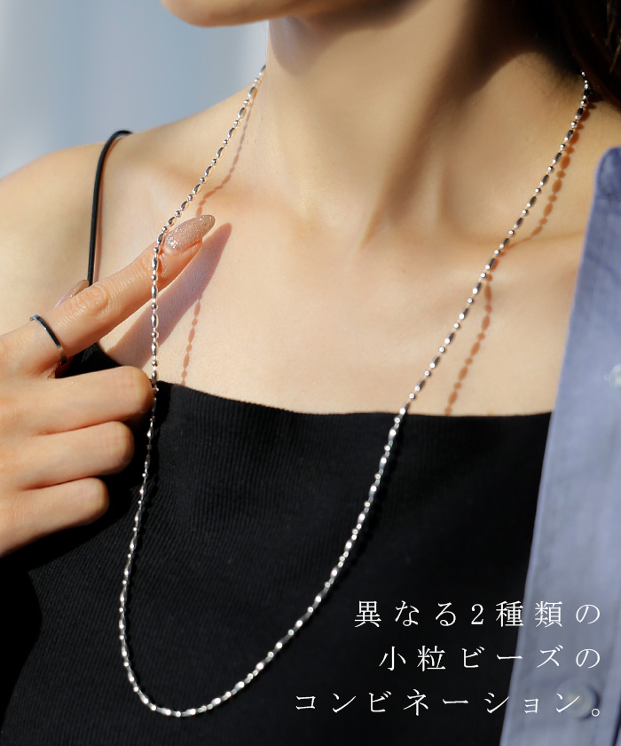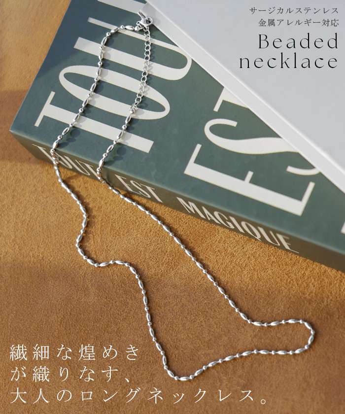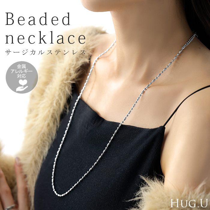 2025AW新作 『 サージカルステンレス 』 ネックレス ロング ビーズ チェーン レディース アクセサリー アクセ シルバー 銀 モチーフ 錆びにくい 金属アレルギー 対応 金アレ イージーケア 細いシルバーアクセサリー アレルギー対応 おしゃれ 上品 女性 大人 秋 冬 HUG.U メール便